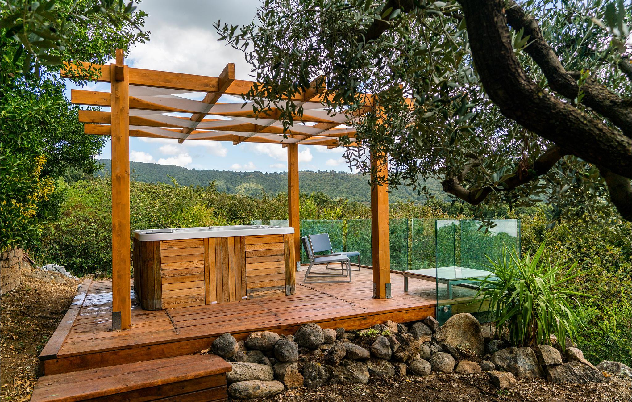 Glæd jer til haven, hvor I kan sætte jer ud og nyde solen på terrassen, mens I læser en god bog eller samles om måltiderne. Der er forskelligt sportsudstyr og aktivitetsmuligheder på grunden, så der er masser af muligheder for at have det sjovt. Efter en aktiv dag i naturen er spabadet det perfekte sted at slappe af.