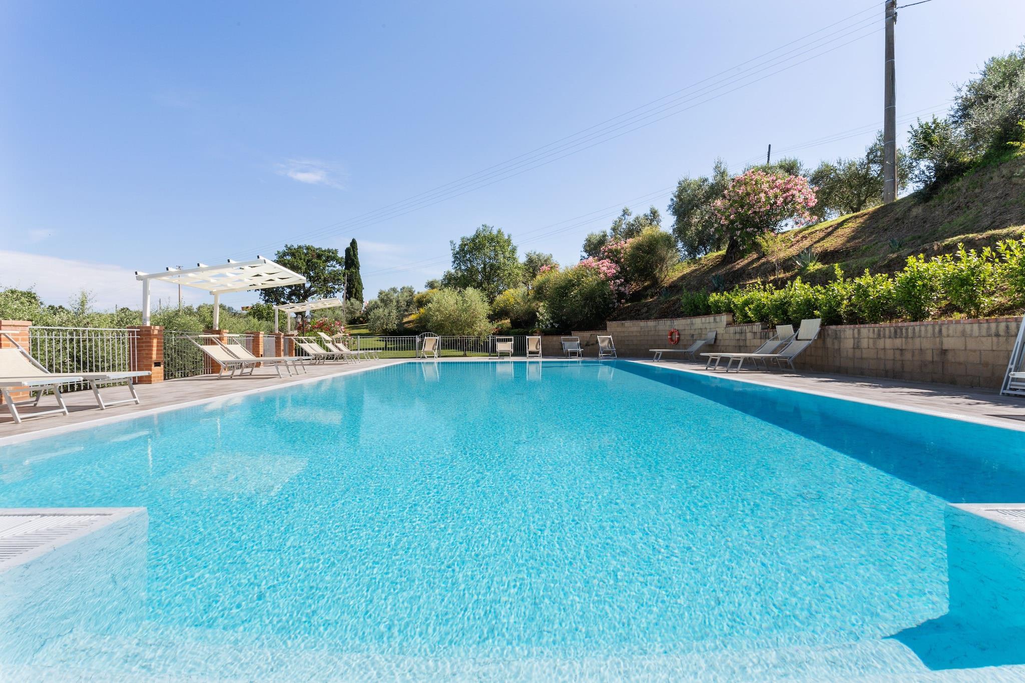 Charmerende toscansk flugt med autentisk flair Beliggende i Volterras bølgende bakker, blander dette 1-værelses landskabsretræte rustik charme med moderne komfort - perfekt til små familier eller tætte grupper på op til 5. Hjemmet er omgivet af grønne områder og tilbyder en rolig base for dine toscanske eventyr. Træd ind i et hyggeligt opholdsrum med spiseplads og traditionel indretning, mens det veludstyrede køkken er klar til hjemmelavede måltider. På varme dage kan du tage en forfriskende dukkert i den fælles swimmingpool eller slappe af udendørs med et glas vin, mens solen går ned over vinmarkerne. Rolige omgivelser nær Volterras historiske vidundere Denne fredelige ejendom placerer dig kun 6 km fra den historiske by Volterra, hvor brostensbelagte gader, gammel arkitektur og udsigt over en bakketop venter. Udforsk den storslåede Volterra-katedral, beundre det middelalderlige Palazzo dei Priori, eller oplev det uhyggelige, men fascinerende museum for tortur. Uanset om du er kunstelsker, historieelsker eller naturentusiast, byder denne region på en rig blanding af kultur og landskabsro. Supermarkeder og restauranter er også inden for rækkevidde for din bekvemmelighed. Dejlig spisning og ophold på landet Prøv regionale delikatesser på nærliggende trattoriaer kun 5,7 km væk - fra håndlavet pasta til rige toscanske gryderetter. Efter en dag med udforskning kan du vende tilbage til komforten i dit hjem væk fra hjemmet og nyde en fredelig aften under stjernerne. Bemærk venligst: kæledyr er ikke tilladt på denne ejendom, hvilket sikrer et rent, allergenfrit miljø for alle gæster.