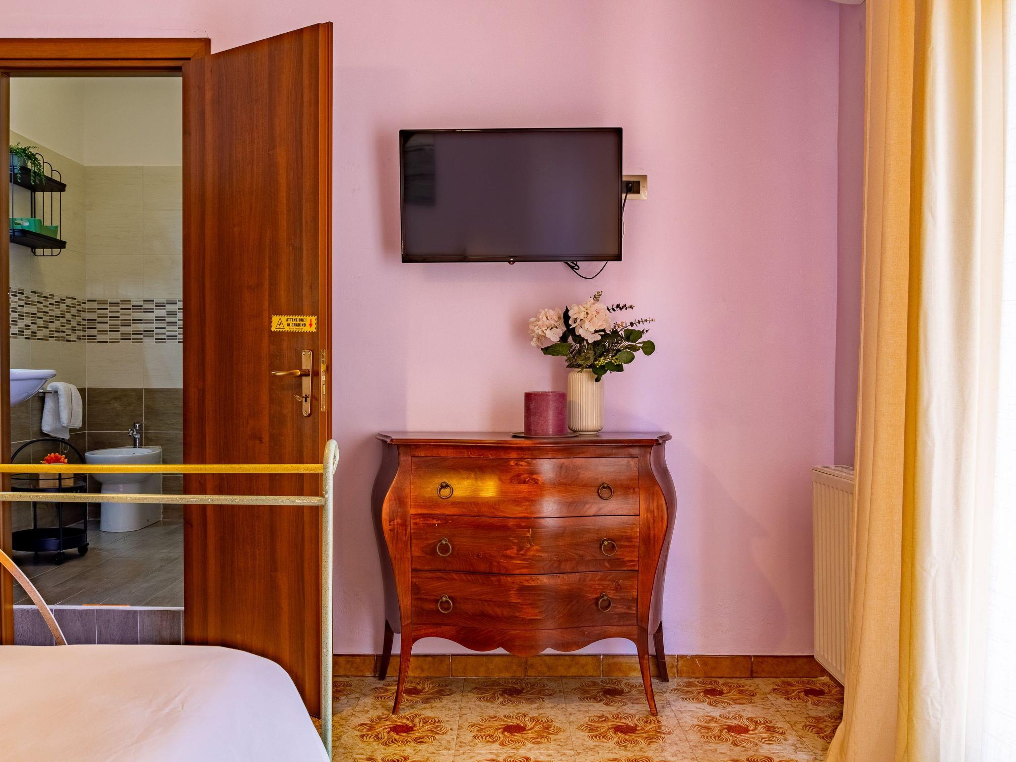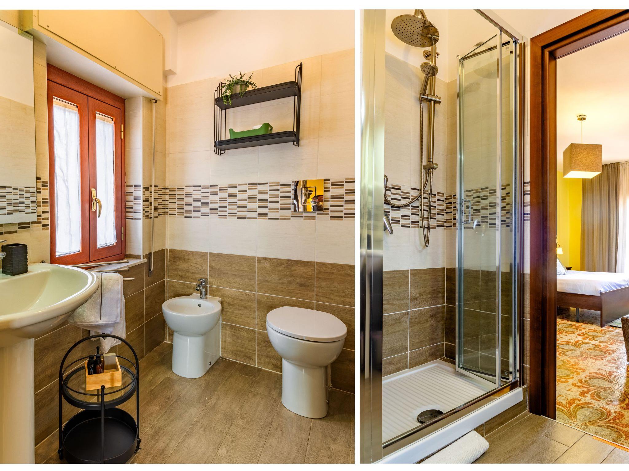 The interior of the flat is characterised by being functional and well equipped. The presence of a gas cooker, accompanied by modern appliances such as a capsule coffee machine, mini oven and electric kettle, allows guests to prepare and enjoy their favourite dishes in comfort. The washing machine for exclusive use also ensures the convenience of being able to manage laundry independently during the stay. The partial air conditioning of the room and the available fan provide relief during the hottest days, ensuring a pleasant climate inside the flat.