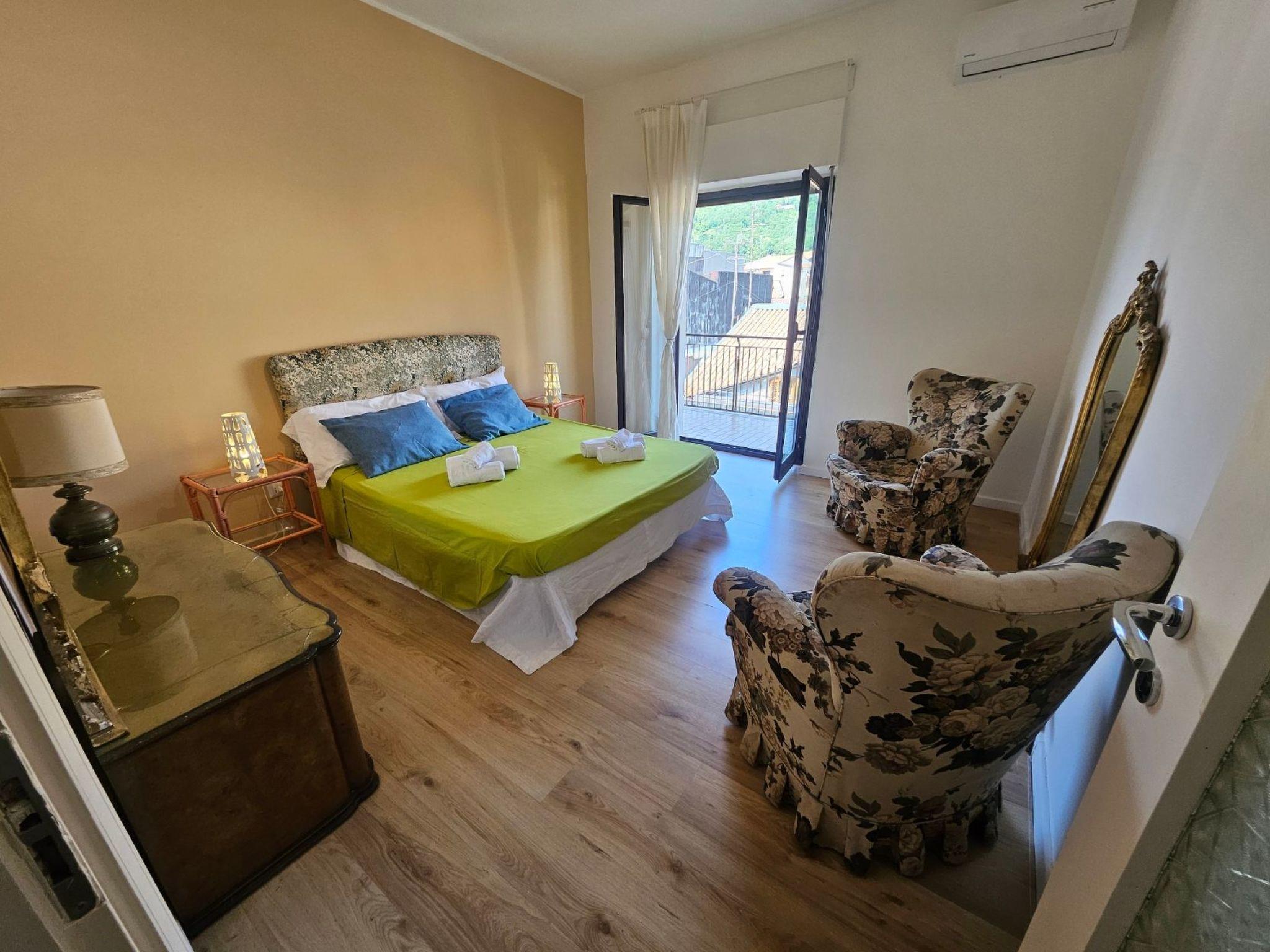 Zafferana Etna House is a cosy and spacious flat in Zafferana Etnea, a municipality in the province of Catania located on the slopes of Mount Etna. The accommodation is located on the third floor with lift. It consists of a beautiful entrance hall, a spacious living room with table, TV area and two sofas, a comfortable independent kitchen and two double bedrooms. A nice windowed bathroom with shower and bidet and a balcony with sea and mountain view complete the accommodation. The house is equipped with every comfort; such as air conditioning and Wi-Fi. Perfect for four people and tastefully furnished, it offers everything you need for a relaxing stay in and around beautiful Catania.
