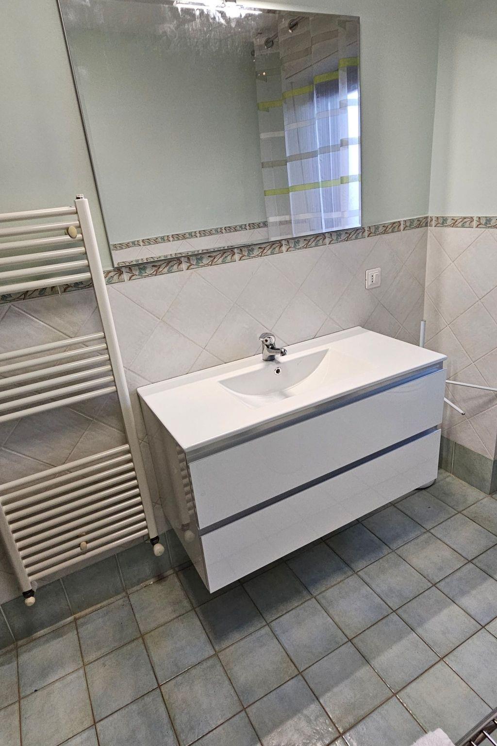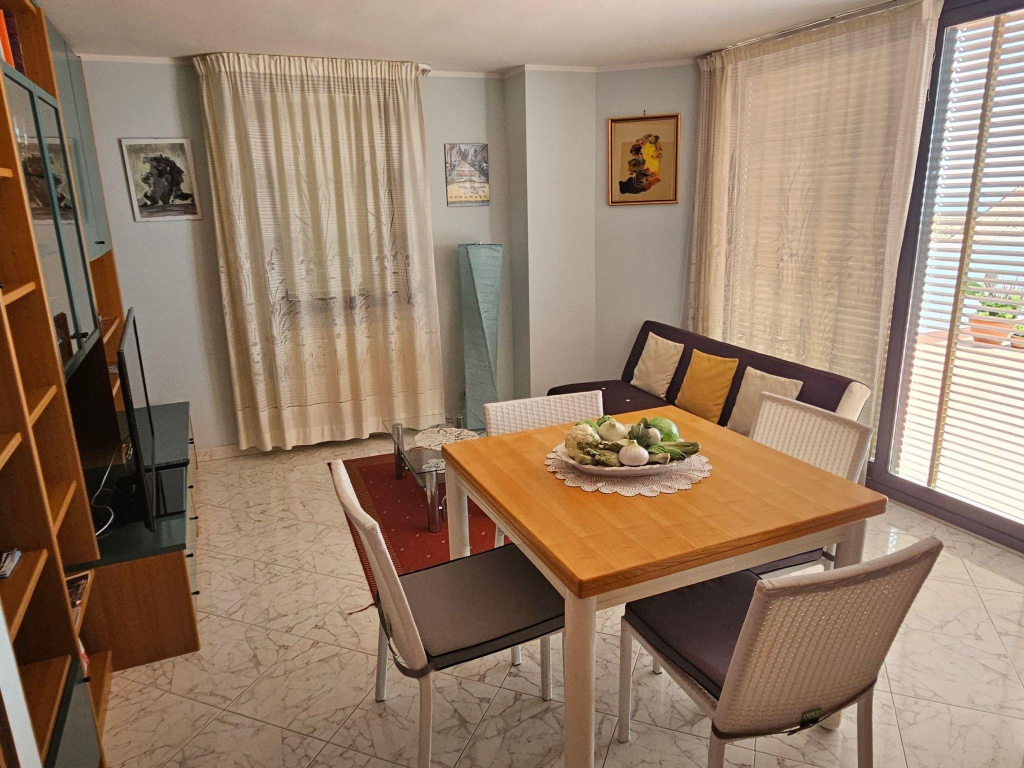 The completely renovated flat has been furnished with attention to detail and is very comfortable. It is ideal for four people, but can accommodate up to six, as it has two bedrooms, each with a double bed, and two single beds in the living room. There is a sofa and dining area, a kitchen with a refrigerator, four-burner gas cooker and dining table, and a bathroom with shower. All rooms have windows or French doors.