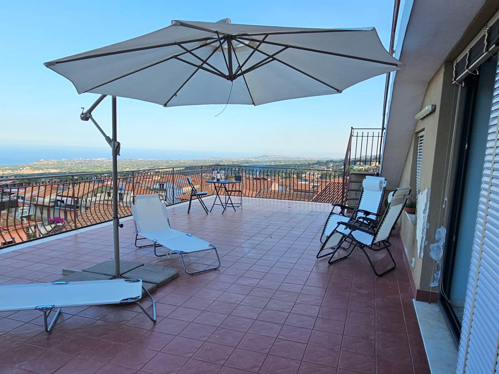 From the living room you have access to the 60 sqm terrace with a breathtaking view of eastern Sicily and the Ionian coast, from the bay of Taormina to the Gulf of Syracuse, while on the other side you can admire the majestic Mount Etna.