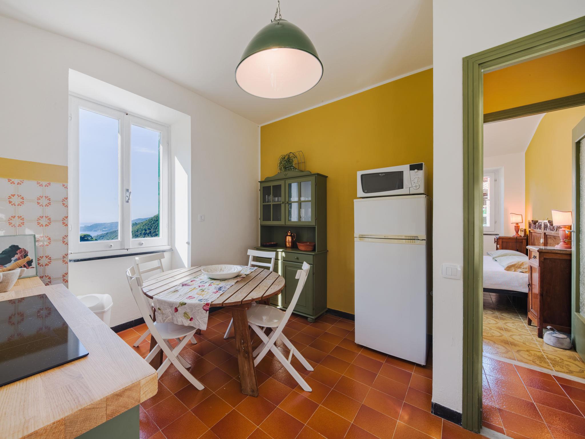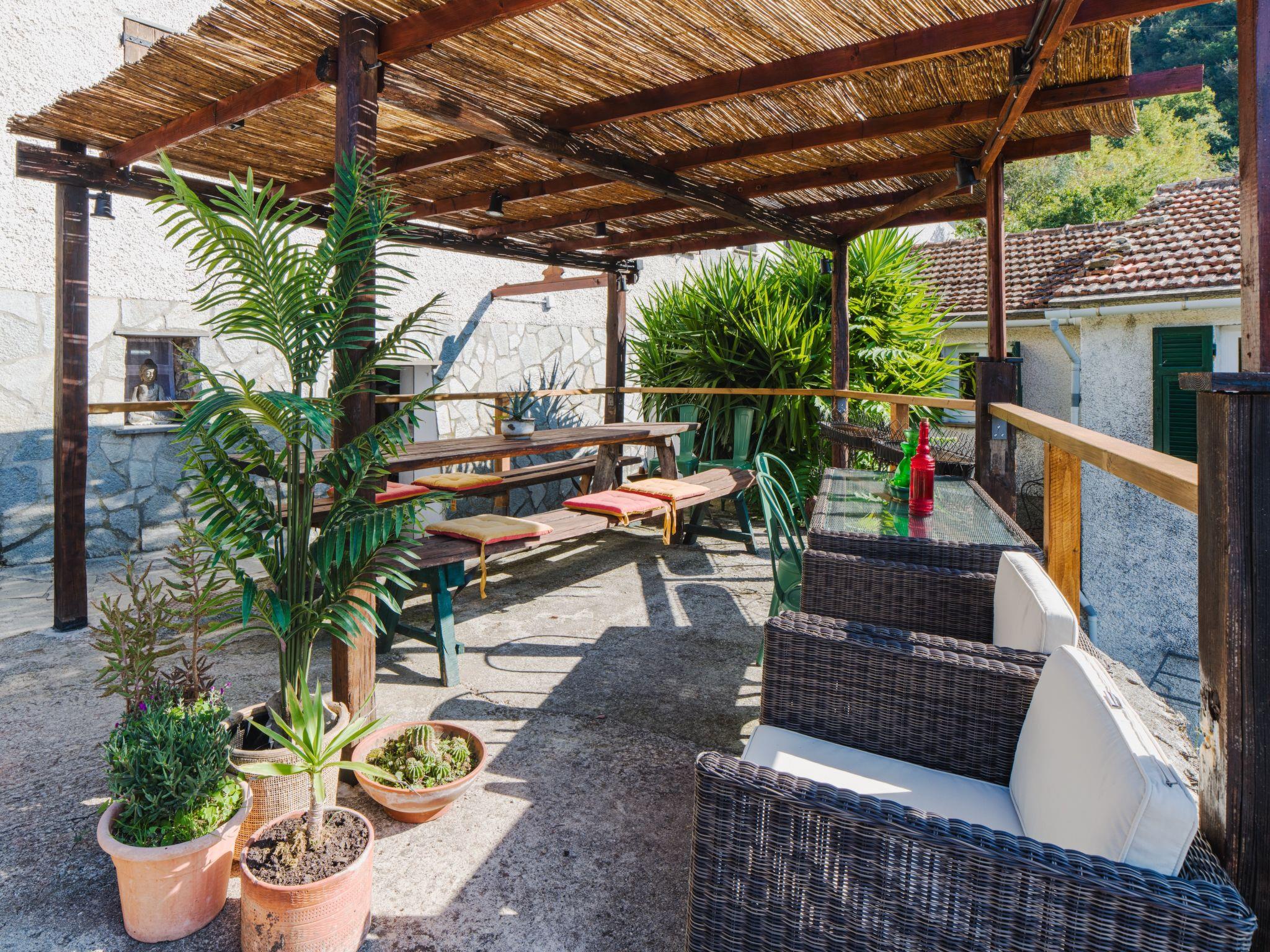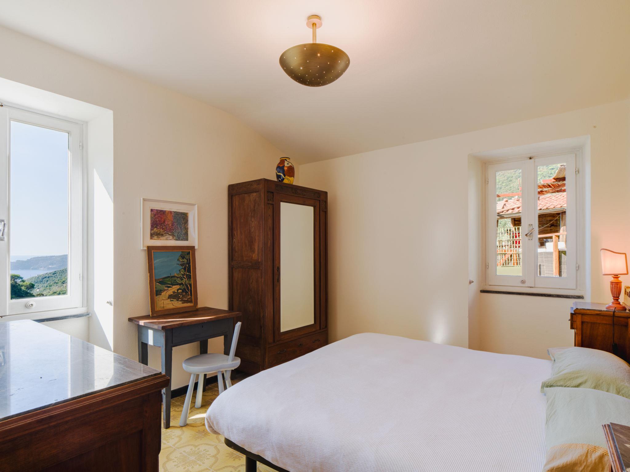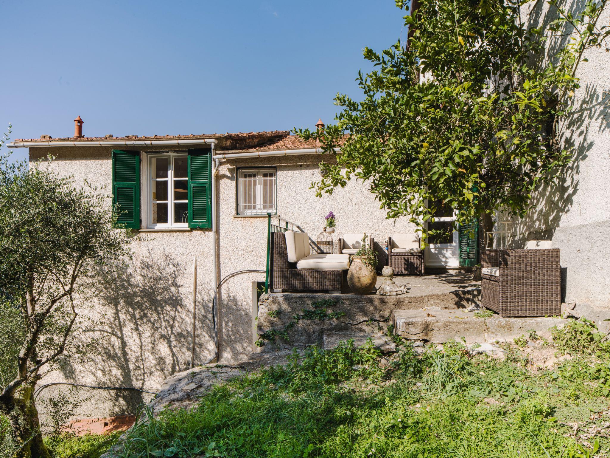 3-room semi-detached house 70 m2, on the upper floor. Partly renovated in 2025, rustic and tasteful furnishings: living/sleeping room with 1 sofabed and TV. Exit to the garden. 1 double bedroom with fan. 1 room with 2 beds. Kitchen (4 induction hot plates, kettle, microwave, electric coffee machine) with dining table. Shower/bidet/WC. No heating option. Garden. Terrace furniture, deck chairs (2). Distant view of the sea and the valley. Facilities: hair dryer. Internet (WiFi, free). Please note: not suitable for small children. Smoke alarm, fire extinguisher. The shower head is 170cm high. IT010067C2AIII6UU8