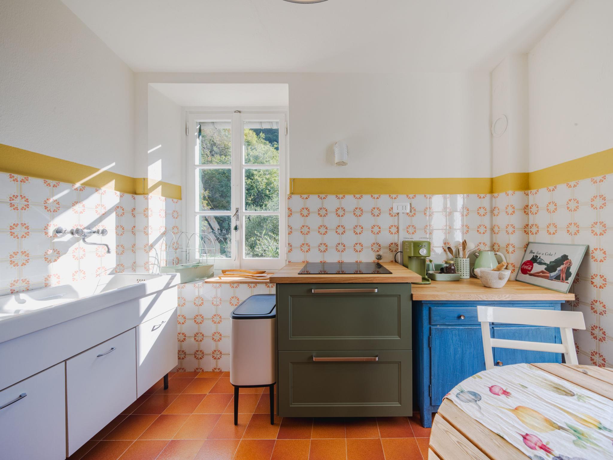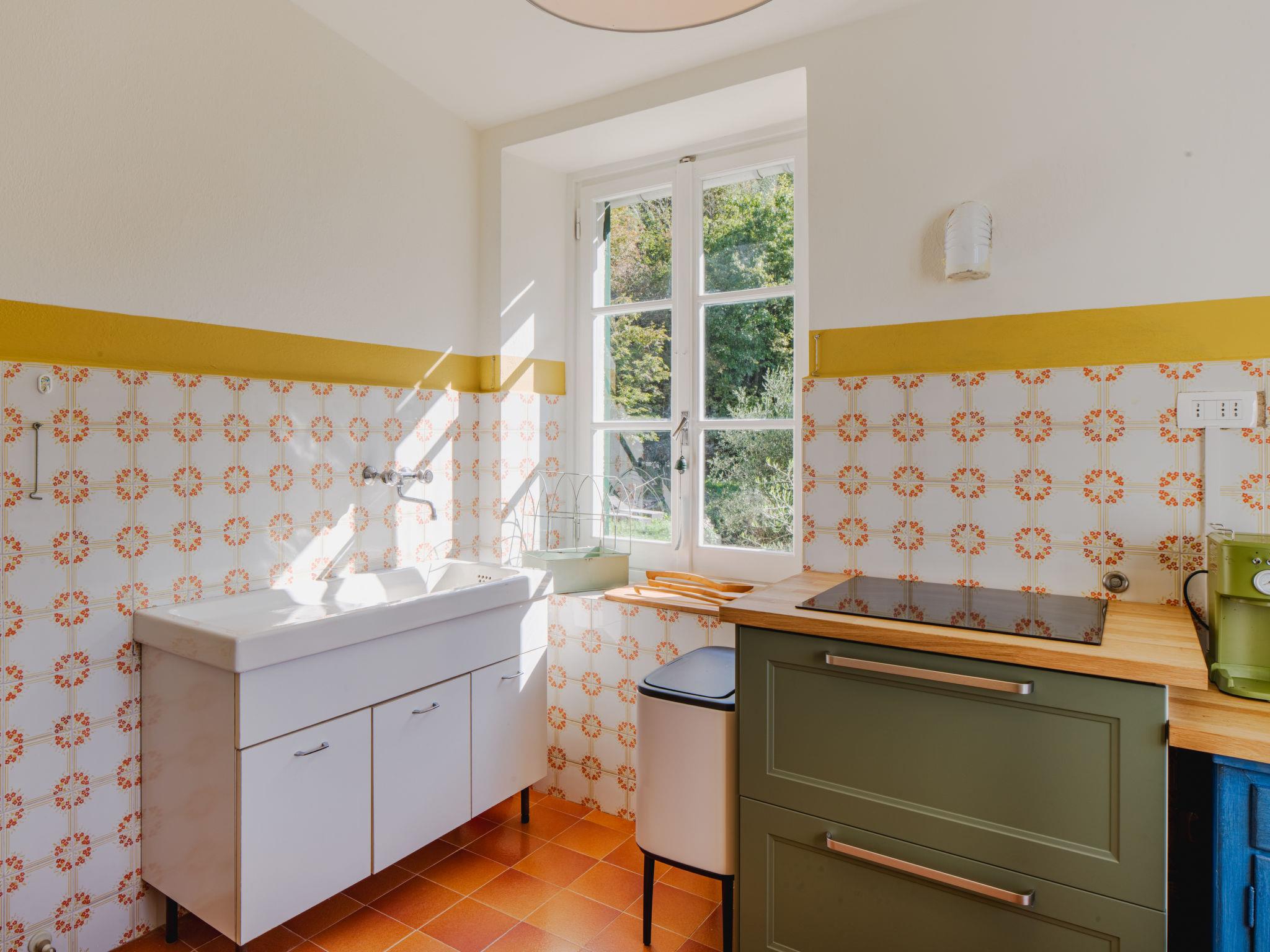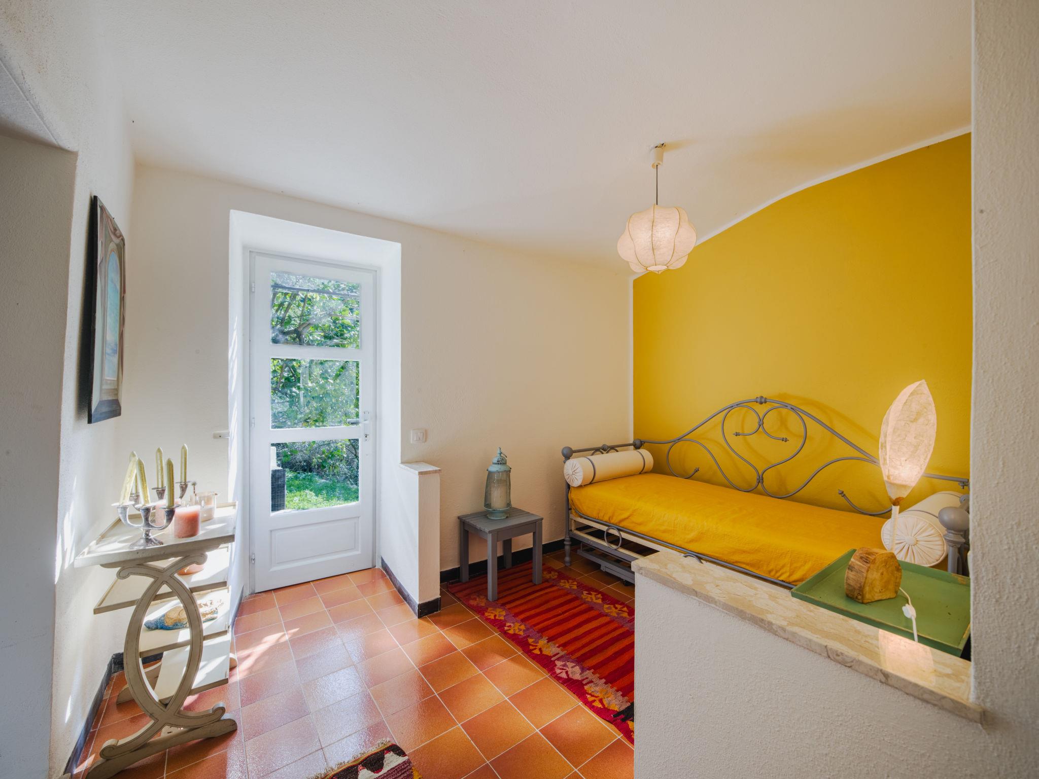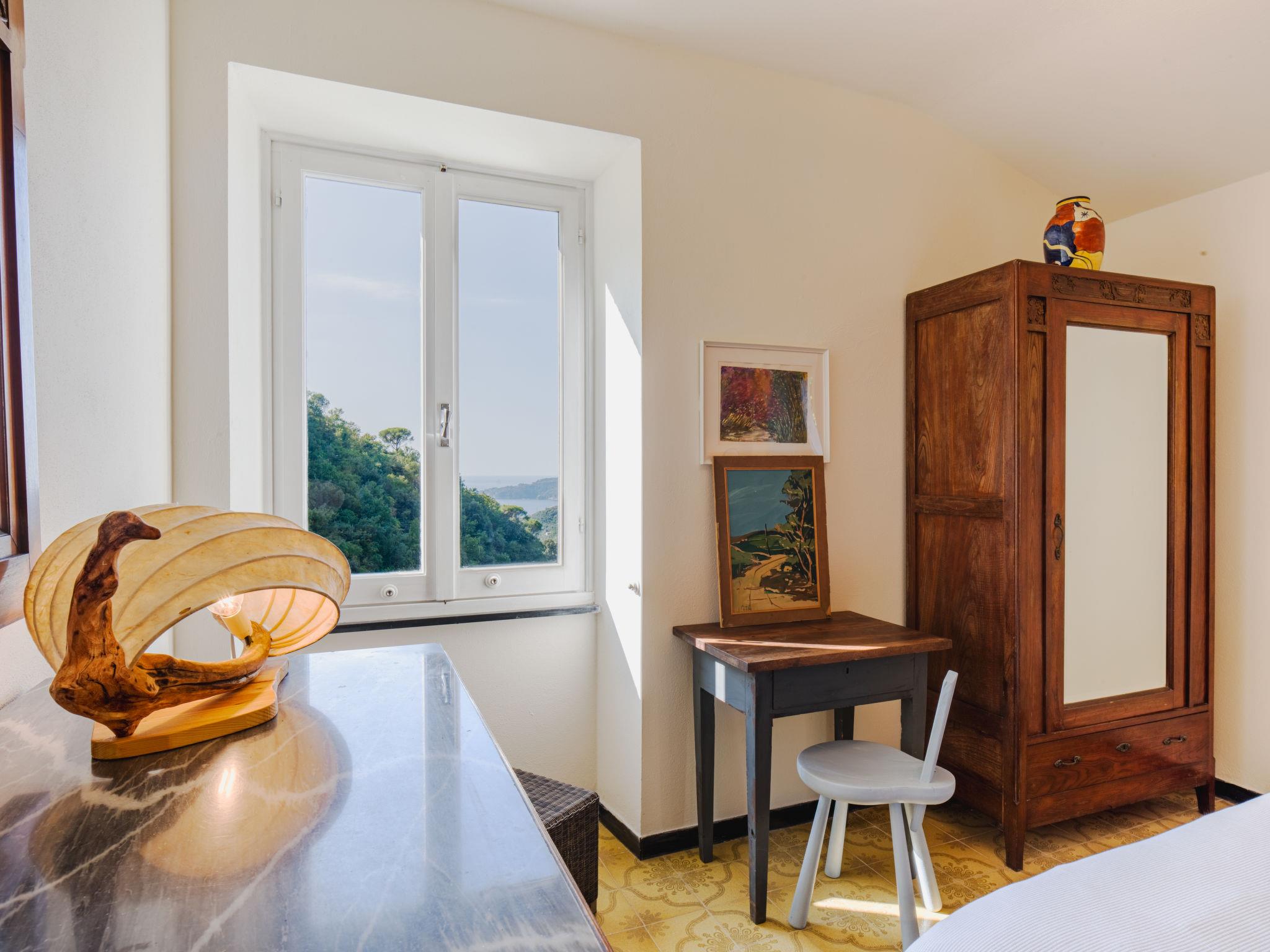 3-room semi-detached house 70 m2, on the upper floor. Partly renovated in 2025, rustic and tasteful furnishings: living/sleeping room with 1 sofabed and TV. Exit to the garden. 1 double bedroom with fan. 1 room with 2 beds. Kitchen (4 induction hot plates, kettle, microwave, electric coffee machine) with dining table. Shower/bidet/WC. No heating option. Garden. Terrace furniture, deck chairs (2). Distant view of the sea and the valley. Facilities: hair dryer. Internet (WiFi, free). Please note: not suitable for small children. Smoke alarm, fire extinguisher. The shower head is 170cm high. IT010067C2AIII6UU8