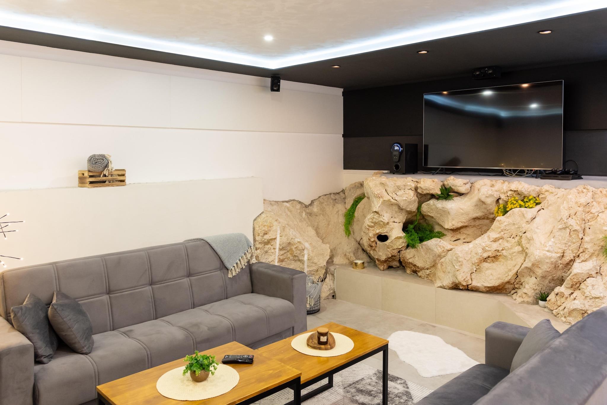 Beliggende i den fredelige landsby Šestanovac, lige inde i landet fra Adriaterhavskysten, er Villa Casa Mia designet til grupper, der ønsker privatliv, komfort og plads til rent faktisk at nyde tiden sammen. Denne villa i ét plan er bygget på en fuldt indhegnet grund og byder op til otte gæster velkommen med en planløsning, der balancerer åbne sociale rum og rolige soveområder. Indenfor åbner villaen ind i en lys, åben stue og spisestue med store glasdøre, der vender direkte ud mod poolterrassen. Stuen har et tv, PlayStation og Wi-Fi, mens det fuldt udstyrede køkken indeholder alt, hvad der er nødvendigt for længere ophold - inklusive et ismaskine-køleskab, kaffemaskine og komplet køkkengrej. Et gæstetoilet og et separat vaskerum med vaskemaskine og tørretumbler tilføjer hverdagens bekvemmeligheder. Alle fire værelser med aircondition er rummelige og komfortabelt indrettede, hver med en kingsize-seng, med to fælles store familiebadeværelser med brusekabine. Udenfor kommer Villa Casa Mia virkelig til sin ret. Den opvarmede private pool med hydromassagebænk, liggestole, parasoller og skyggefulde siddepladser forankrer terrassen. En overdækket udendørs spiseplads med stengrill, en legeplads med trampolin og minigolf samt en indhegnet fodboldbane skaber et ægte udendørsområde for alle aldre. Daglige fornødenheder - supermarked, caféer og restauranter ligger inden for gåafstand, mens Cetina-floden til rafting ligger i nærheden, og strandene nær Makarska ligger en nem køretur væk. Villa Casa Mia passer til gæster, der søger plads, privatliv, familievenlige faciliteter, stærke udendørsfaciliteter og en rolig base nær kysten - uden at betale priser ved stranden eller have at gøre med resortets folkemængder.