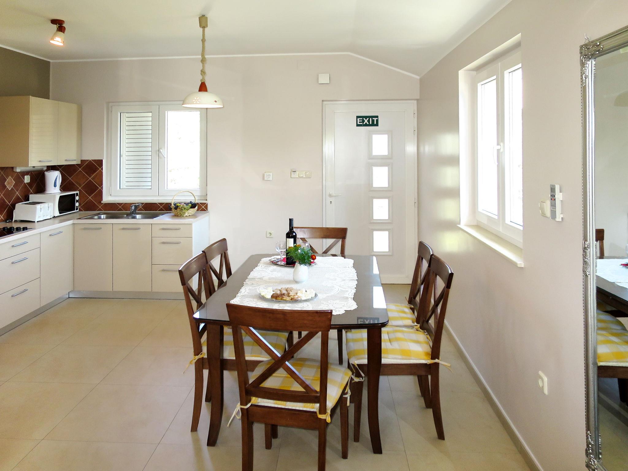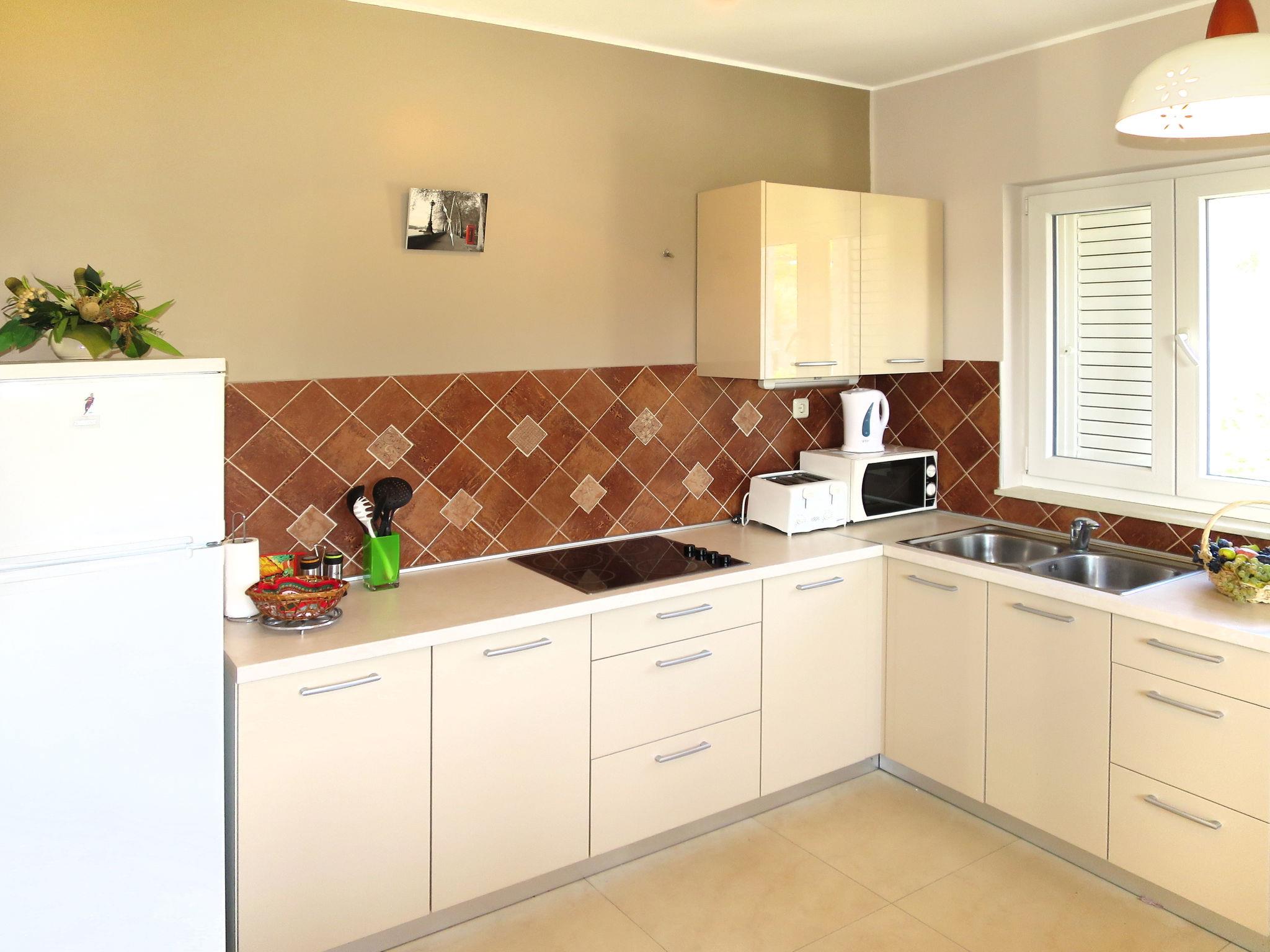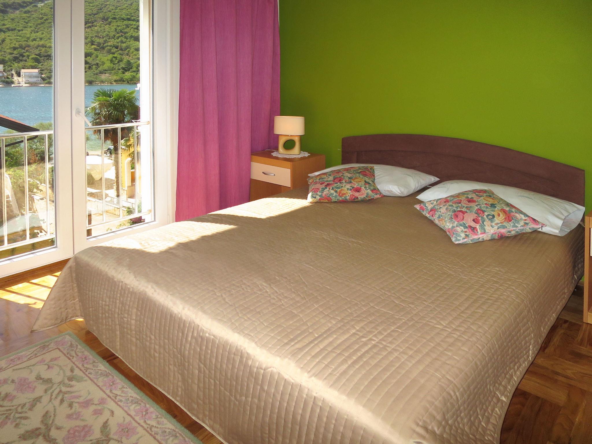 3-room apartment 75 m2 on 2nd floor. Living/dining room with 1 sofabed (160 cm), satellite TV (flat screen), air conditioning. Exit to the balcony. 1 room with 1 french bed (160 cm, length 200 cm). 1 room with 2 beds. Open kitchen (dishwasher, 4 ceramic glass hob hotplates, toaster, kettle, microwave, freezer, electric coffee machine) with air conditioning. Shower/WC, sep. WC. No heating option. Balcony. Balcony furniture. View of the sea. Facilities: mosquito net. Internet (WiFi, free). Parking (1 car). Please note: non-smokers only. Private entrance.