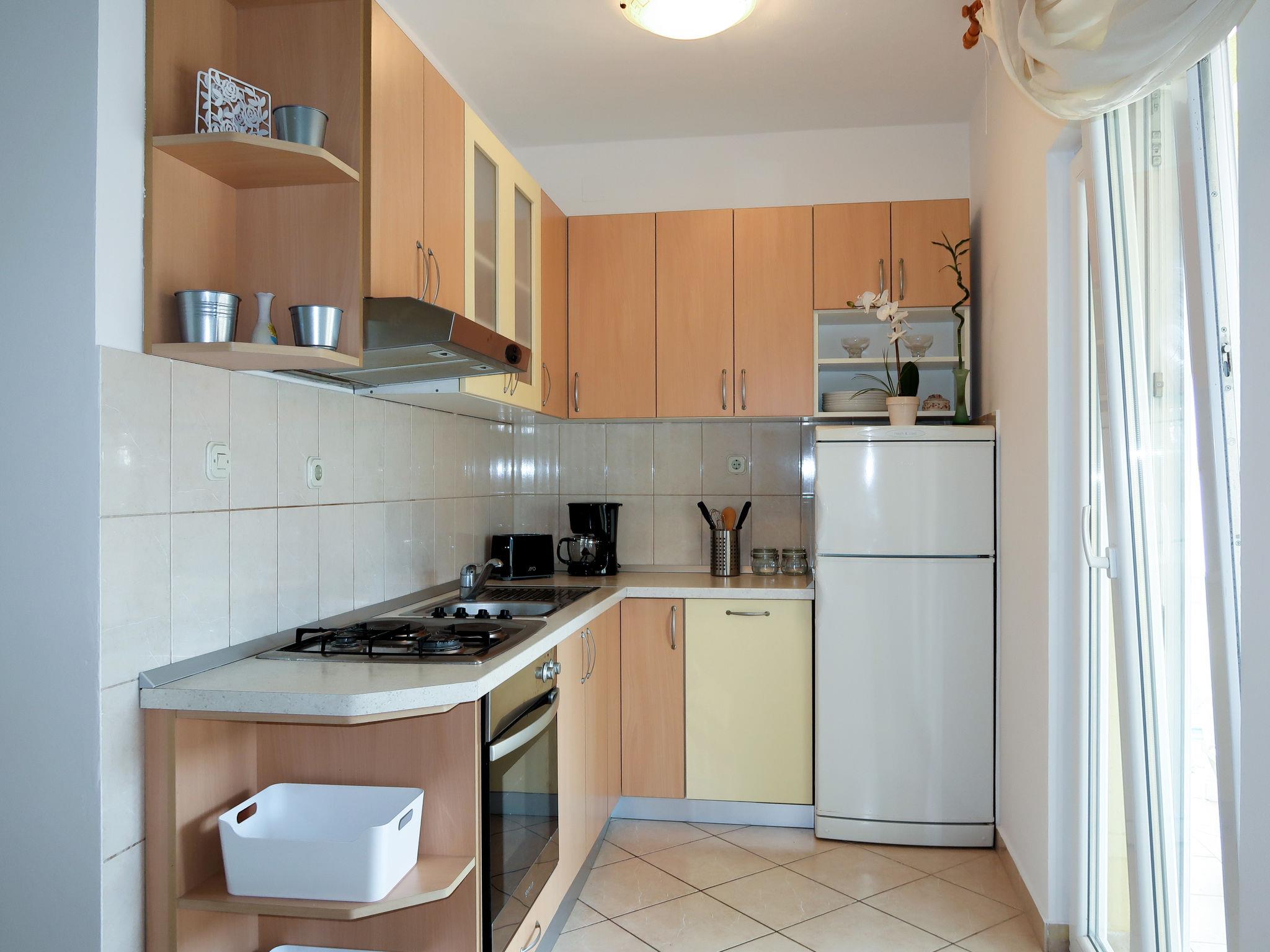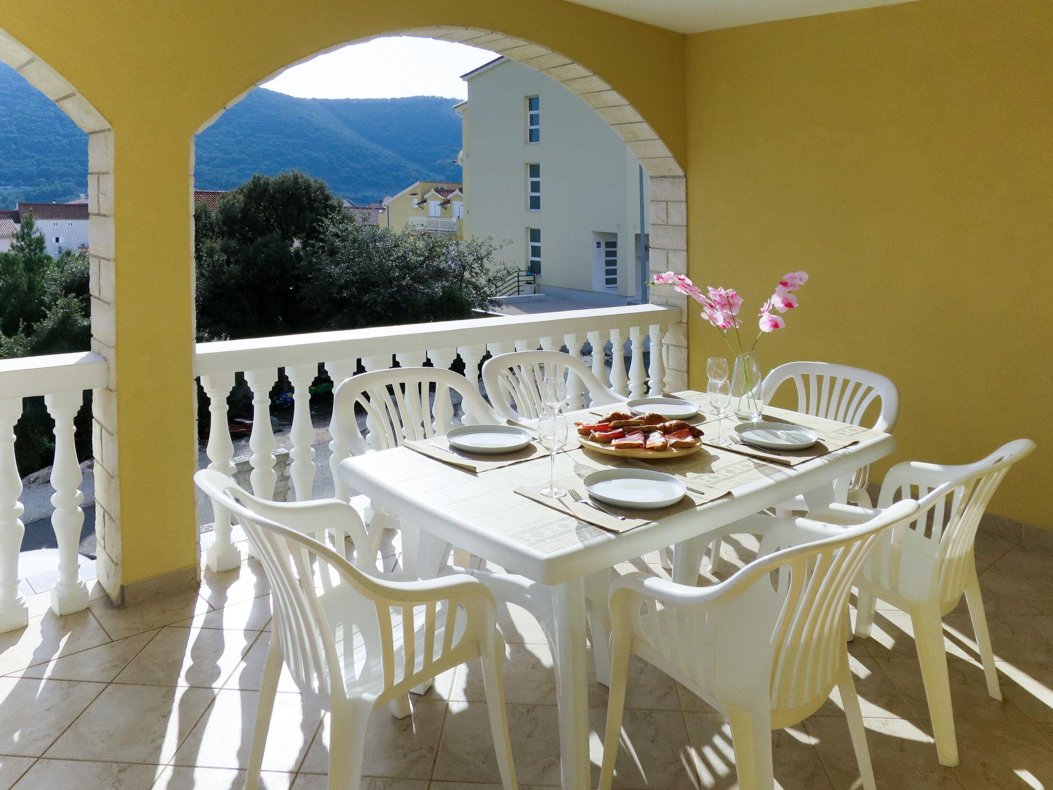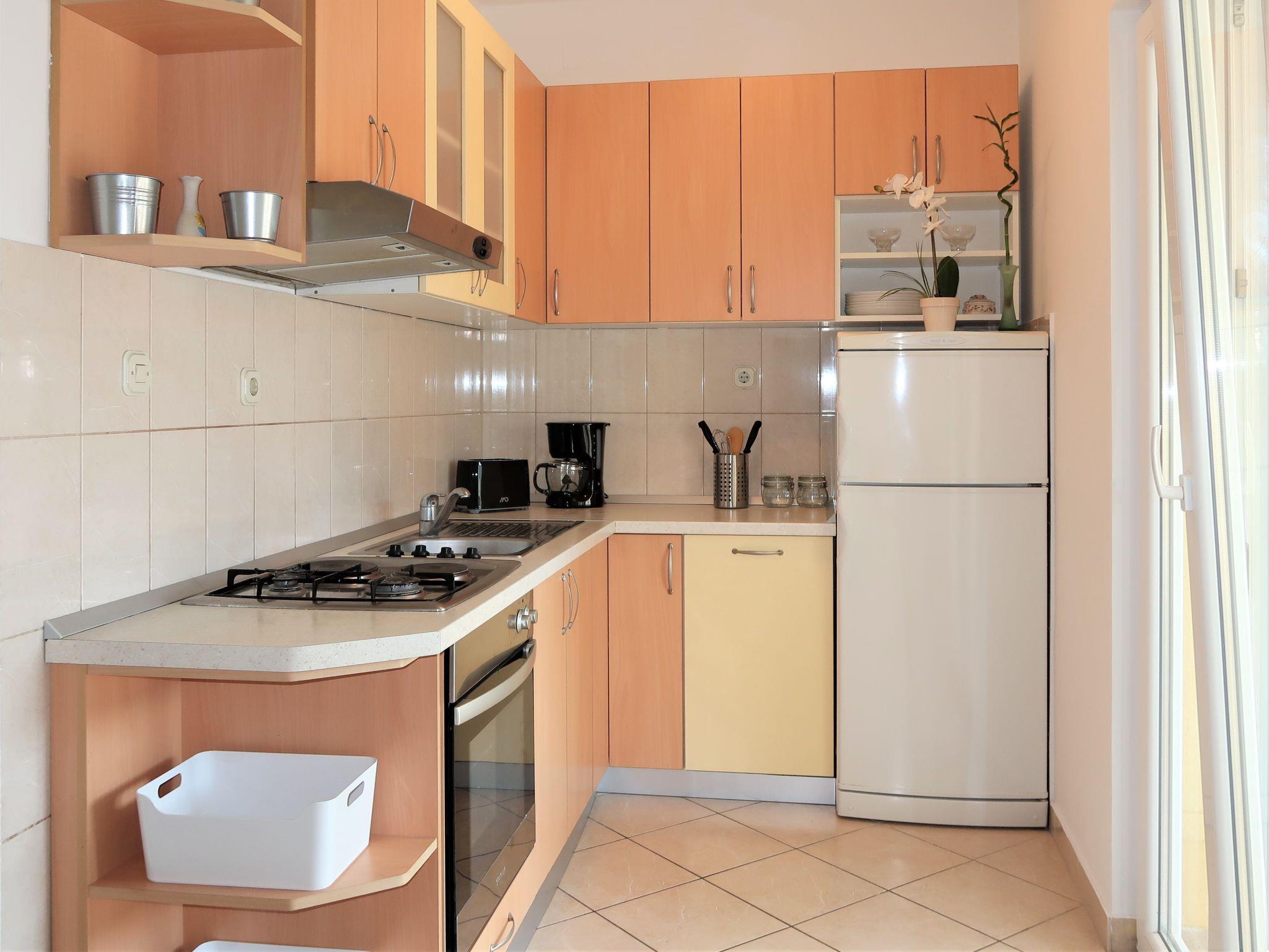 "Toni", 3-room apartment 60 m2 on 1st floor. Living/dining room with 1 sofabed, satellite TV and air conditioning. Exit to the balcony. 2 rooms, each room with 1 double bed. Open kitchen (2 hot plates, oven, dishwasher, 2 gas rings, toaster, kettle, freezer, electric coffee machine). Bath/WC. No heating option. Balcony 18 m2. Balcony furniture, deck chairs (2). Partial view of the sea. Facilities: washing machine. Internet (WiFi, free).