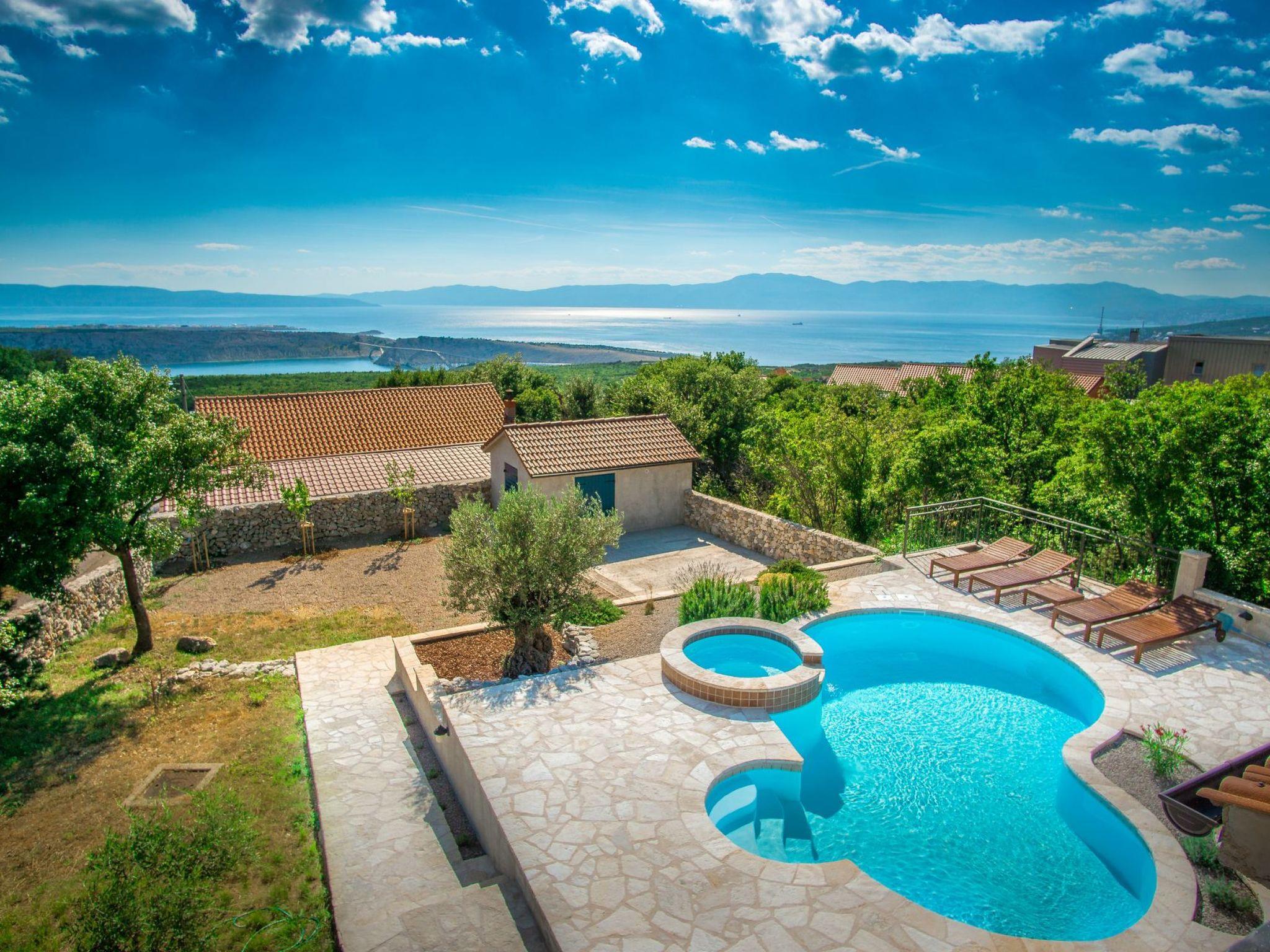 Fully detached luxury holiday villa with panoramic sea views across the Kvarner bay from the private illuminated swimming pool complete with children's pool