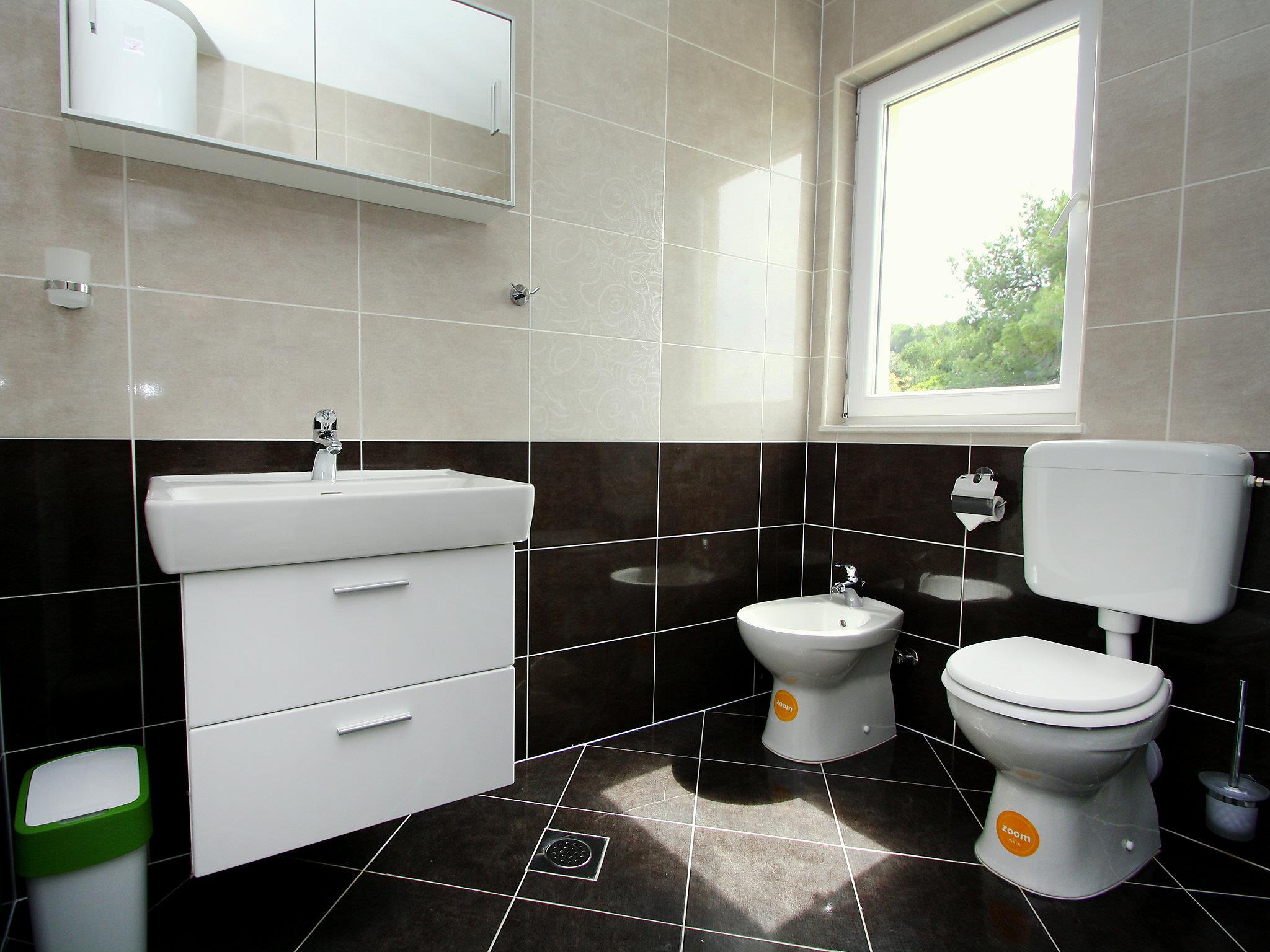 3-family house "Gabriela", 3 storeys. In a quiet, sunny, elevated position, 200 m from the sea, 200 m from the beach. Private: swimming pool angular (9 x 3 m, 29 m2, depth 150 cm, seasonal availability: 01.May. - 01.Oct.) with internal staircase. Outdoor shower, garden furniture, barbecue. In the house: internet access, washing machine. Parking at the house on the premises. Shop 5 km, restaurant 250 m, bus stop 550 m, pebble beach 500 m, rocky beach 200 m. Shop 850 m (15.06.-15.09.).