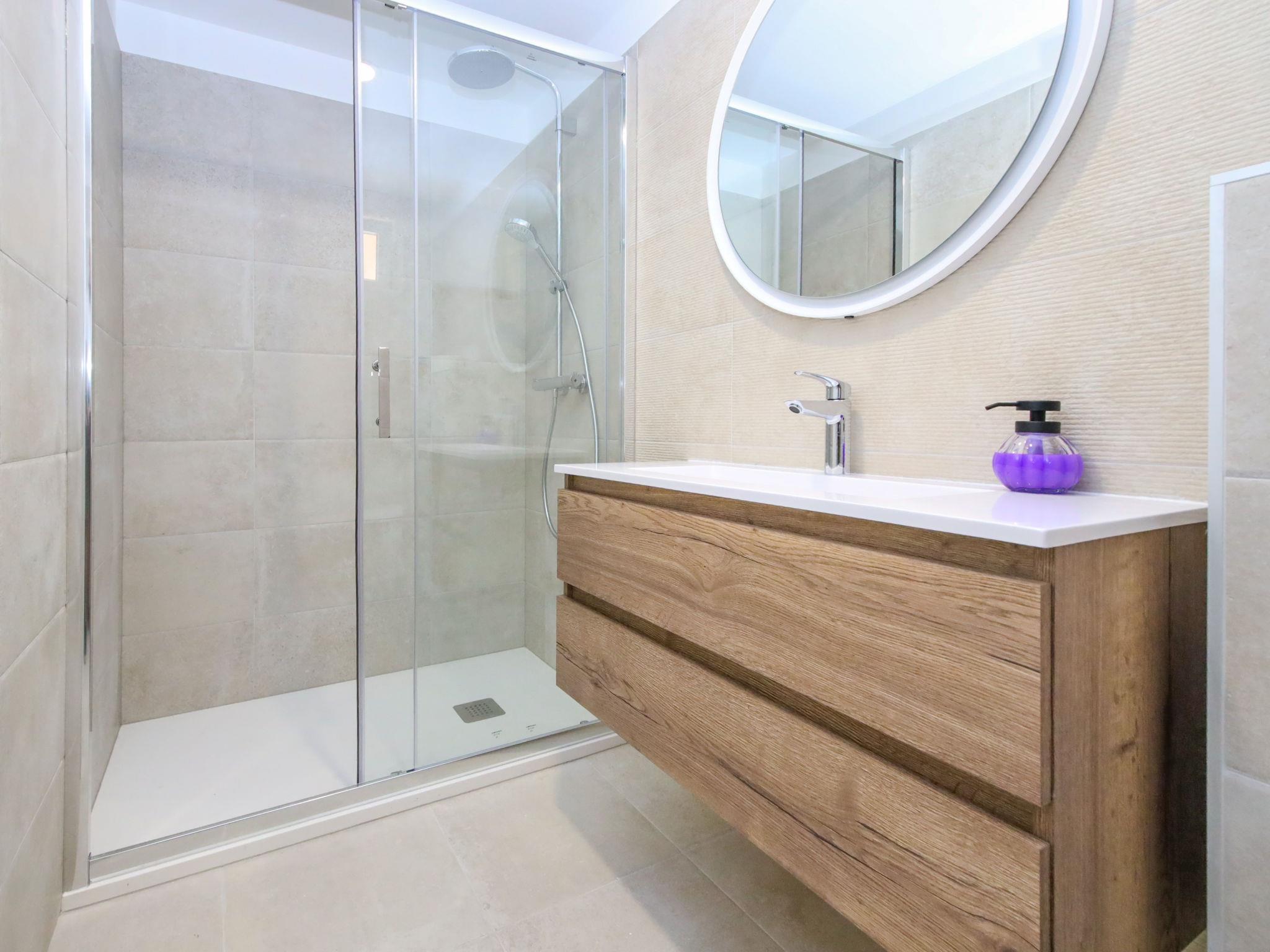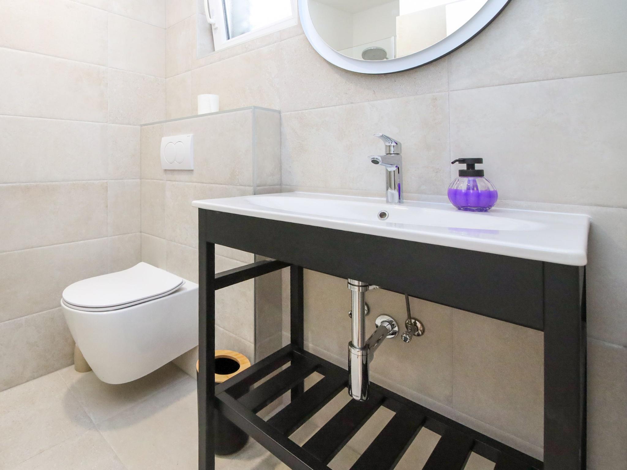 5-room house 100 m2 on 2 levels, east facing position. Living/dining room with satellite TV (flat screen), air conditioning. Exit to the terrace. 1 room with 1 french bed (160 cm, length 200 cm), shower/WC and air conditioning. 1 room with 2 beds (90 cm, length 200 cm), shower/WC and air conditioning. Open kitchen (oven, dishwasher, 4 ceramic glass hob hotplates, toaster, kettle, microwave, freezer, electric coffee machine). On the lower ground floor: living room with satellite TV (flat screen). 1 room with 1 french bed (160 cm, length 200 cm), shower/WC and air conditioning. Sep. WC. No heating option. Terrace 32 m2, roofed. Terrace furniture, deck chairs. Beautiful view of the sea. Facilities: hair dryer. Internet (WiFi, free).