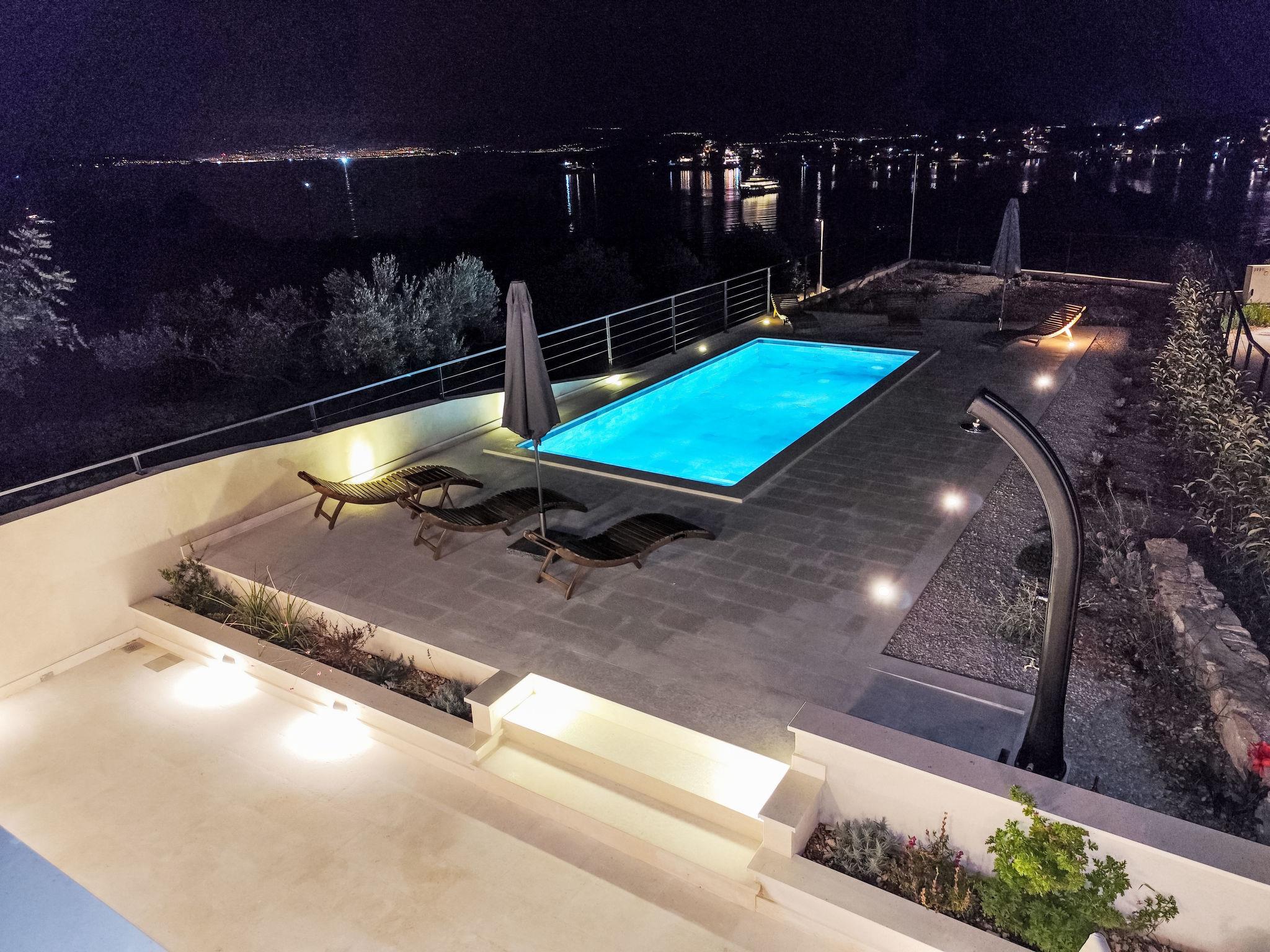 Single-family house "Sova", 2 storeys. 2.5 km from the centre of Grohote, in a quiet, sunny position, 200 m from the sea, 200 m from the beach, in a cul-de-sac, in the countryside. Private: property 500 m2, garden 20 m2, swimming pool angular, heated (7 x 3 m, depth 150 cm, seasonal availability: 01.May. - 01.Oct.) with internal staircase. Outdoor shower, terrace (50 m2), garden furniture, barbecue, pool maintenance by the owner/gardener. In the house: internet access, table tennis, washing machine, tumble dryer. Parking (for 2 cars) at the house on the premises. Supermarket 2.5 km, restaurant 2.5 km, bakery 2.5 km, bus stop 2 km, pebble beach 450 m, rocky beach 200 m. Marina 2 km. Swimming pool heated (extra). ,It is necessary to announce 7 days in advance if the heating is required.