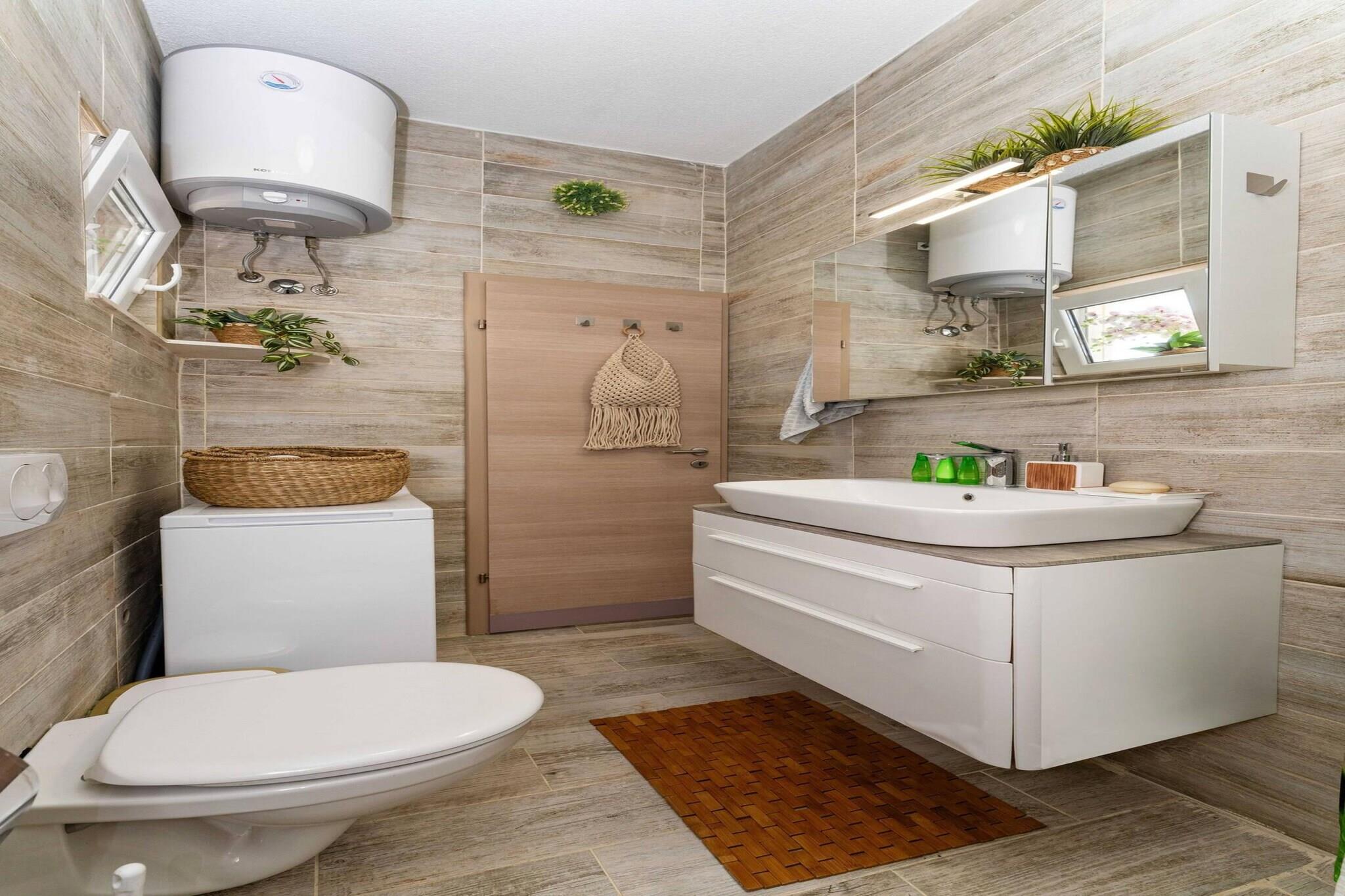 Tag til et fredeligt sted nær Zadar, til dette charmerende feriehus beliggende i den rolige landsby Šopot, ikke langt fra Benkovac. Omgivet af vinmarker og olivenlunde tilbyder denne nybyggede villa den perfekte kombination af komfort og privatliv for familier eller par, der søger afslapning. Det lyse interiør omfatter et fuldt udstyret køkken, en hyggelig stue med sovesofa, et moderne badeværelse og et soveværelse med to enkeltsenge. Udenfor er der en privat, indhegnet have med swimmingpool, liggestole og overdækket terrasse med spiseplads. Den traditionelle stengrill og trampolin til børnene gør det til det perfekte sted til både afslapning og familiehygge. Kun 15 minutter væk ligger de sandstrande i Pakoštane og den smukke naturpark Vrana-søen. Byerne Zadar og Šibenik, der er opført på UNESCOs verdensarvsliste, samt Krka Nationalpark ligger i nærheden, hvilket gør dette hus til et ideelt udgangspunkt for at udforske Dalmiens naturlige og kulturelle skatte.