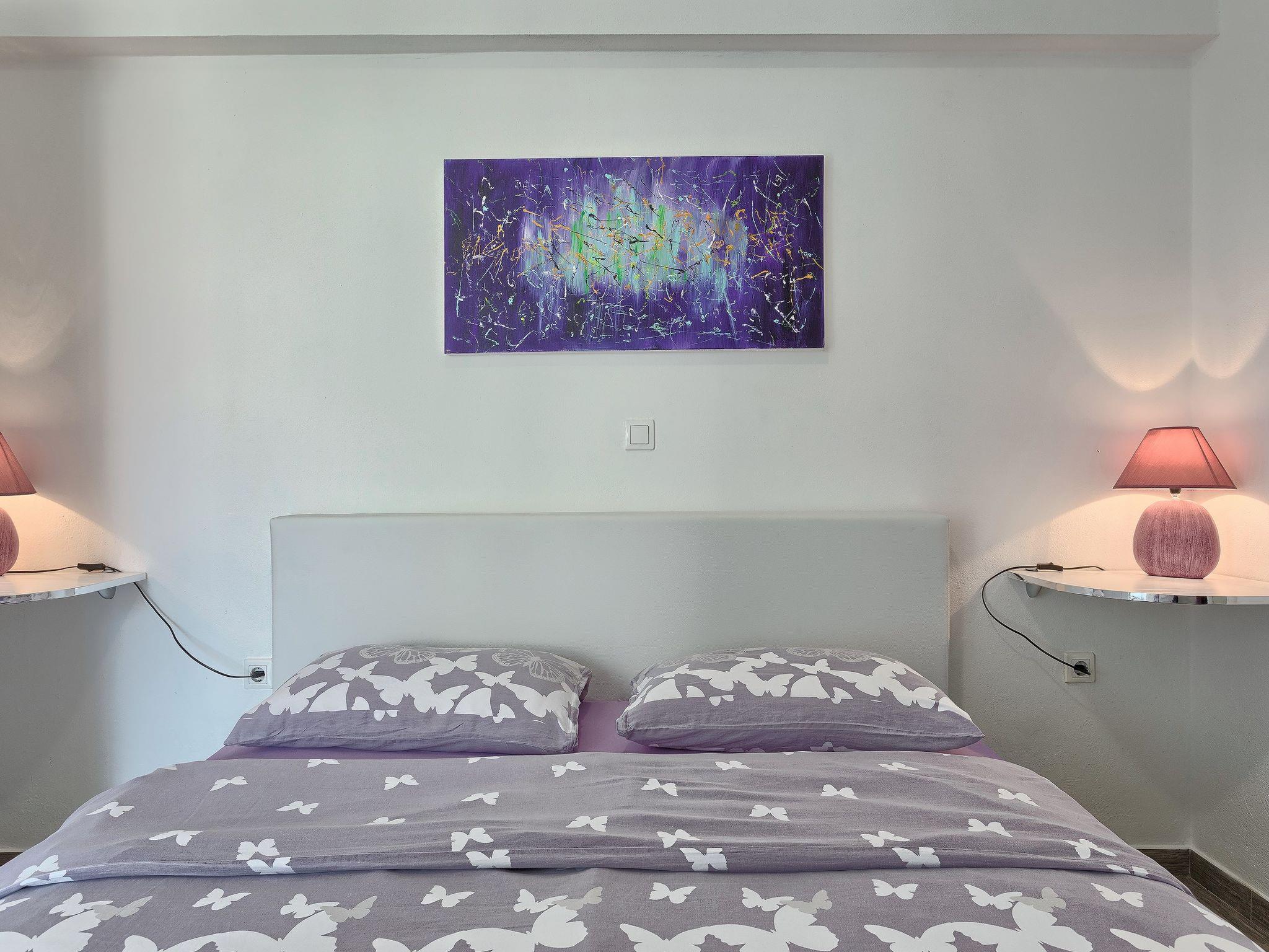 4-room house 70 m2. Living/dining room 25 m2 with satellite TV (flat screen), air conditioning. Exit to the swimming pool. Entrance hall with air conditioning. 1 room with 1 french bed (160 cm, length 200 cm). 1 room with 2 beds (80 cm, length 190 cm). 1 room with 1 french bed (180 cm, length 200 cm), shower/WC. Open kitchen (2 ceramic glass hob hotplates, microwave, freezer). Shower/bidet/WC. Deck chairs. Facilities: Internet (WiFi, free). 1 small pet/ dog allowed.