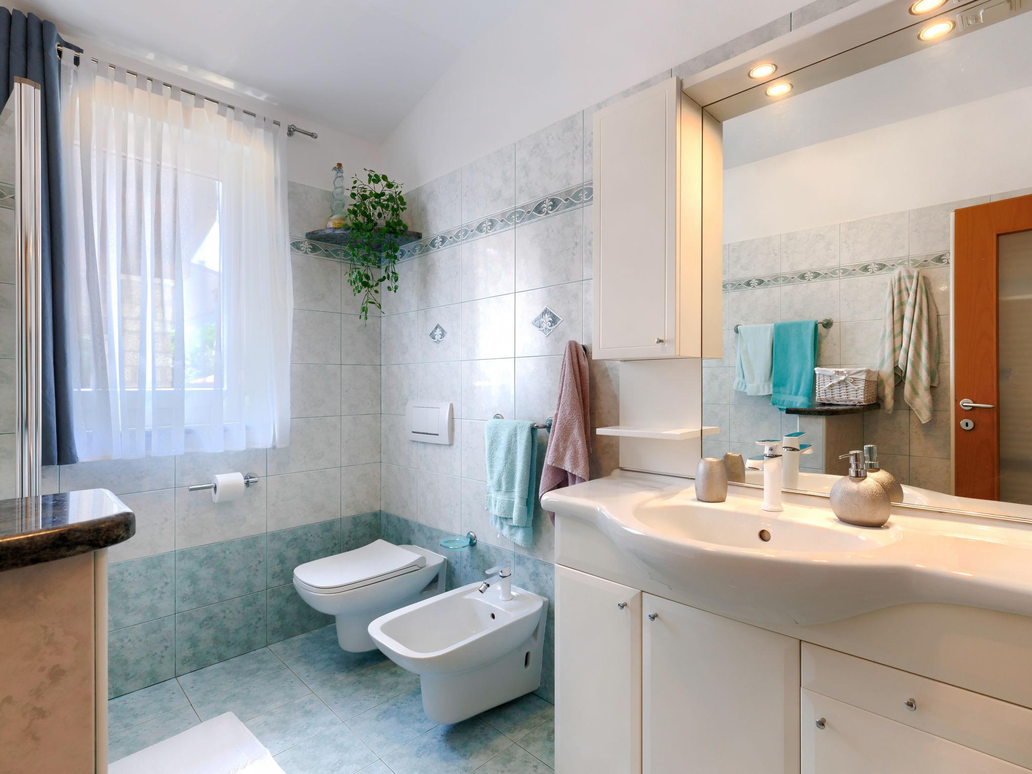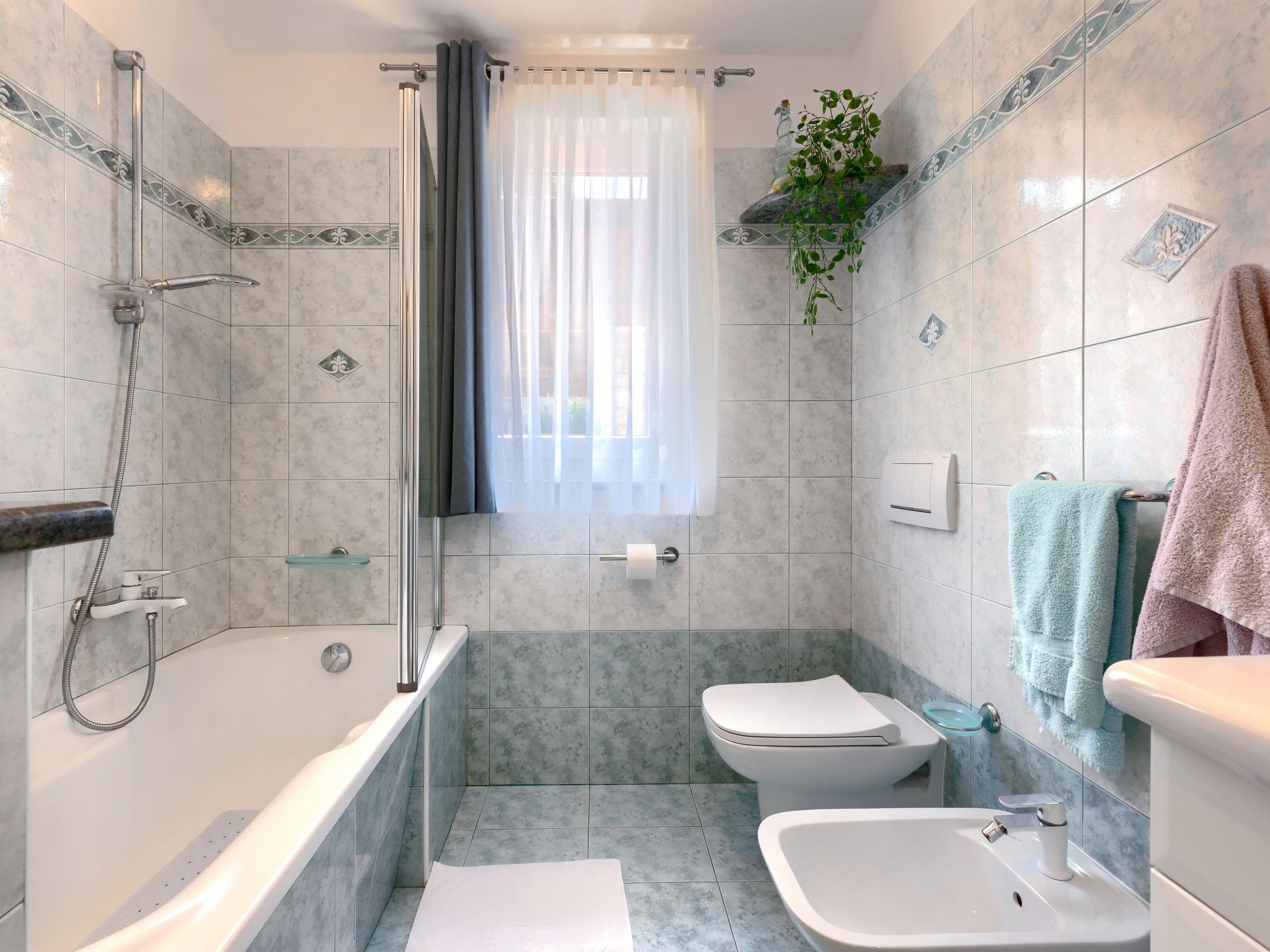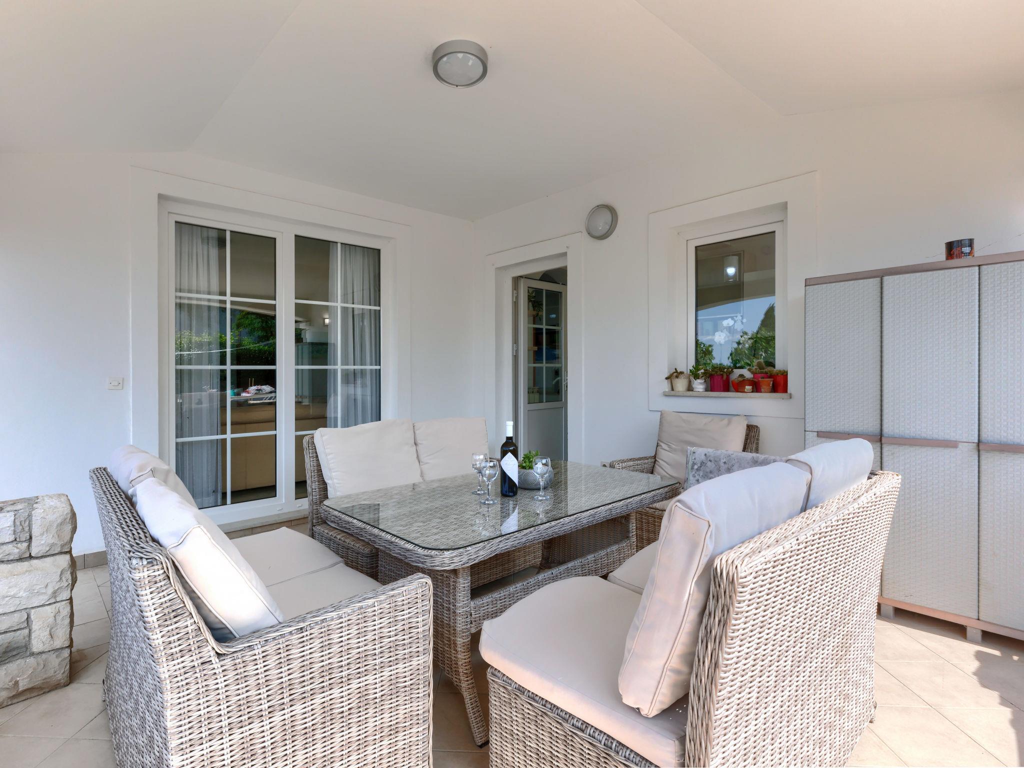 4-room apartment 135 m2, on the ground floor. Living/dining room 40 m2 with satellite TV and air conditioning. Exit to the terrace. 1 room with 1 french bed (180 cm, length 200 cm), shower/WC and air conditioning. 1 room with 1 french bed (160 cm, length 200 cm). 1 room with 2 beds (90 cm, length 200 cm). Open kitchen (oven, dishwasher, 2 ceramic glass hob hotplates, 2 gas rings, kettle, microwave, freezer, electric coffee machine). Exit to the terrace. Bath/WC. Terrace 21 m2, roofed. Terrace furniture. View of the swimming pool. Facilities: washing machine. Internet (WiFi, free). Please note: maximum 1 small pet/ dog allowed. Private entrance.