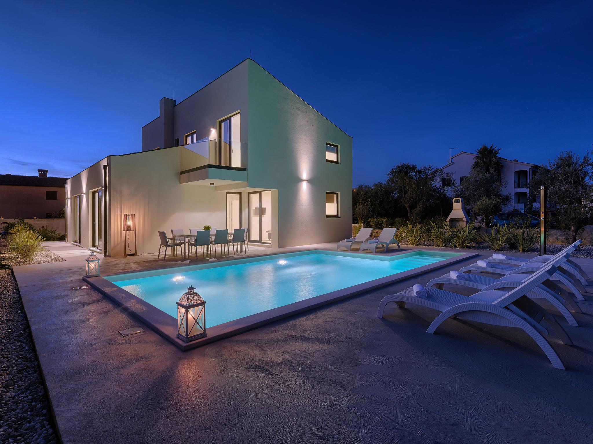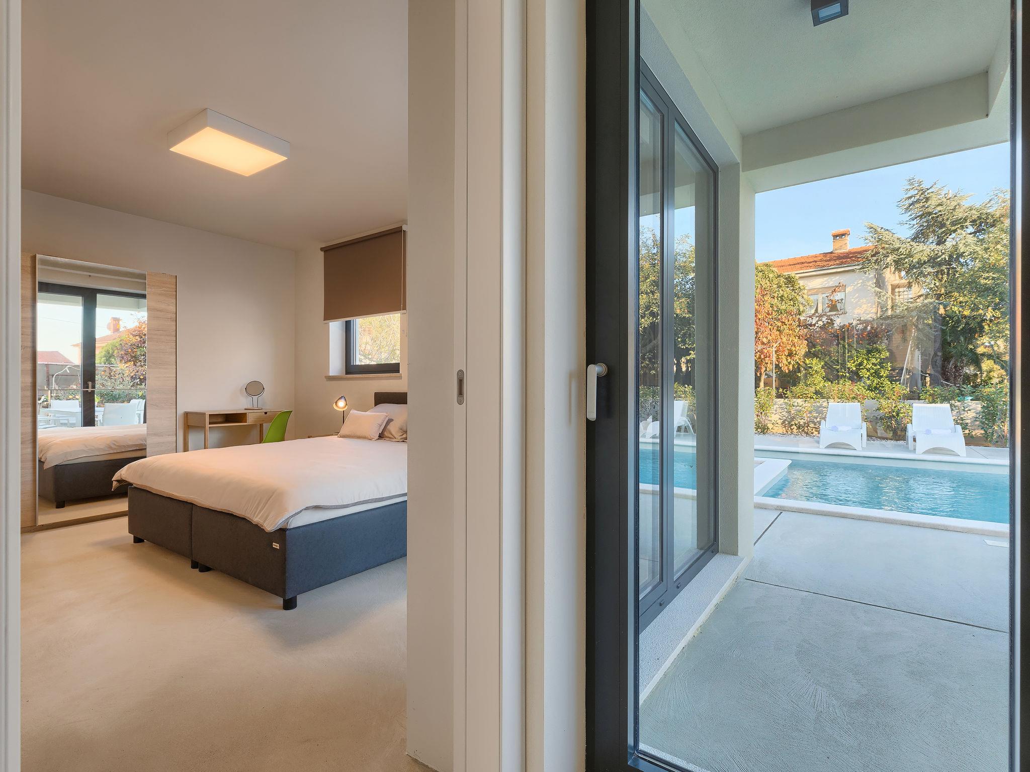 Štinjan 5 km from Pula: Villa "Anna", 2 storeys. 3 km from the centre of Fažana, in a sunny position, 1 km from the sea, 1 km from the beach. Private: property 750 m2 (fenced), garden with swimming pool angular, heated (8 x 4 m, depth 140 cm, seasonal availability: 01.Jan. - 31.Dec.) with internal staircase. Outdoor shower, barbecue. In the house: internet access, washing machine. Parking (for 3 cars) at the house on the premises. Shop 100 m, restaurant 800 m, bus stop 10 m, pebble beach 1 km, rocky beach 1 km. Golf course (18 hole) 5 km, sailing school 5 km, tennis 500 m, riding stable 4 km, walking paths from the house 500 m, cycle lane 550 m. The owner does not accept any youth groups. Please note: airfield 15 km from the property. Swimming pool heated (extra). It is necessary to announce 7 days in advance if the pool heating is required.