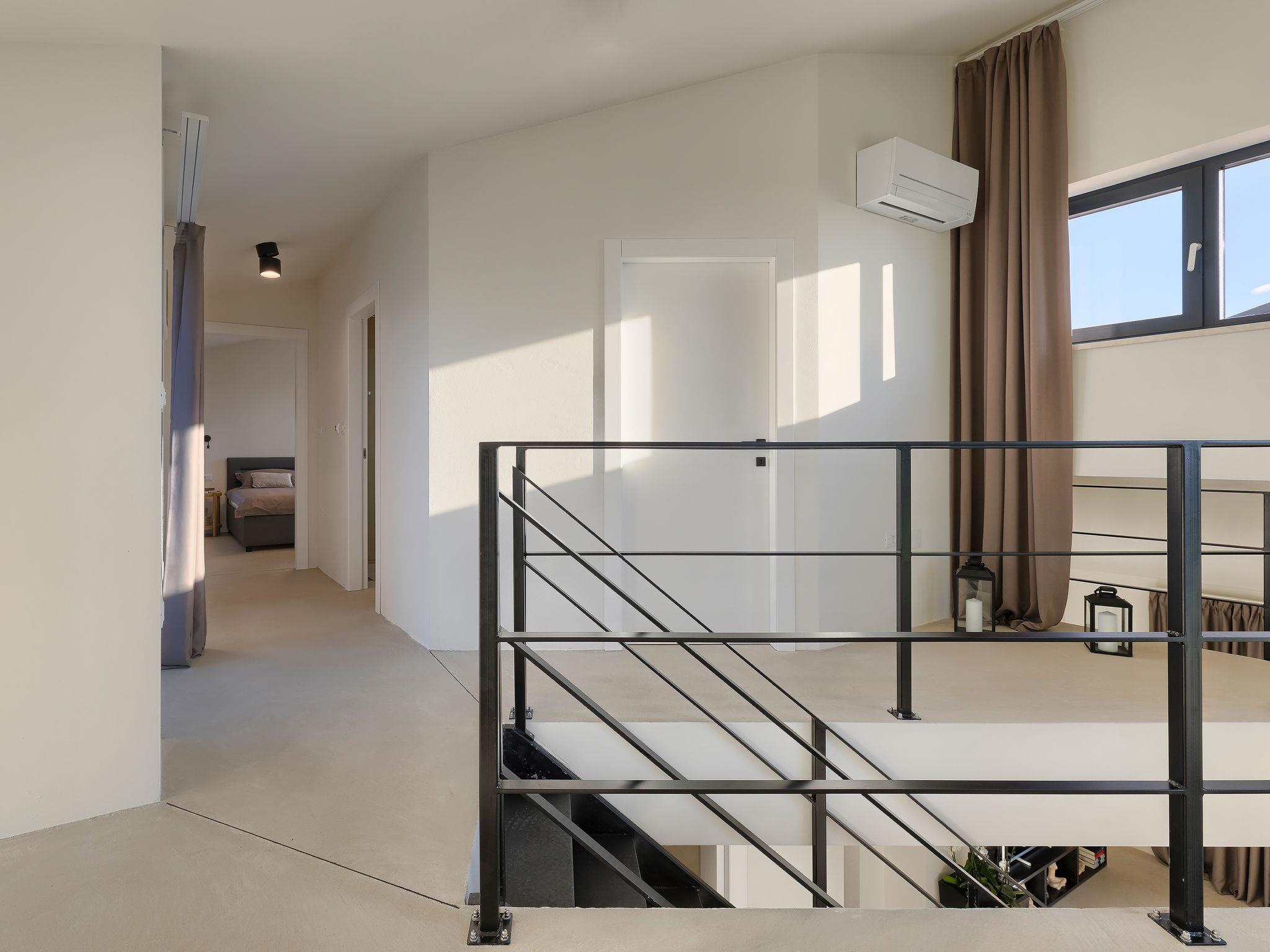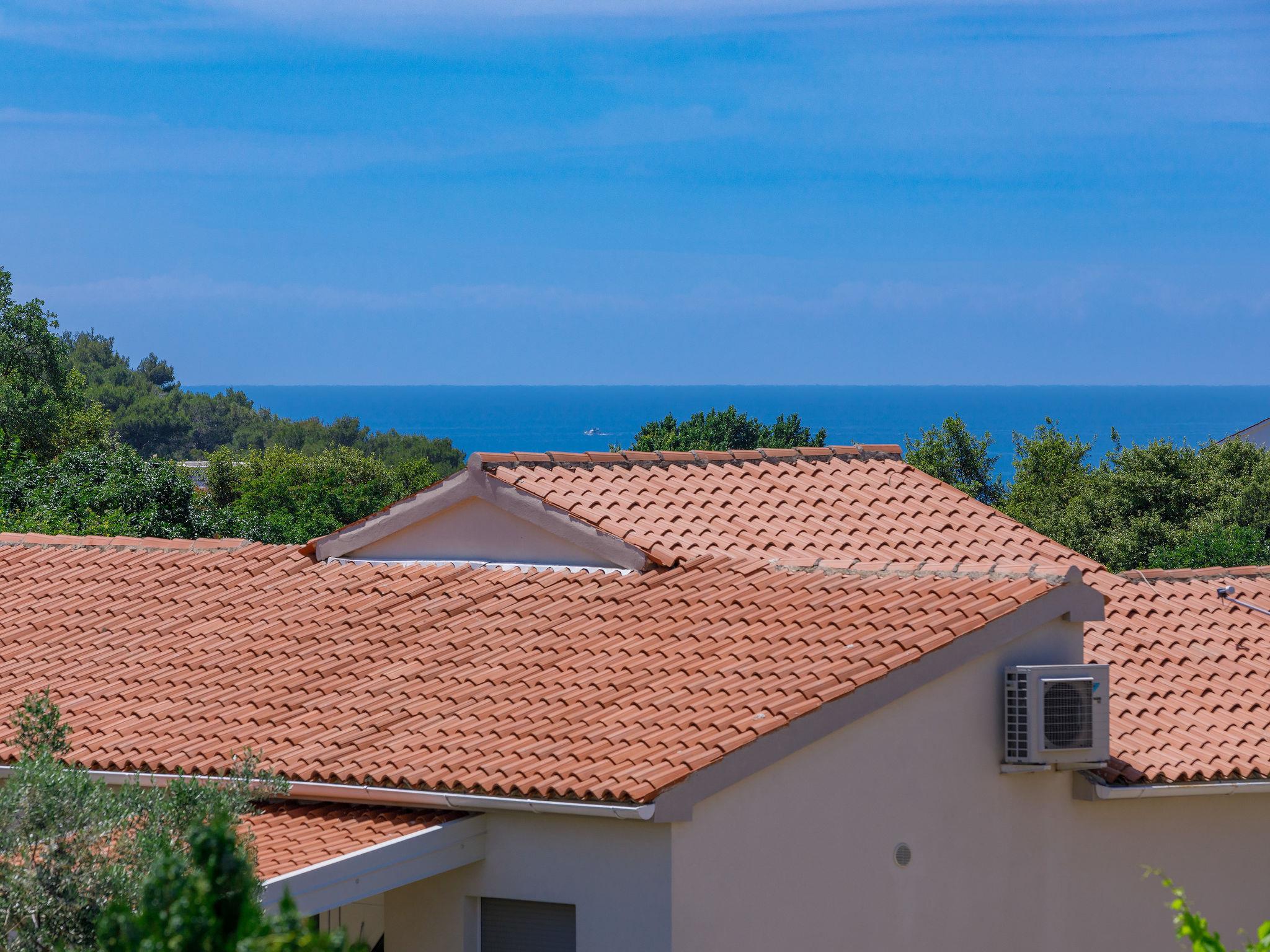 5-room villa 160 m2 on 2 levels. Living/dining room with satellite TV (flat screen), air conditioning. 2 rooms, each room with 1 double bed (2 x 90 cm, length 200 cm), satellite TV (flat screen), air conditioning. Exit to the swimming pool. Open kitchen (oven, dishwasher, 4 ceramic glass hob hotplates, microwave, freezer, electric coffee machine). Shower/WC, sep. WC. Upper floor: open walk-through room with 2 sofabeds (90 cm, length 200 cm), satellite TV (flat screen), air conditioning. Exit to the terrace. 1 room with 1 double bed (2 x 90 cm, length 200 cm), satellite TV (flat screen), air conditioning. Exit to the terrace. Shower/WC. Forced-air heating. Terrace 8 m2, terrace 6 m2. Terrace furniture, deck chairs. Partial view of the sea. Facilities: safe, baby cot, hair dryer. Internet (WiFi, free). Maximum 1 pet/ dog allowed.
