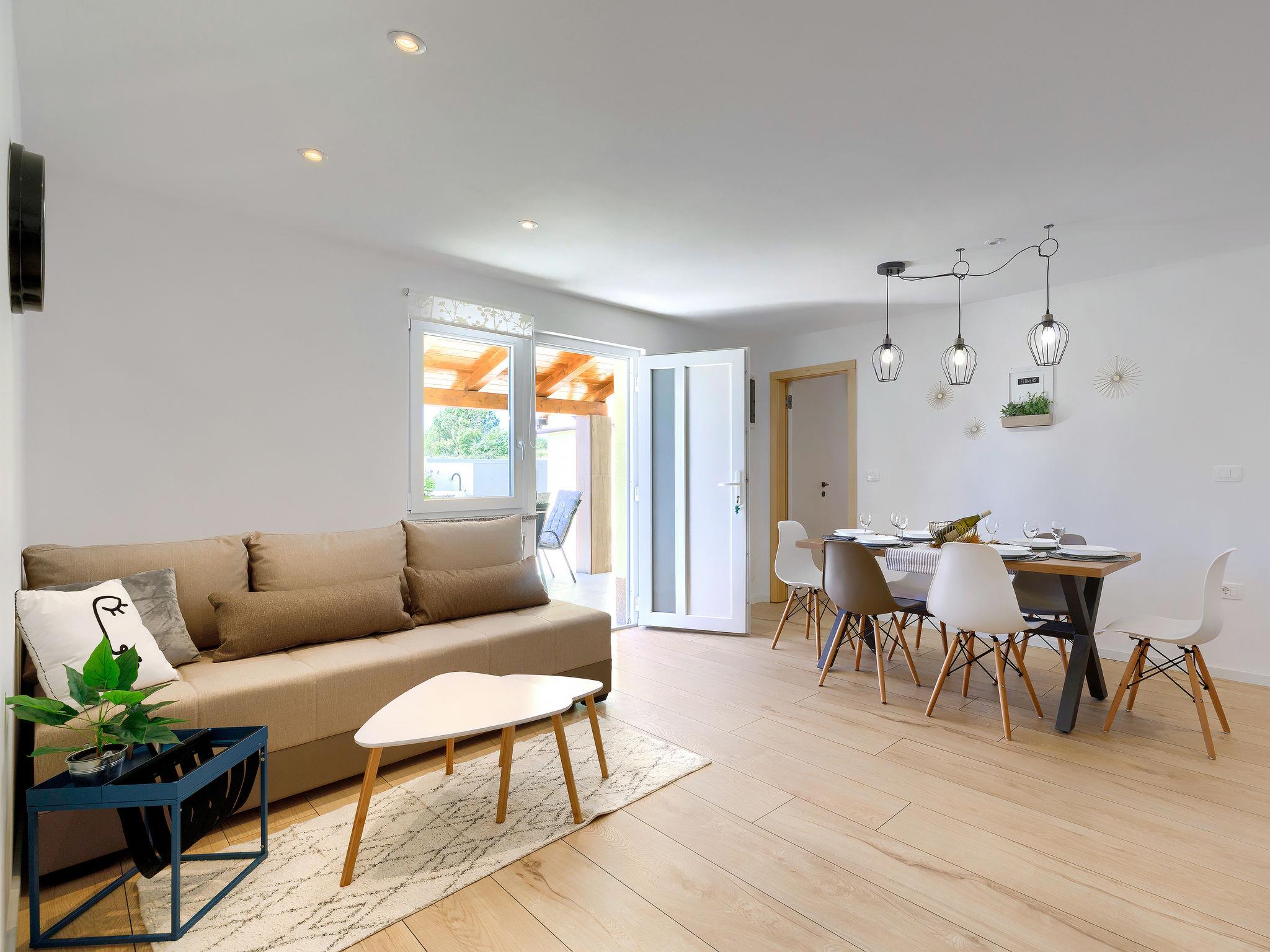 Štinjan 5 km from Pula: Semi-detached house "Laura". 3 km from the centre of Fažana, in a sunny position, 1 km from the sea, 1 km from the beach. Private: property 100 m2, small garden with flowers, swimming pool angular (6 x 4 m, depth 140 cm, seasonal availability: 01.Jan. - 31.Dec.) with internal staircase. Terrace (12 m2), garden furniture, pool maintenance by the owner/gardener. In the house: internet access, washing machine. Parking (for 2 cars) at the house on the premises. Supermarket 2.5 km, restaurant 1.5 km, bus stop 150 m, pebble beach 2 km. Marina 5 km, golf course (18 hole) 5 km, surf school 2 km, sailing school 2 km, tennis 2 km, riding stable 3 km, walking paths from the house 500 m, cycle lane 550 m. Nearby attractions: Amphitheater 5 km. Object suitable for 4 adults + 2 children. Please note: airfield 15 km from the property. Neighbourhood highly sensitive to noise. Quietness and good behaviour expected.