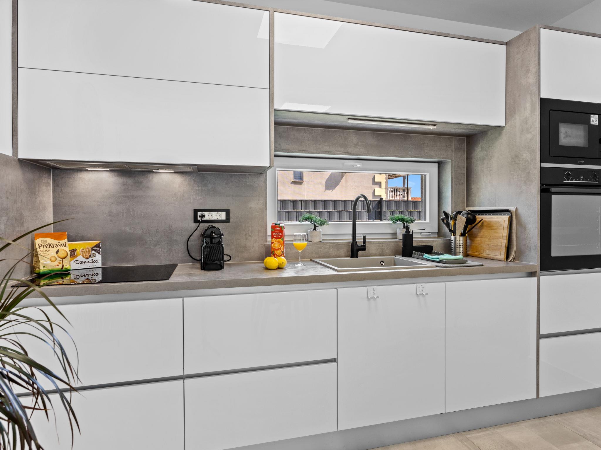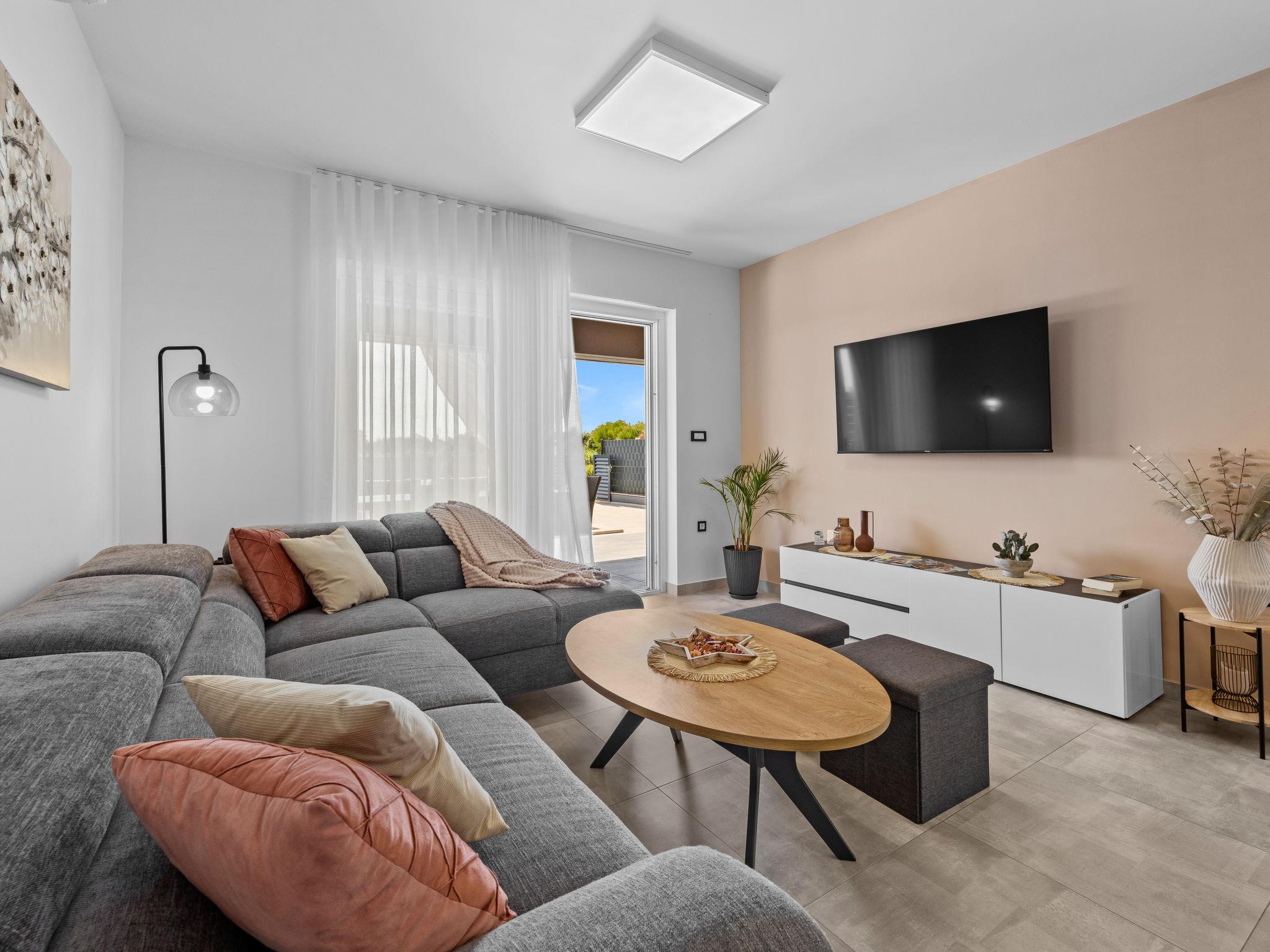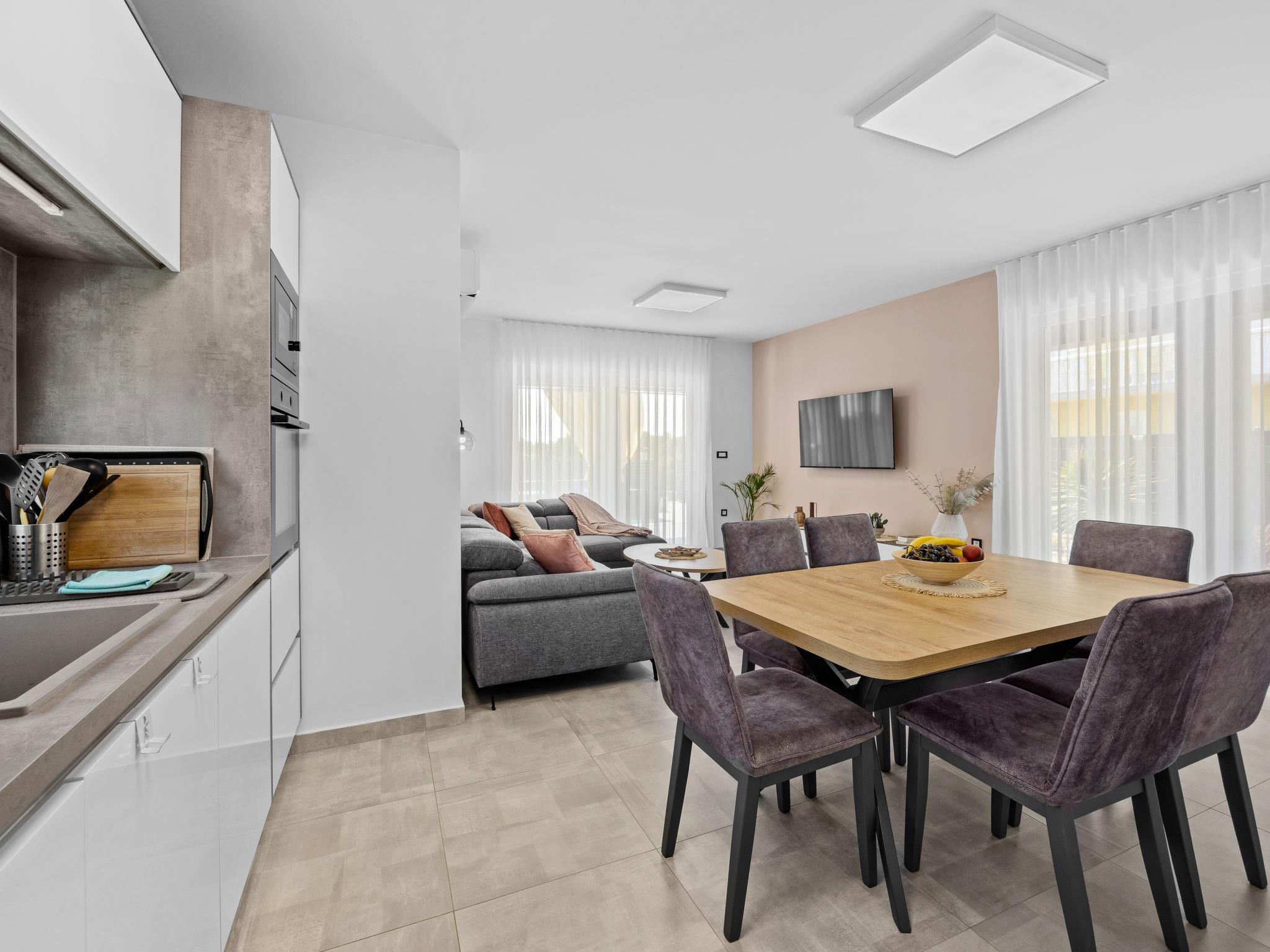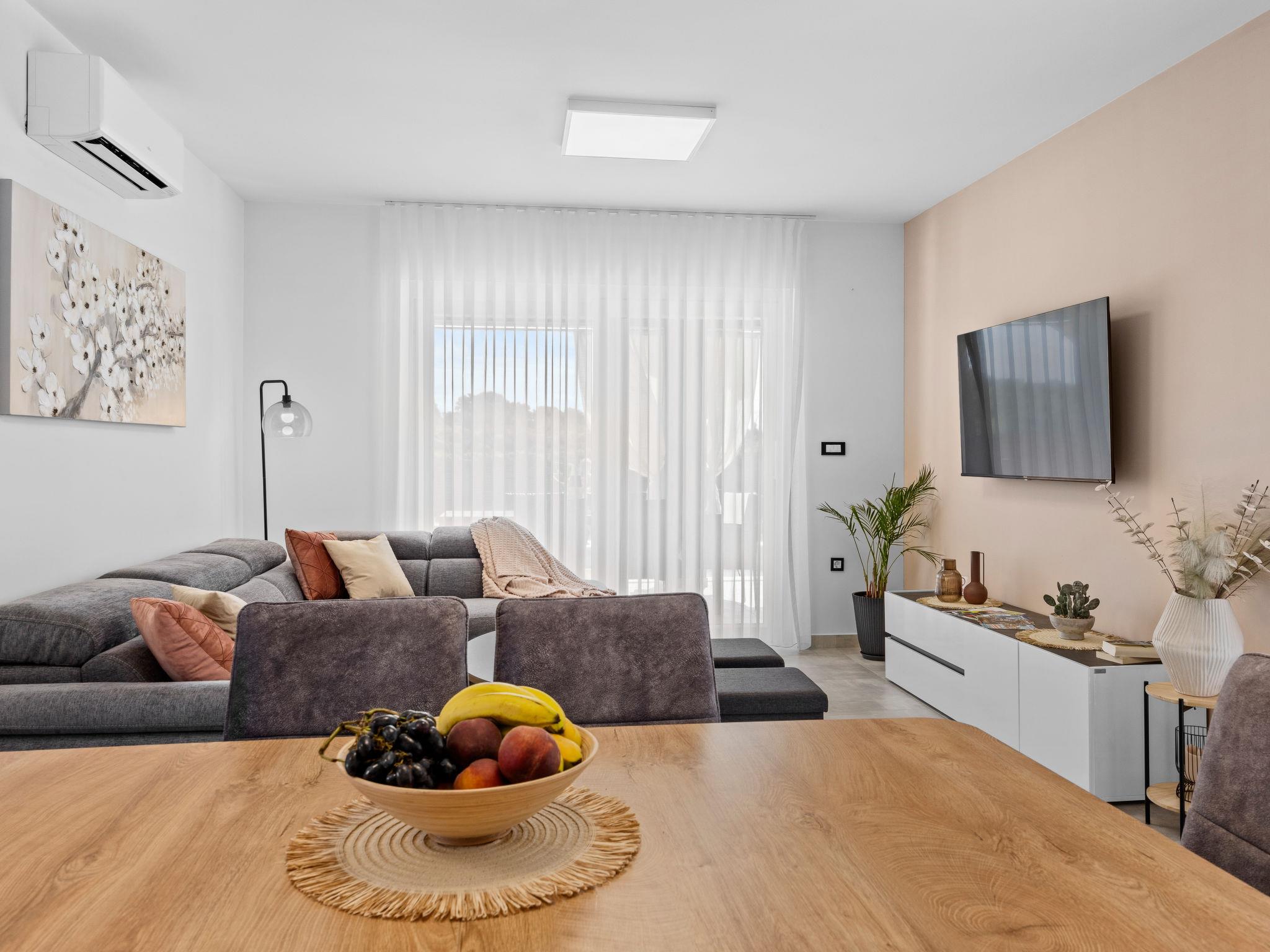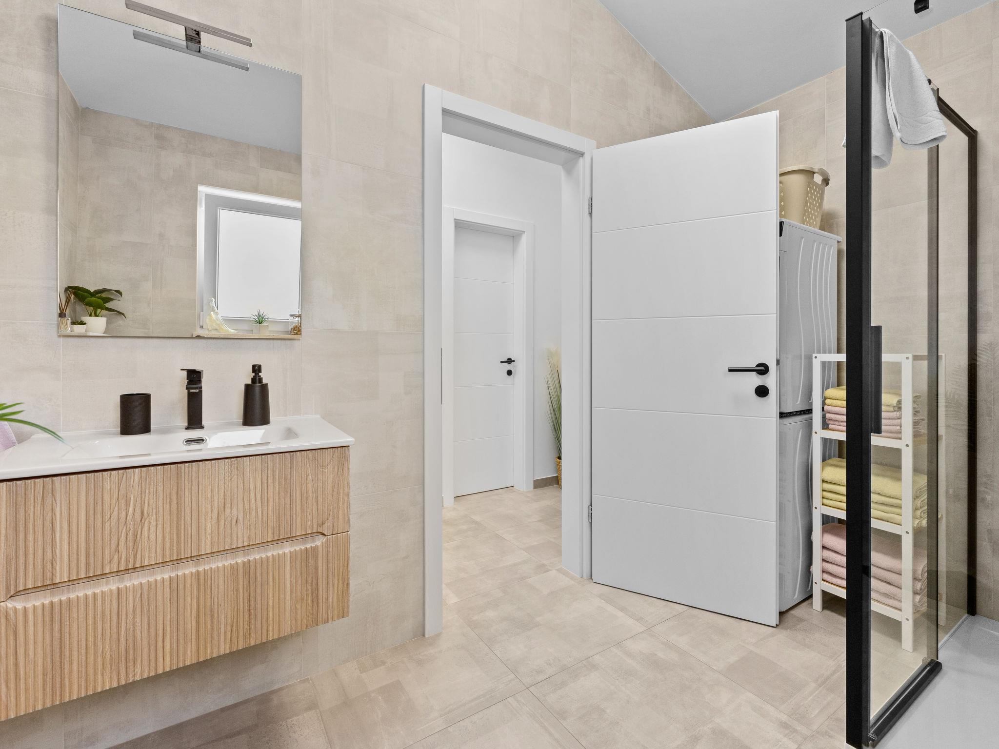 Štinjan 5 km from Pula: Modern, beautiful villa "S&V", 2 storeys, built in 2023. 3 km from the centre of Fažana, in a sunny position, 1.5 km from the sea, 1.5 km from the beach. Private: property 500 m2 (fenced), garden, swimming pool angular (32 m2, depth 140 cm, seasonal availability: 01.May. - 01.Oct.) with internal staircase and salt-electrolysis pool-cleaning system. Outdoor shower, table tennis. In the house: internet access, table football, washing machine, tumble dryer. Parking (for 3 cars) at the house on the premises. Shop 300 m, supermarket 2 km, restaurant, bus stop 700 m, pebble beach 1.5 km, rocky beach 1.5 km. Golf course (18 hole) 5 km, sailing school 5 km, tennis 500 m, riding stable 4 km, walking paths from the house 700 m, cycle lane 500 m. The owner does not accept any youth groups.