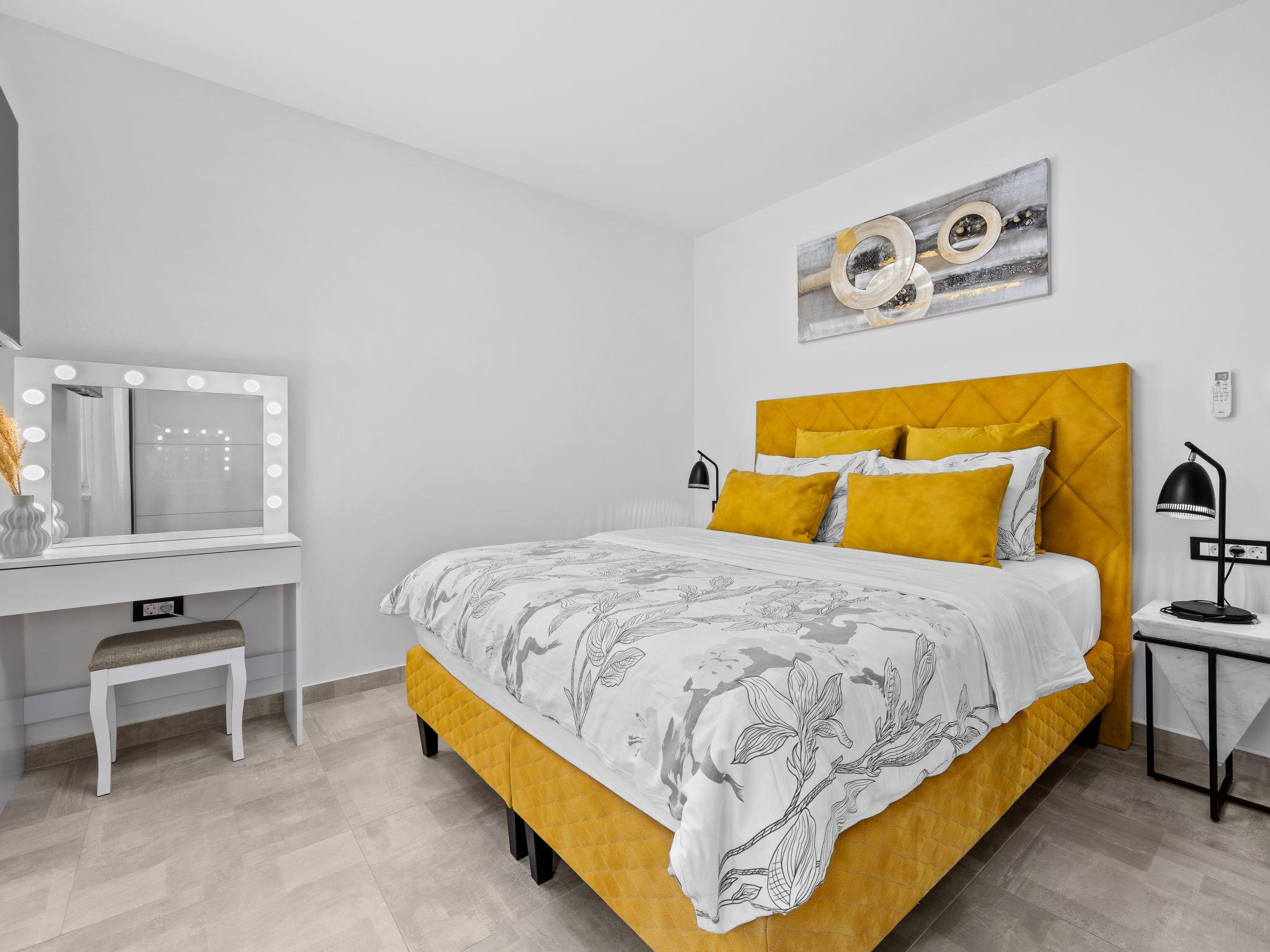 4-room villa 140 m2 on 2 levels. Beautiful and stylish furnishings: living/dining room with satellite TV (flat screen), air conditioning. Exit to the terrace, to the swimming pool. 1 room with 1 french bed (160 cm, length 200 cm), satellite TV (flat screen), air conditioning. Open kitchen (oven, dishwasher, 4 ceramic glass hob hotplates, toaster, kettle, microwave, freezer, electric coffee machine). Shower/WC. Upper floor: 2 rooms, each room with 1 french bed (160 cm, length 200 cm), satellite TV (flat screen), air conditioning. Shower/WC. Forced-air heating. Terrace 20 m2, roofed. Terrace furniture, barbecue (portable), deck chairs. View of the swimming pool. Facilities: children's high chair, baby cot. Internet (WiFi, free).