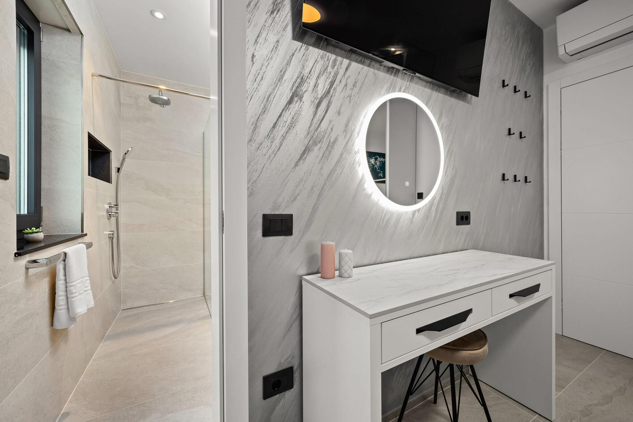 Dette dejlige hus er beliggende i et roligt område af Pula, og tilbyder en fredfyldt flugt med bekvemmeligheden ved at være tæt på forskellige attraktioner. Huset kan rumme op til 6 gæster, med to komfortable soveværelser og to badeværelser, hvilket gør det ideelt til en familie eller en gruppe venner. Det omfatter en rummelig stue, et fuldt udstyret køkken og en privat have, der kan prale af en swimmingpool, solterrasse og en overdækket terrasse med spiseplads og grill. For yderligere komfort er en barneseng og højstol til rådighed efter anmodning, og kæledyr er velkomne mod et tillægsgebyr. Beliggende kun få kilometer fra det historiske centrum af Pula, tilbyder denne ejendom nem adgang til byens gamle vartegn, såsom det romerske amfiteater, Augustus-templet og Sergius' triumfbue. Besøgende kan udforske områdets rige historie, herunder museer, gallerier og udstillinger. Den nærmeste strand er i Pjescana Uvala, hvor du kan nyde en tur til havet og udendørs, hvor du kan nyde en tur til havet og udendørs. Den fantastiske nationalpark Brijuni er også tilgængelige for dem, der ønsker at udforske områdets naturlige skønhed. Huset har gratis Wi-Fi, aircondition og et fuldt udstyret køkken til at imødekomme dine behov. Håndklæder og sengetøj leveres, med regelmæssige ændringer for at sikre et behageligt ophold. Huset har også gratis privat parkering på stedet, hvilket gør det nemt at komme og gå. Uanset om du ønsker at slappe af ved poolen, udforske den historiske by eller tage på en dagstur til de nærliggende øer, er dette hjem den perfekte base for din ferie.