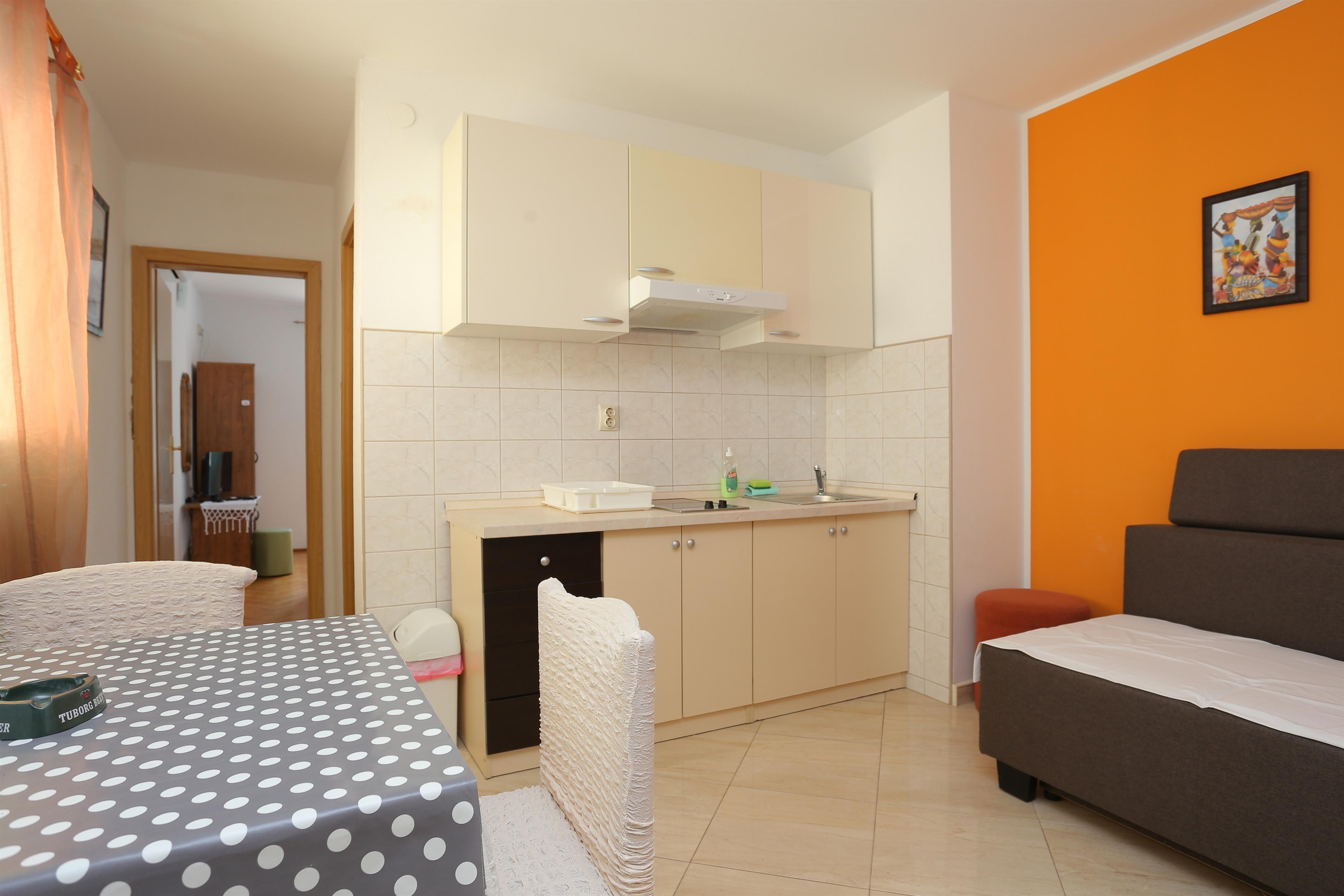 Apartment can accommodate 4 guests. Beds are situated in 1 sleeping rooms, within 29m2. Guests can use a private balcony to enjoy the warm summer evenings. The apartment offers the sea view. Food can be prepared using barbecue which is shared with other guests too.