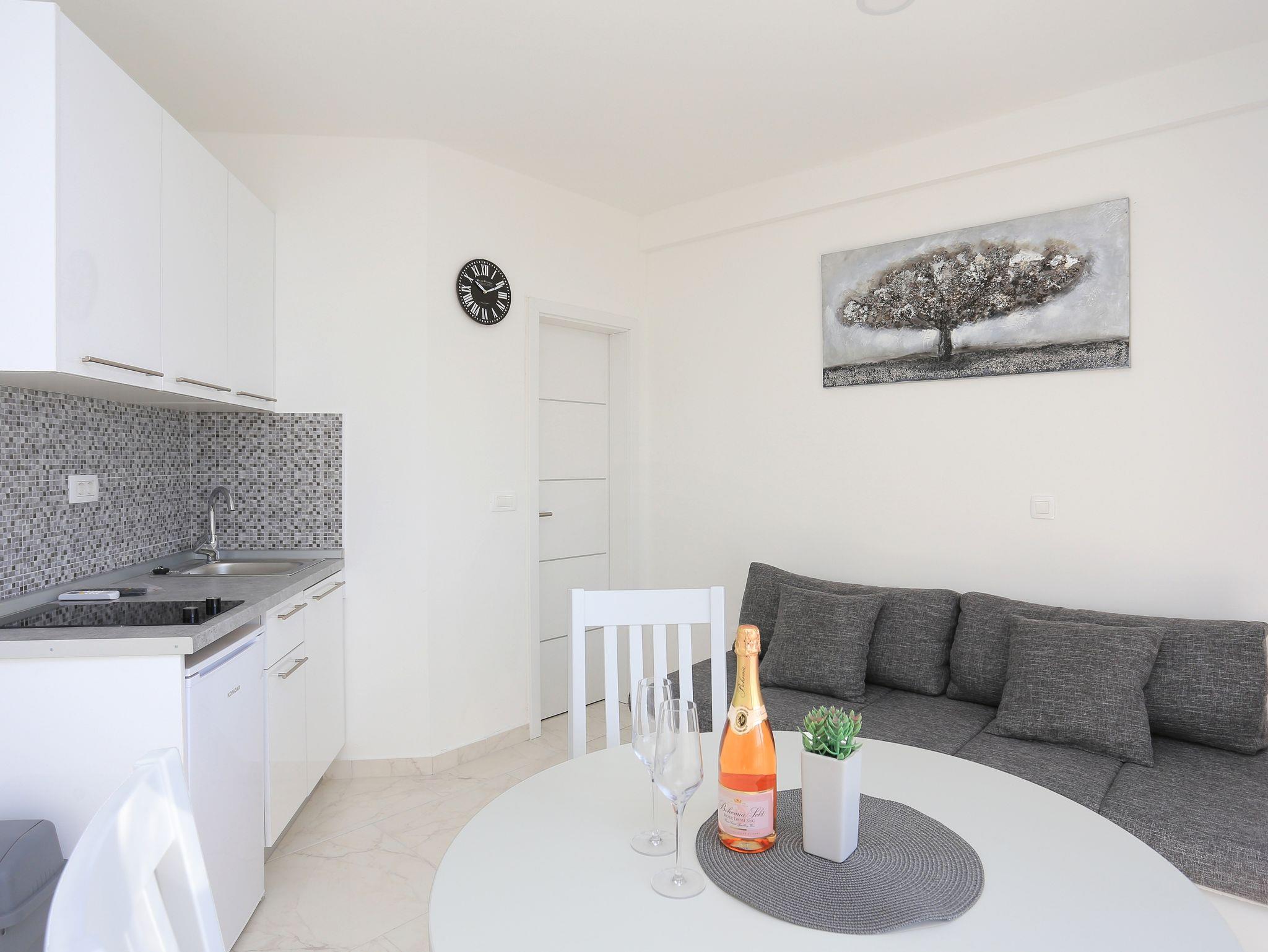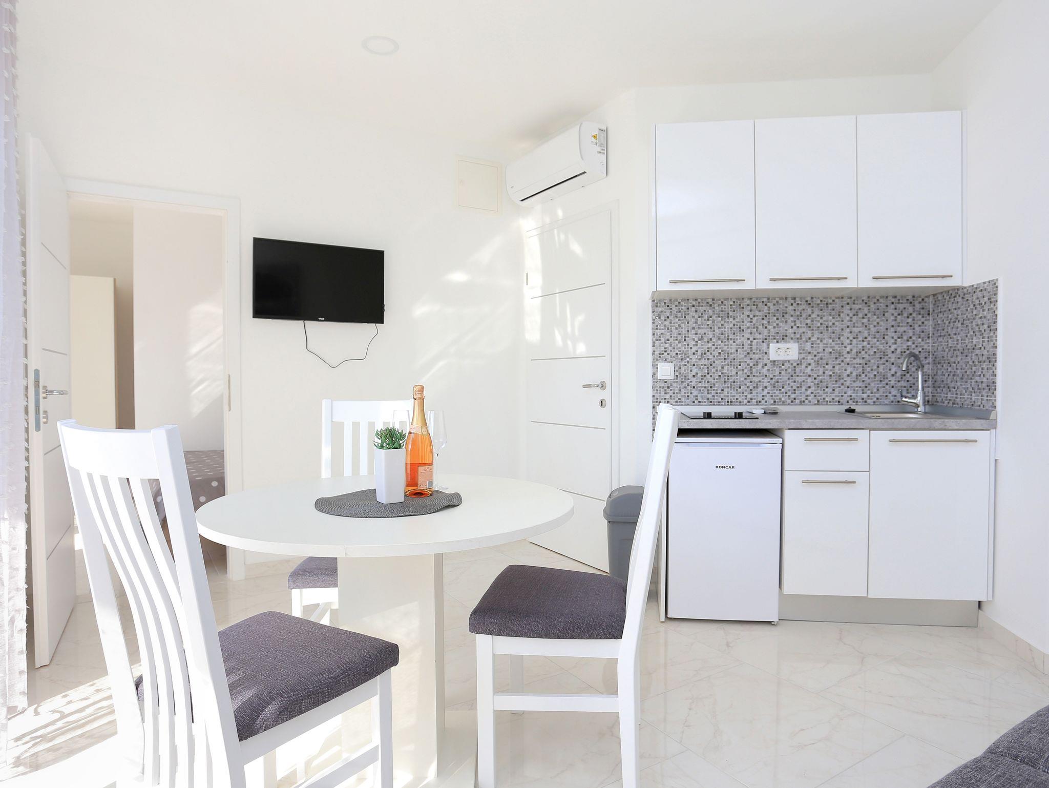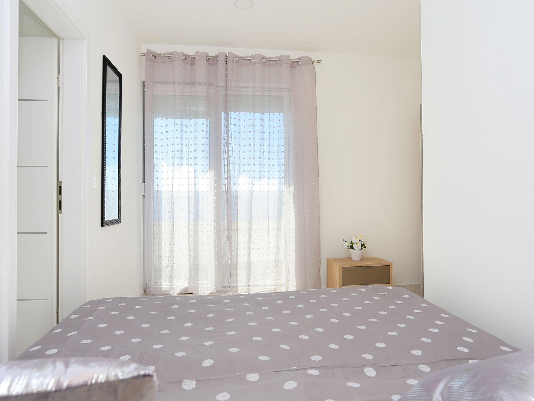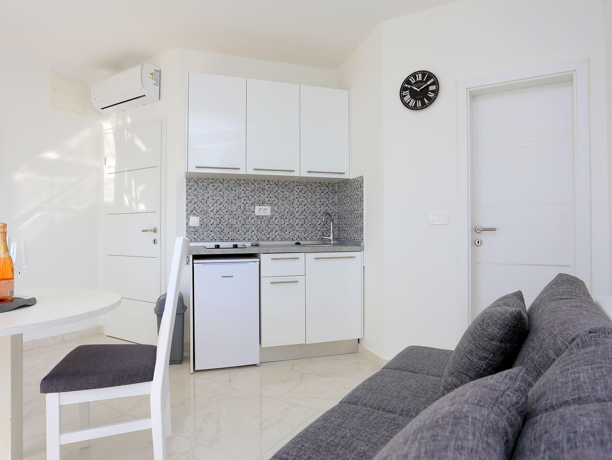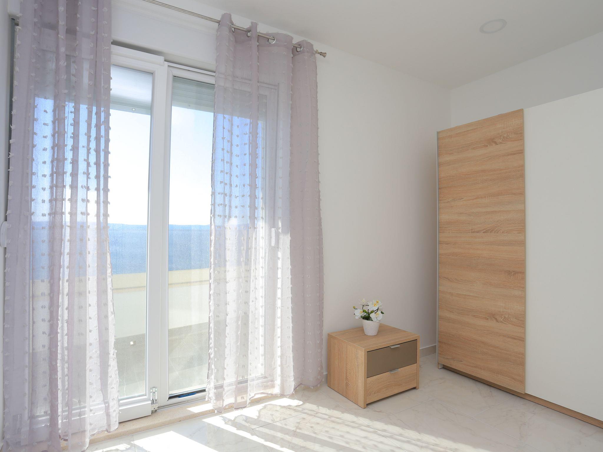 Ferienwohnung bietet Platz für 3 Gäste. Die Betten sind in Schlafzimmern, die es 1 gibt, und in Esszimmer, innerhalb einer Gesamtfläche von 29m2, angeordnet. Die Gäste haben eine eigene Terrasse zur Verfügung, auf der sie in warmen Sommernächten genießen können. Das Apartment bietet Meerblick. Während ihres Aufenthalts können Gäste das gemeinsam zur Nutzung stehende Schwimmbad benutzen. IM PREIS INBEGRIFFEN: Kurtaxe, Endreinigung, Klimatisierung, Pool, Parkplatz, Internet, Bügeleisen, Bügelbrett, Föhn. VERBINDLICHE ZUSÄTZLICHE KOSTEN: Aufzahlung für Kurzaufenthalte (prozentualer Zuschlag pro Nächtigungsanzahl: 30% - 1, 20% - 2, 10% - 3). Die Verfügbarkeit zusätzlicher Dienstleistungen in Ihrem reservierten Termin und die Preise derselben (falls nicht aufgeführt) müssen im Voraus überprüft werden. Zusätzliche Dienstleistungen die in der Zahlungsaufforderung nicht aufgeführt sind werden direkt beim Vermieter bezahlt, angenommen der Gast nutzt auch diese. Ermäßigung auf den Grundpreis: Gratistag 21=19 (bei einem Aufenthalt von 21 Tagen oder mehr erhalten Sie 2 Gratistage für den Aufenthalt bis 31.12.26).
