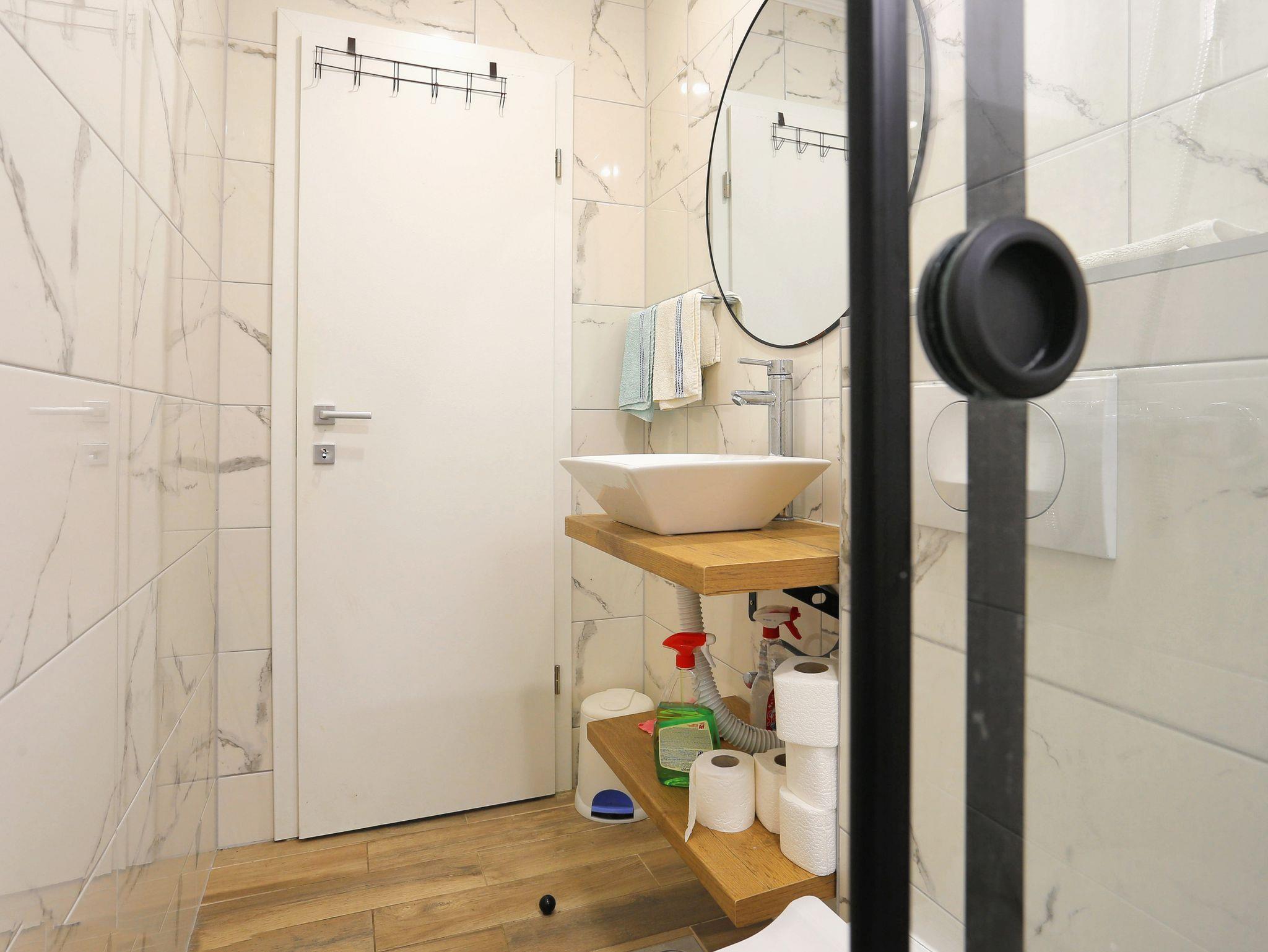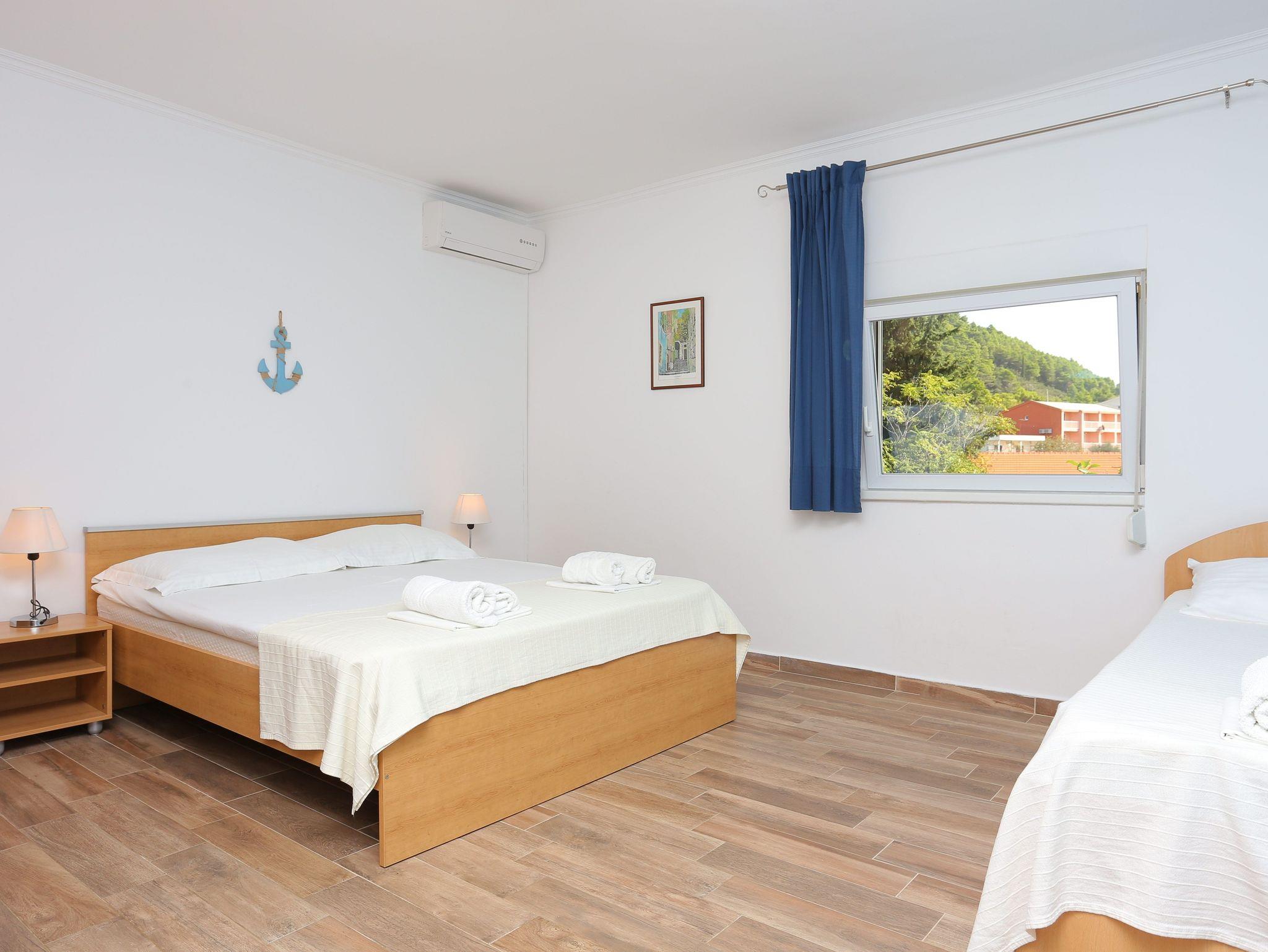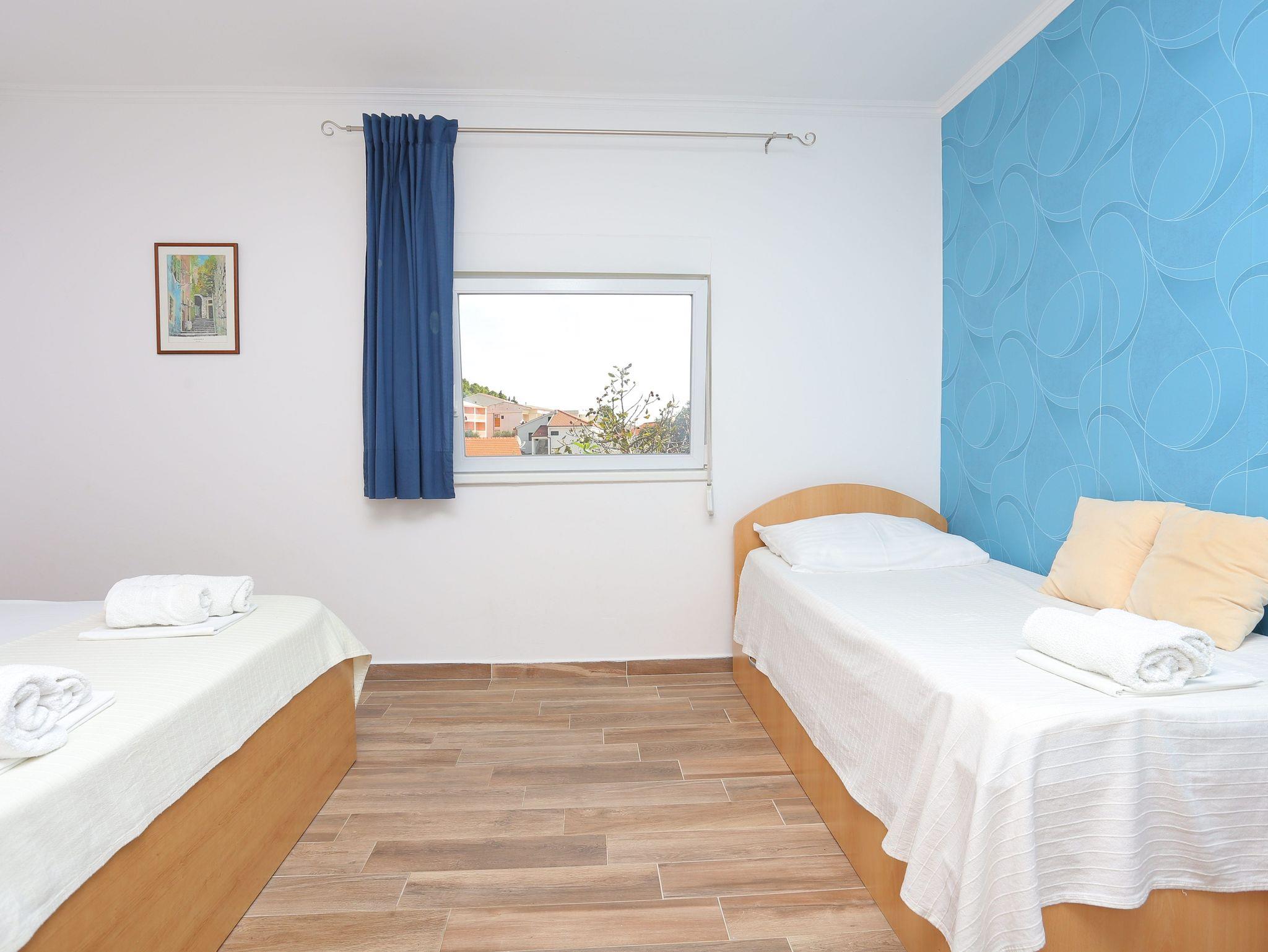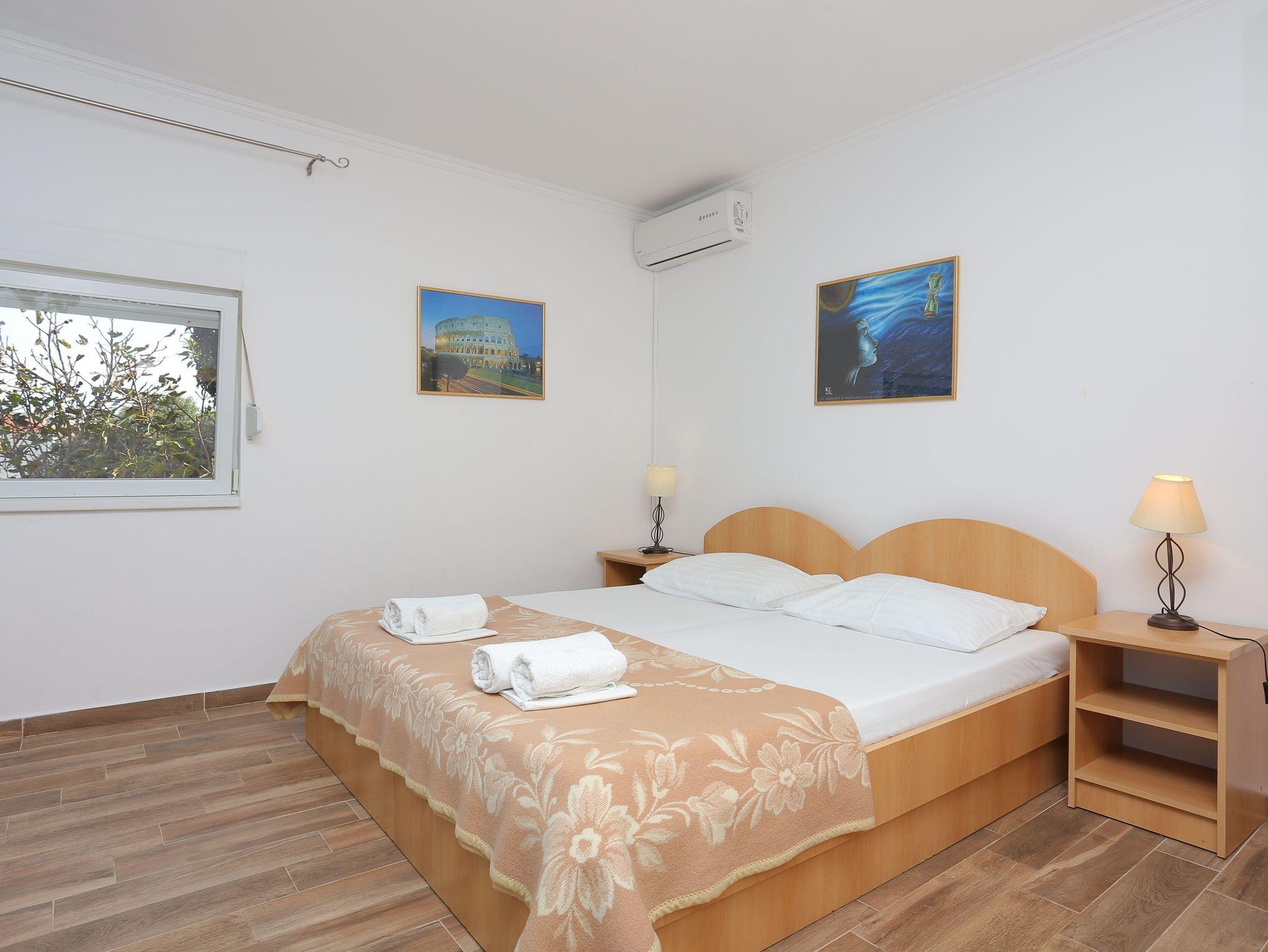 Ferienwohnung bietet Platz für 8 Gäste. Die Betten sind in Schlafzimmern, die es 2 gibt, innerhalb einer Gesamtfläche von 57m2, angeordnet. Die Gäste haben eine eigene Terrasse zur Verfügung, auf der sie in warmen Sommernächten genießen können. Für vollen Genuss und Entspannung gibt es einen privaten Grill für Gäste dieser Unterkunft. In der Unterkunftseinheit besteht die Möglichkeit des Mitbringens von Haustieren gegen Aufpreis. IM PREIS INBEGRIFFEN: Kurtaxe, Endreinigung, Klimatisierung, Parkplatz, Internet, Wäschewaschen, Kinderbett, Bügeleisen, Föhn, tragbarer Grill. VERBINDLICHE ZUSÄTZLICHE KOSTEN: Aufzahlung für Kurzaufenthalte (prozentualer Zuschlag pro Nächtigungsanzahl: 30% - 1, 20% - 2, 10% - 3). UNVERBINDLICHE ZUSÄTZLICHE KOSTEN: Haustiere (10,00 € pro Nacht). Die Verfügbarkeit zusätzlicher Dienstleistungen in Ihrem reservierten Termin und die Preise derselben (falls nicht aufgeführt) müssen im Voraus überprüft werden. Zusätzliche Dienstleistungen die in der Zahlungsaufforderung nicht aufgeführt sind werden direkt beim Vermieter bezahlt, angenommen der Gast nutzt auch diese.