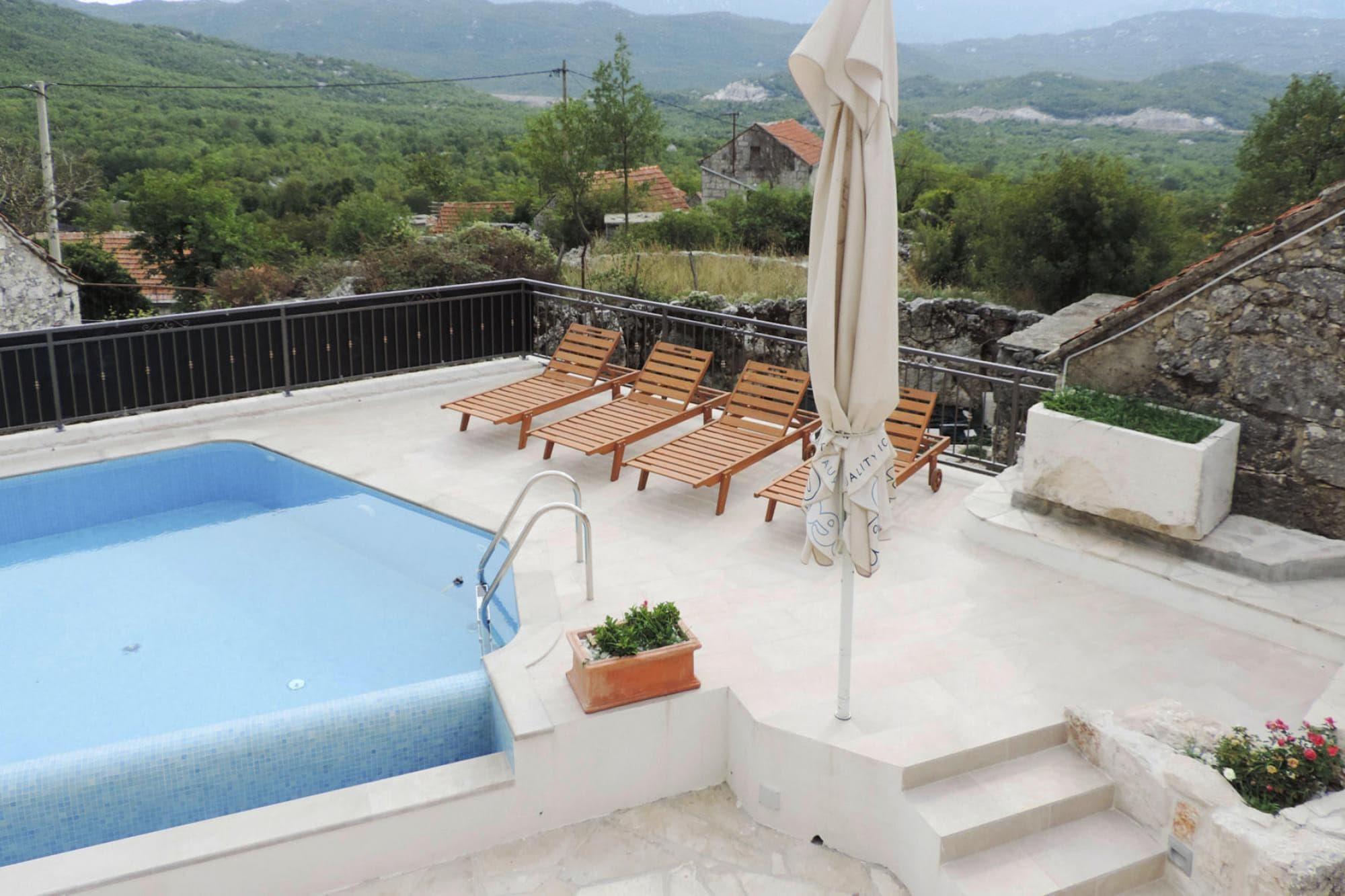 Gammelt stenhus i rustik, hyggelig stil med pejs og privat udendørs pool. Huset ligger i en traditionel landsby i Makarskas bagland, omkring 27 km fra byen Makarska. Dit sommerhus er 70 kvadratmeter stort og har faciliteter som WiFi, opvaskemaskine og vaskemaskine. Foran huset ligger en swimmingpool med liggestole, hvor man kan nyde udsigten over Biokovo naturreservat og den smukke solnedgang. Udearealet har også en terrasse med havemøbler og en pavillon med siddepladser. For de yngre gæster er der et legehus med rutsjebane og for de ældre er der en vinkælder med vores egne vine (mod betaling) og et lille grillhus med åben grill. Den turkise Makarska Riviera og det imponerende Biokovo-bjerg bagved udgør en af de smukkeste ferieomgivelser, man kan forestille sig. Makarska kaldes ikke kun hele kystområdet, men også den største by her. Værtshusene og restauranterne, værtshusene og vinkældrene samt de talrige sports- og kulturtilbud samt arrangementer som fiskeaftener og koncerter sørger for en afvekslende ferie. Detaljer: Forbrugsbaserede energiomkostninger, sengelinned, håndklæder, slutrengøring, turistskat, WiFi registreringsgebyr Aktiviteter i området: Biokovo-bjergene tårner sig imponerende op over Rivieraen og tiltrækker både vandrere og mountainbikere til imponerende naturudflugter. Hvis du leder efter endnu mere spænding, finder du det hos Omis ved Cetina-floden. Under raftingture og kanosafarier vil du med garanti få sjove og muntre indtryk.Hvis du vil udforske floden og Cetina-dalen fra luften, anbefaler vi den spektakulære Omis zipline. Godt to kilometers "wire" er spændt ud. over Cetina-dalen, langs ziplinen kan du nyde en betagende udsigt ledsaget af nogle adrenalinsus op til 65 km