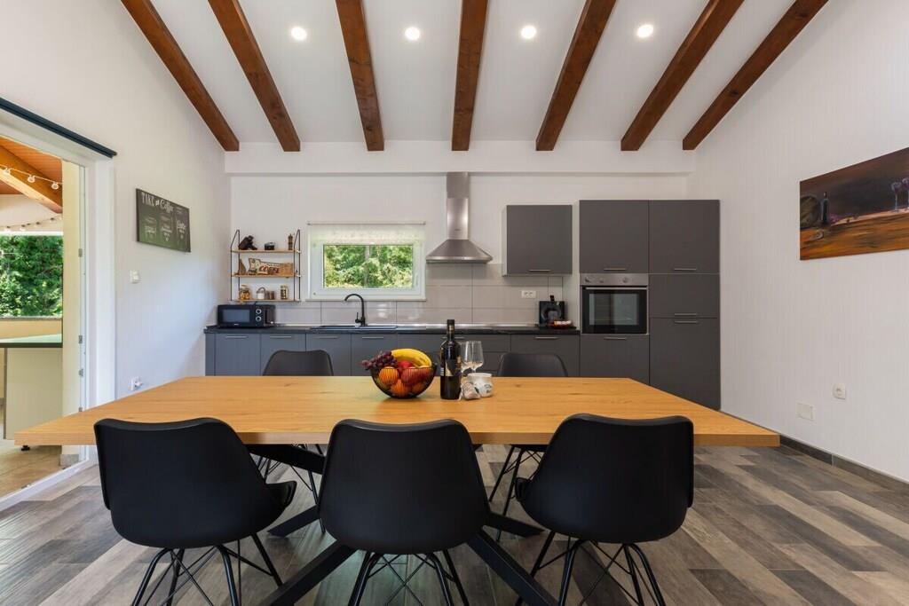 Velkommen til Istrien, Kroatien! Villa Ari tilbyder 100 m² boligareal til op til 6 gæster, inklusive terrasse, pool og stor indhegnet have. Huset er fuldt udstyret til en perfekt og afslappende ferie på landet, men alligevel tæt på havet. Det har 3 soveværelser, 2 badeværelser, en rummelig opholdsstue med køkken og en overdækket terrasse med et udendørs køkken. Huset er ideelt for familier med børn eller små vennegrupper.