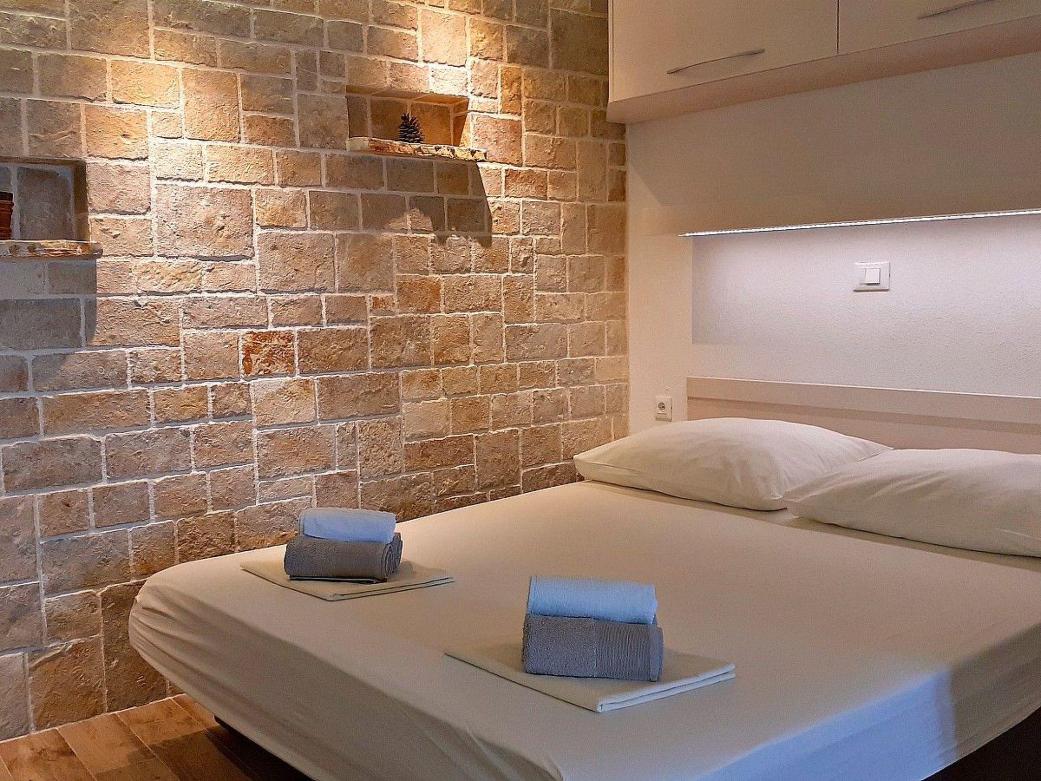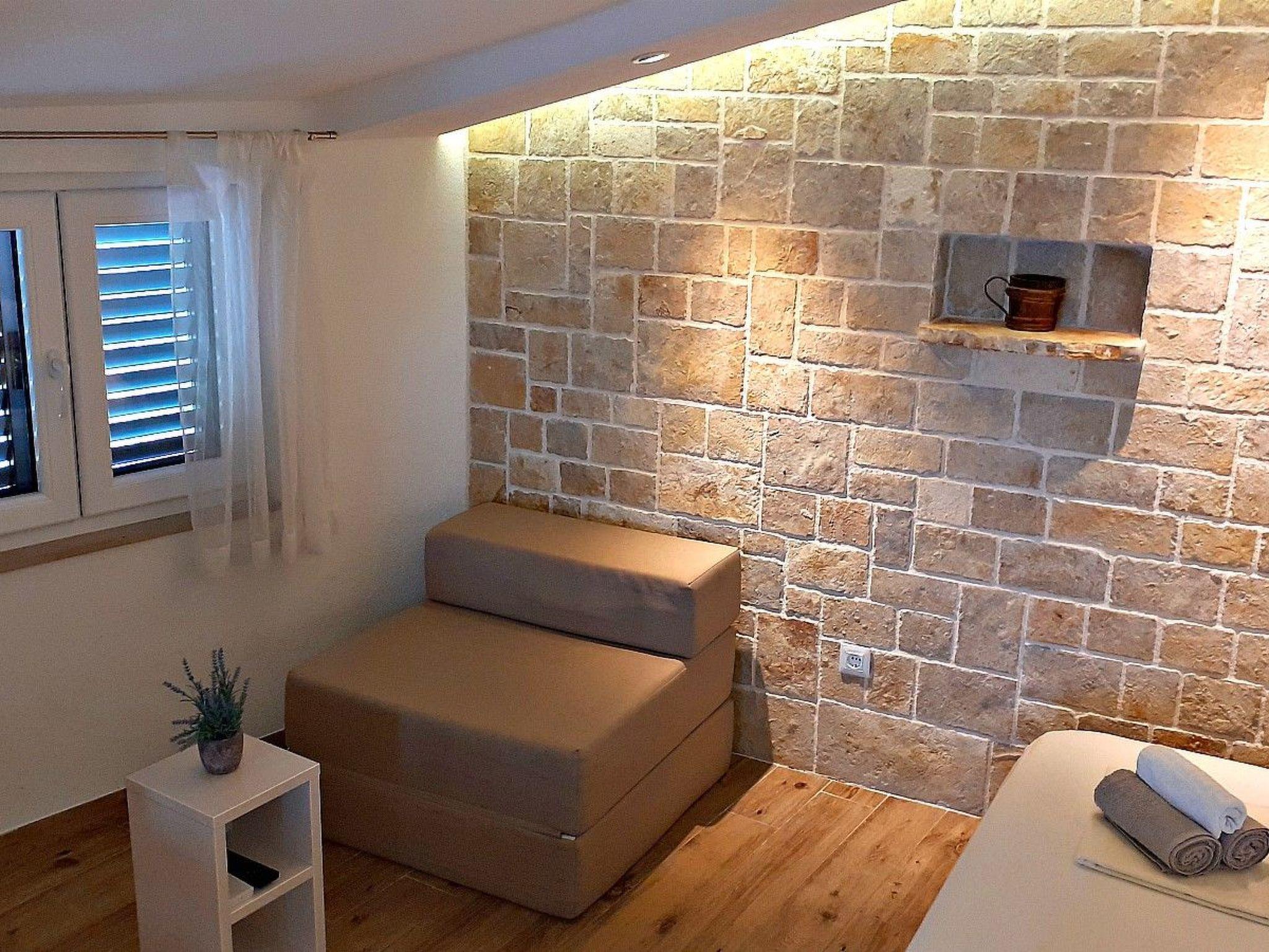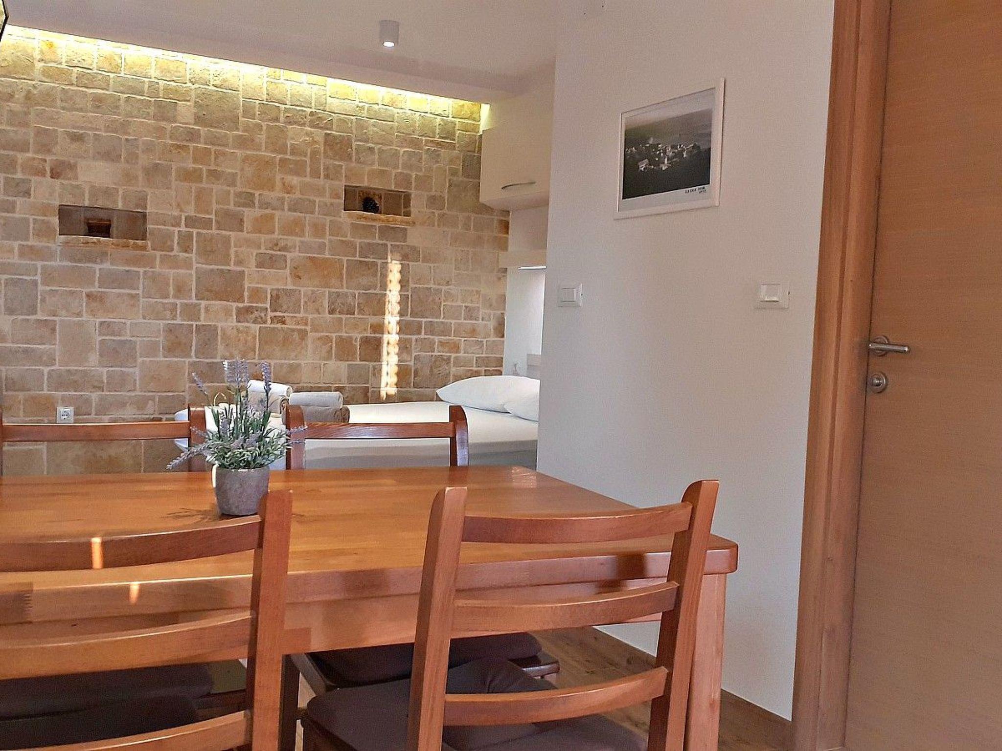 The deluxe studio is on the second floor of the stone house Bonaca, suitable for 2-3 people, with a double bed and a sofa bed for one person. It has a kitchen, a dining space, a bathroom with a bath, Wi-Fi, satellite TV and air conditioning.
