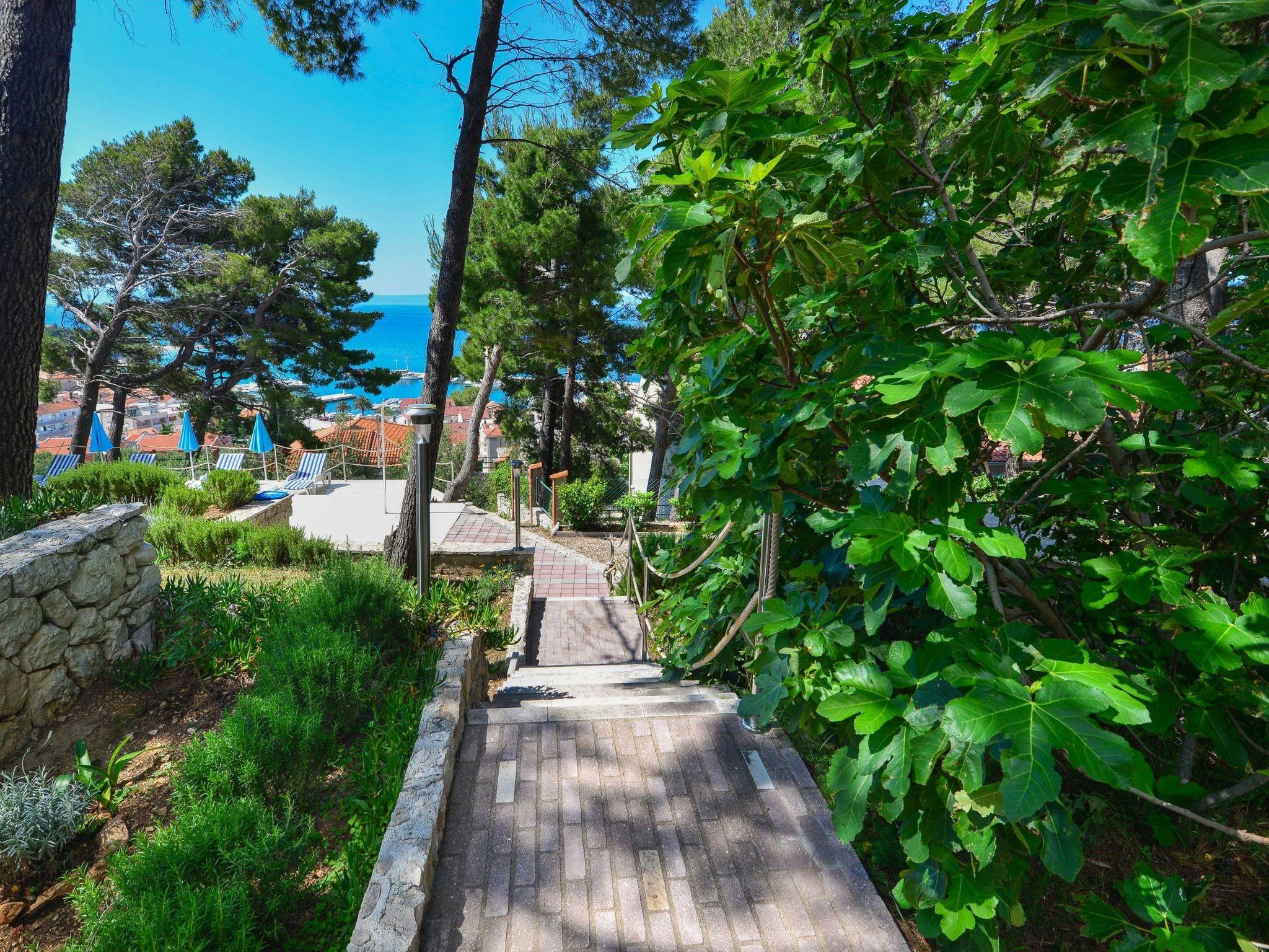 A sea view between pine trees – the comfortable house is situated right above the well-known seaside town Baska Voda. A site of 3000m2 ensures peace and quiet, despite the proximity to town, as well as a picturesque view of the Croatian Adriatic.