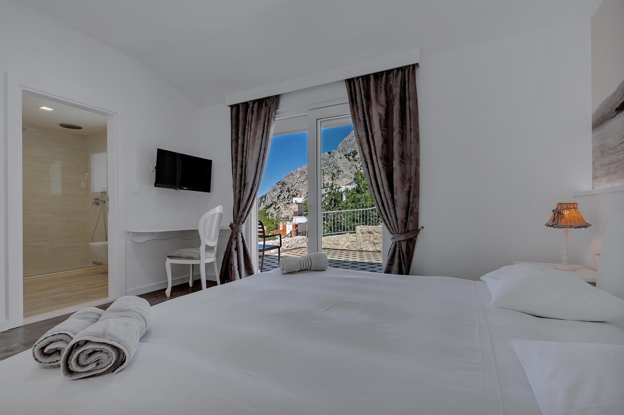 Når festivalplanerne strækker sig ud over solnedgang, og gruppesnakken aldrig rigtig falder til ro, sætter Villa Prestige den rette scene for det hele. Beliggende over Baška Vodas kystsvæven, med Makarska Riviera, der udfolder sig i nærheden, og Biokovo-bjerget, der rejser sig bag dig, er denne 450 m² store villa i tre niveauer til 10 gæster bygget til momentum, omgruppering og livlige aftener, der gøres rigtigt. Koldeplanen fungerer som din base før kampen - rustik taverna-spiseplads, fuldt udstyret køkken, gæsteværelse med eget badeværelse, separat toilet og direkte adgang til middelhavshaven og grillzonen. Én niveau oppe åbner villaen ind i sit sociale hjerte - en stor stue med rigeligt med siddepladser, et spisebord, et andet fuldt udstyret køkken plus en opvarmet privat pool, massagedyser, udendørs bruser og panoramaudsigt over havet. Et fitnessrum, sauna og spa-badeværelse holder balancen mellem høj ydelse og hurtig restitution. Øverste etage forbliver udelukkende til nulstillingstilstand. Fire soveværelser med havudsigt, alle med eget badeværelse og balkoner eller terrasser, holder privatlivet intakt, selv med et fuldt hus. Hydromassage-badekar, bruseniche og aircondition gør morgenerne overskuelige efter sene aftener. Restauranter og barer ligger inden for gåafstand, mens nattelivet, strandklubberne og festivalenergien i Makarska og den bredere Riviera er inden for rækkevidde. Når gruppen har brug for en fuldskala byforvandling, tilbyder Split tagterrassebarer, klubber og færgeafgange ved solopgang. Villa Prestige er skabt til grupper, der ønsker en luksuriøs base med spa-afslapning, fuldt socialt rum, private poolaftener og hurtig adgang til festivalpublikummet - uden at ofre plads, privatliv eller komfort efter festen.