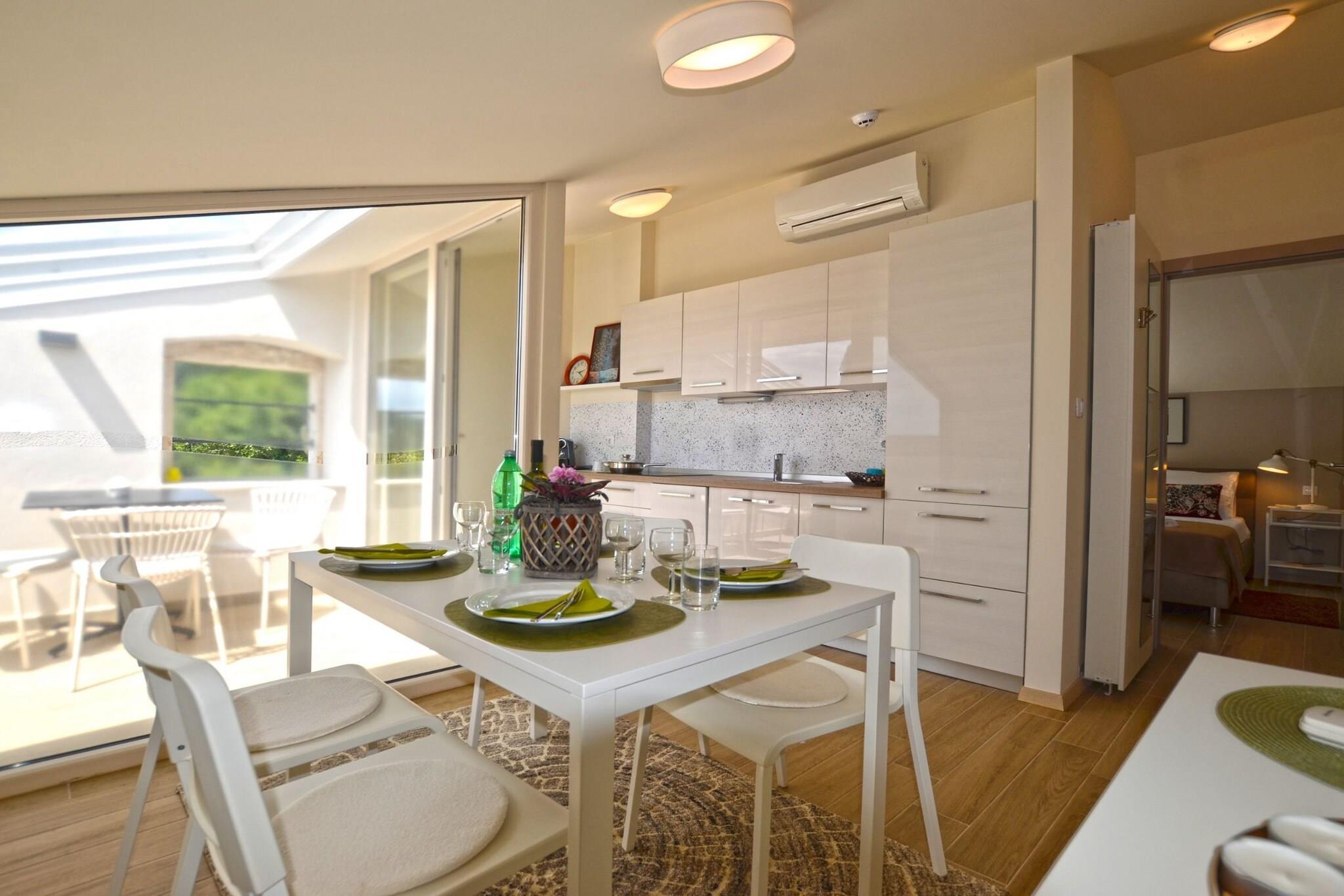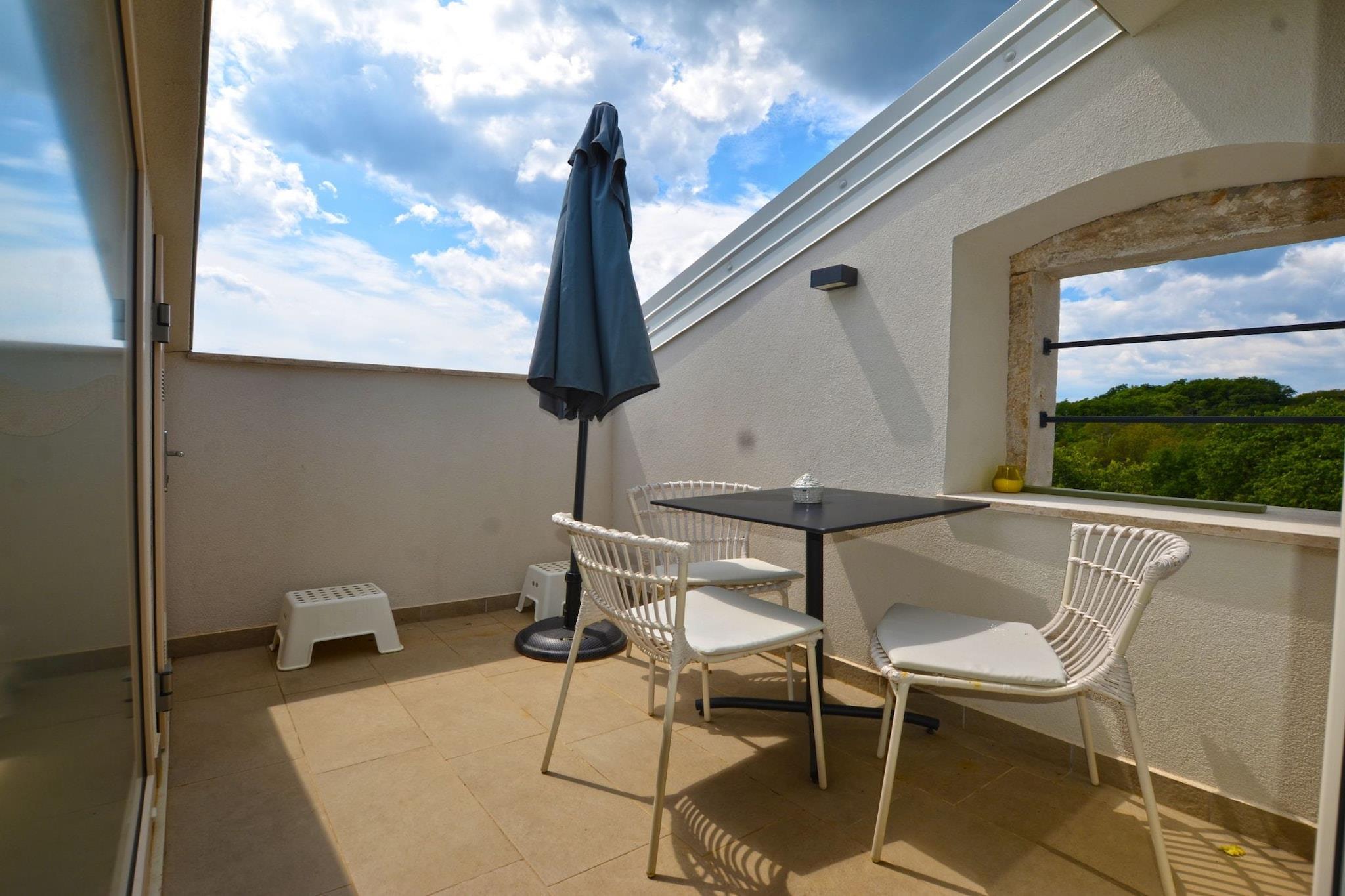 The Tranquil Getaway with Shared Pool in Bale, Istria, Croatia, offers a serene escape in a picturesque and charming town. This accommodation features modern, comfortable interiors and access to a shared pool, making it ideal for relaxation under the Istrian sun. Surrounded by lush greenery and a peaceful environment, guests can enjoy the tranquility of nature while being within reach of local attractions. Its convenient location allows easy exploration of Bale’s historic streets, nearby beaches, and popular Istrian destinations like Rovinj and Pula. Perfect for couples, families, or solo travelers, this getaway promises a blend of comfort, relaxation, and authentic Istrian charm. Note: Private parking is available, reservation is not required. Wi-Fi is available throughout the property. Pets are not allowed. This one-bedroom can accommodate up to five guests. It features an SAT/flat-screen TV and is combined with a living room seating area, sofa, and kitchen. The private bathroom is equipped with a shower and toilet. Thanks to its excellent location, everything you'll need for your vacation is just a short walk away from the property. Grocery stores, cafes, restaurants—everything is within a 5 km radius. The beach is 15 km away from the property. The airport is 30 km away from the property.