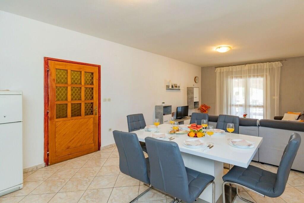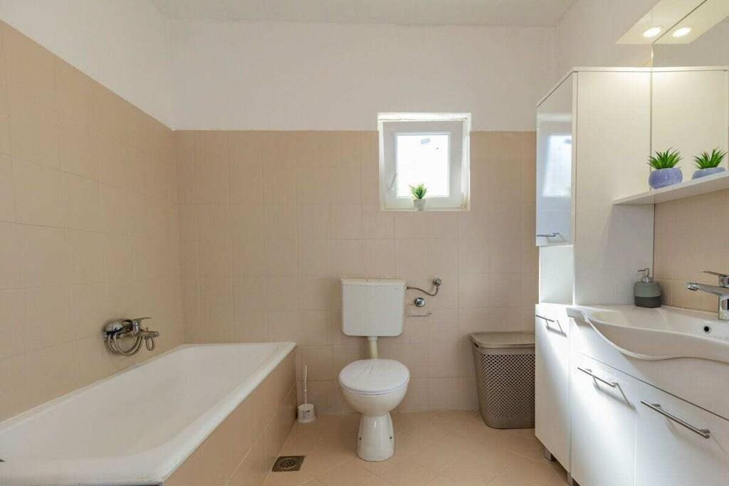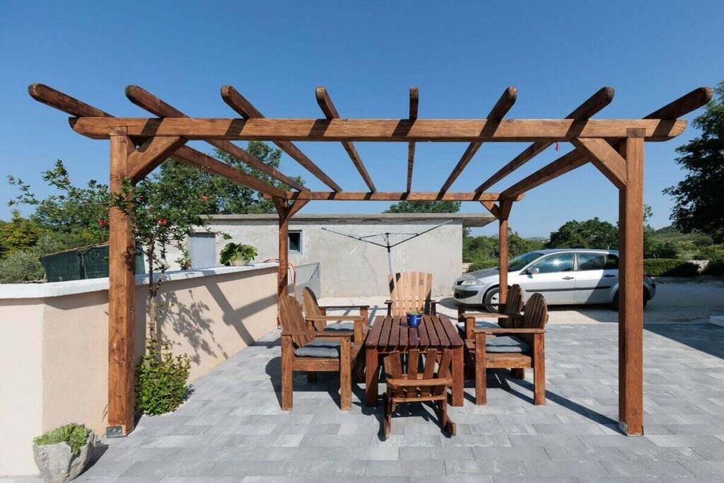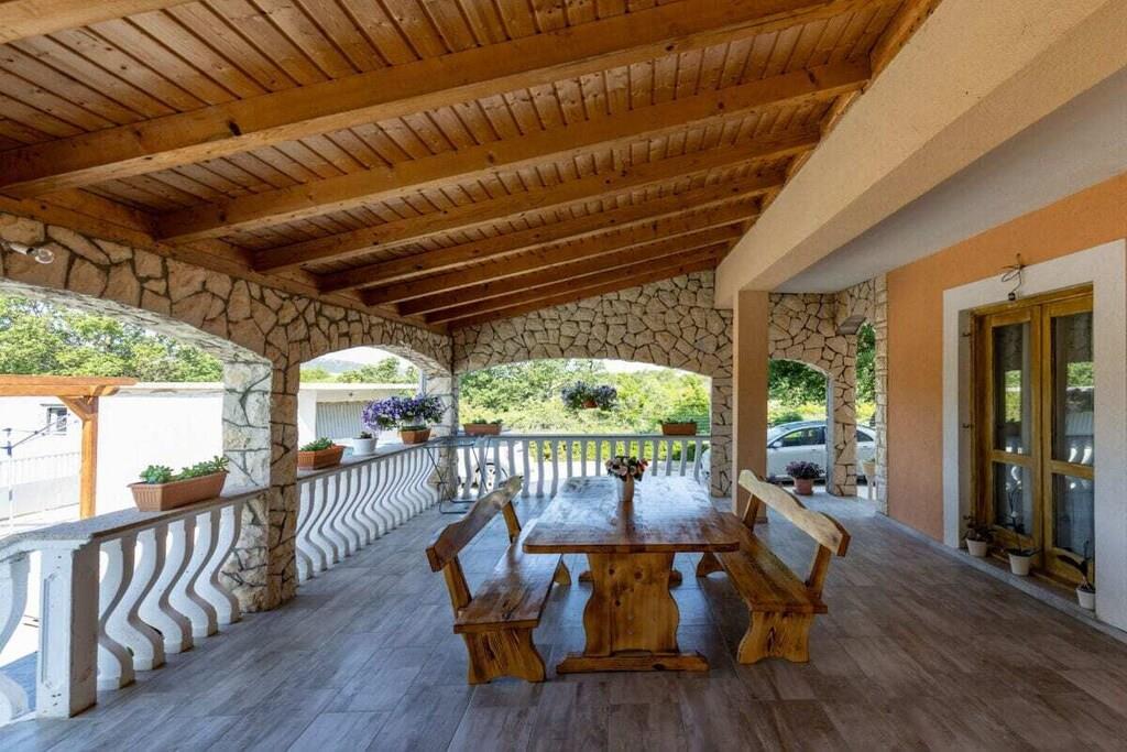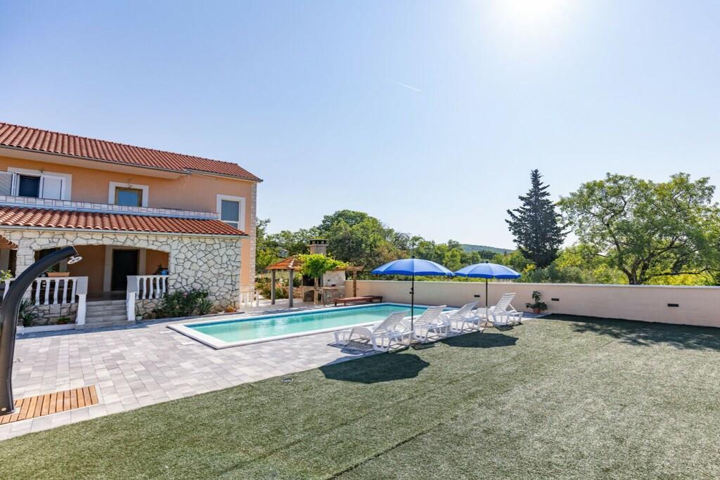 Obwohl die Hauseigentümer im selben Haus wohnen, sind die Eingänge komplett getrennt – jeweils auf einer gegenüberliegenden Seite des Hauses. Dies bietet das Beste aus beiden Welten – die Privatsphäre eines Teils eines Hauses und die Nähe der Hausbesitzer, die da sind, um alle Ihre Bedürfnisse zu erfüllen. Das Haus liegt auf einem umzäunten Grundstück und sein Außenbereich wird Sie begeistern. Ein Poolbereich mit Sonnenschirmen und Sonnenliegen, ein rustikaler Grillplatz, Kinderspielplatz und eine überdachte, von den Hausbesitzern handgefertigte Holzmöbelterrasse. Aber ein Raum wird Sie dazu bringen, nie wieder wegzugehen – eine geräumige überdachte Terrasse mit vollem Schatten, eine kleine Sommerküche und ein großer Ess- und Sitzbereich – alles zusammen bietet einen Raum, in dem Sie jeden Teil des Tages wirklich genießen können. Der Innenraum verfügt über einen offenen Wohnbereich mit Küche, Esszimmer und Wohnzimmer in einem Raum. Drei Schlafzimmer mit Doppelbetten bieten Schlafplätze für 6 Gäste und ein Schlafsofa im Wohnzimmer bietet Platz für 2 weitere Gäste. Zwei Badezimmer, eines mit Badewanne und eines mit Dusche, stehen zur Verfügung. Die Klimaanlage ist strategisch im Flur platziert und besteht aus 2 Einheiten, die für die Kühlung der gesamten Etage sorgen. Das Haus verfügt über WLAN-Abdeckung und 4 Parkplätze zur Verfügung. Haustiere sind nicht erlaubt.