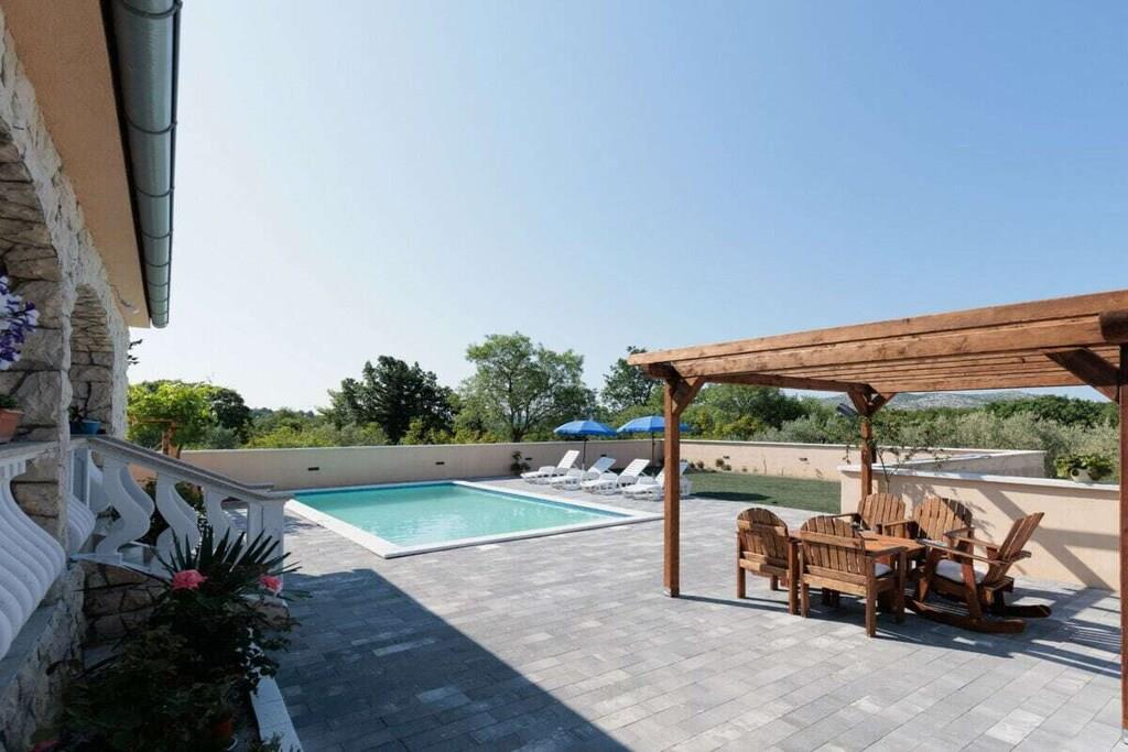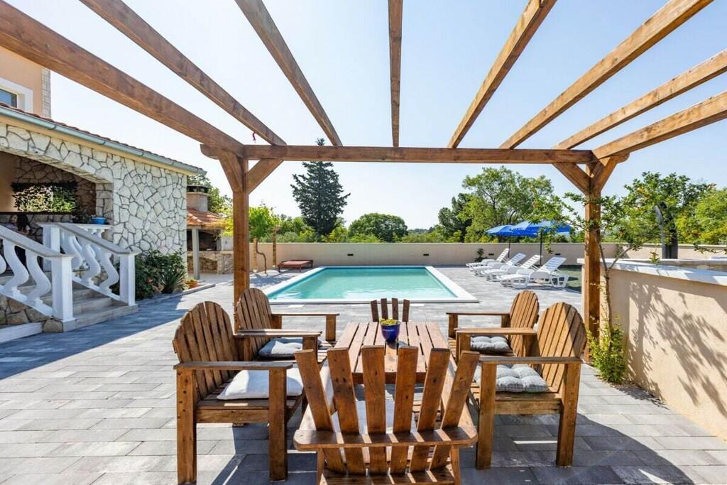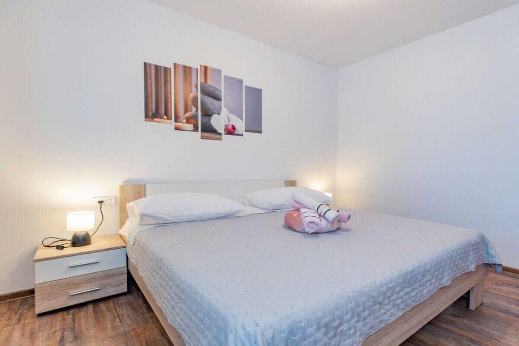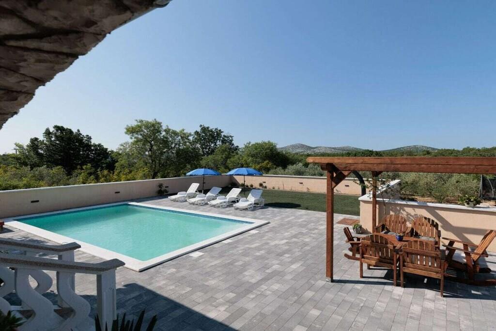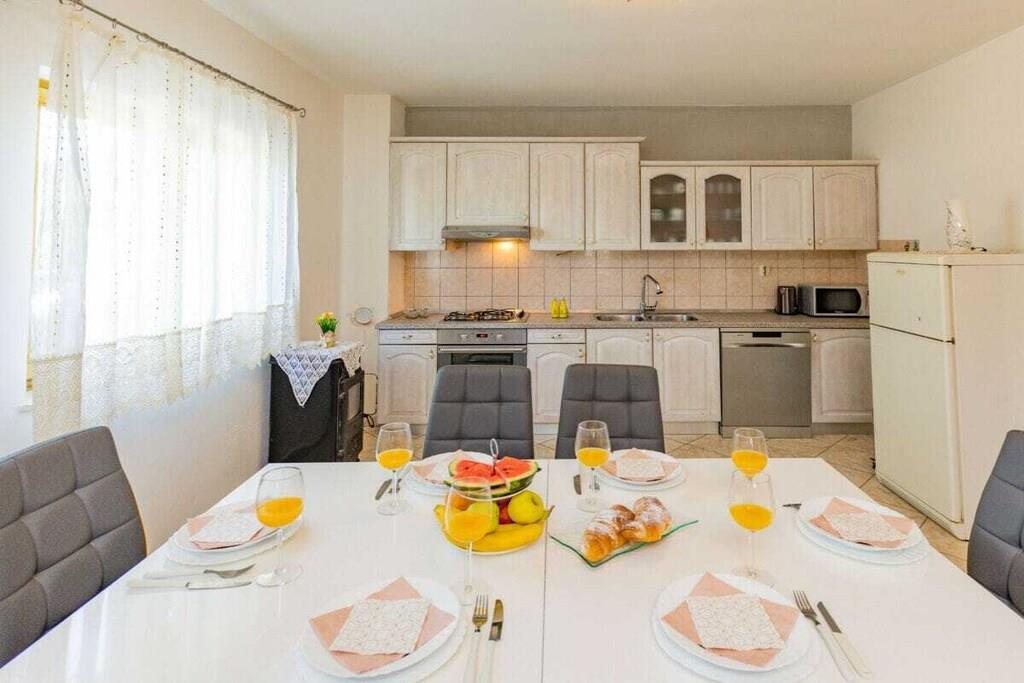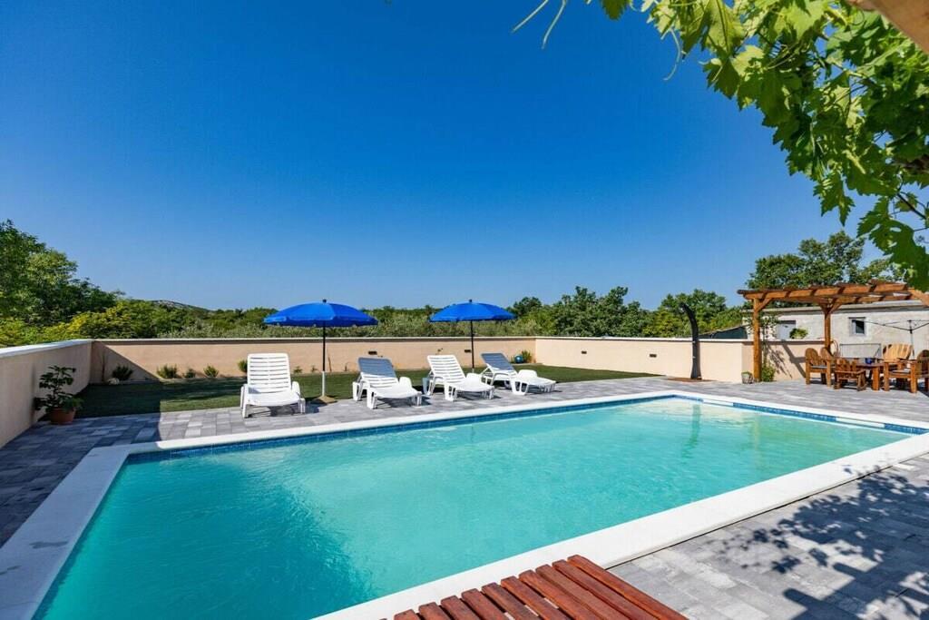 Obwohl die Hauseigentümer im selben Haus wohnen, sind die Eingänge komplett getrennt – jeweils auf einer gegenüberliegenden Seite des Hauses. Dies bietet das Beste aus beiden Welten – die Privatsphäre eines Teils eines Hauses und die Nähe der Hausbesitzer, die da sind, um alle Ihre Bedürfnisse zu erfüllen. Das Haus liegt auf einem umzäunten Grundstück und sein Außenbereich wird Sie begeistern. Ein Poolbereich mit Sonnenschirmen und Sonnenliegen, ein rustikaler Grillplatz, Kinderspielplatz und eine überdachte, von den Hausbesitzern handgefertigte Holzmöbelterrasse. Aber ein Raum wird Sie dazu bringen, nie wieder wegzugehen – eine geräumige überdachte Terrasse mit vollem Schatten, eine kleine Sommerküche und ein großer Ess- und Sitzbereich – alles zusammen bietet einen Raum, in dem Sie jeden Teil des Tages wirklich genießen können. Der Innenraum verfügt über einen offenen Wohnbereich mit Küche, Esszimmer und Wohnzimmer in einem Raum. Drei Schlafzimmer mit Doppelbetten bieten Schlafplätze für 6 Gäste und ein Schlafsofa im Wohnzimmer bietet Platz für 2 weitere Gäste. Zwei Badezimmer, eines mit Badewanne und eines mit Dusche, stehen zur Verfügung. Die Klimaanlage ist strategisch im Flur platziert und besteht aus 2 Einheiten, die für die Kühlung der gesamten Etage sorgen. Das Haus verfügt über WLAN-Abdeckung und 4 Parkplätze zur Verfügung. Haustiere sind nicht erlaubt.