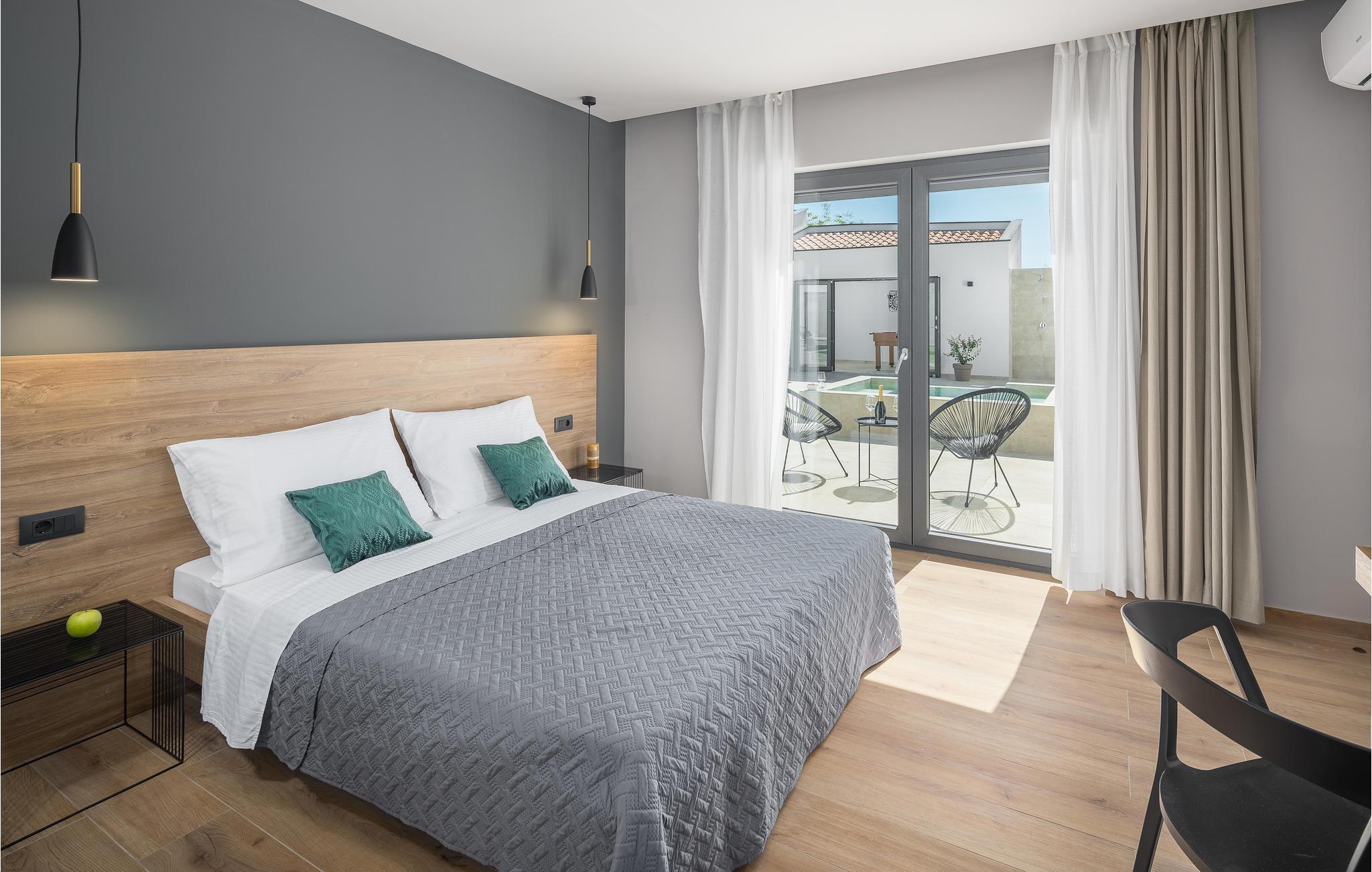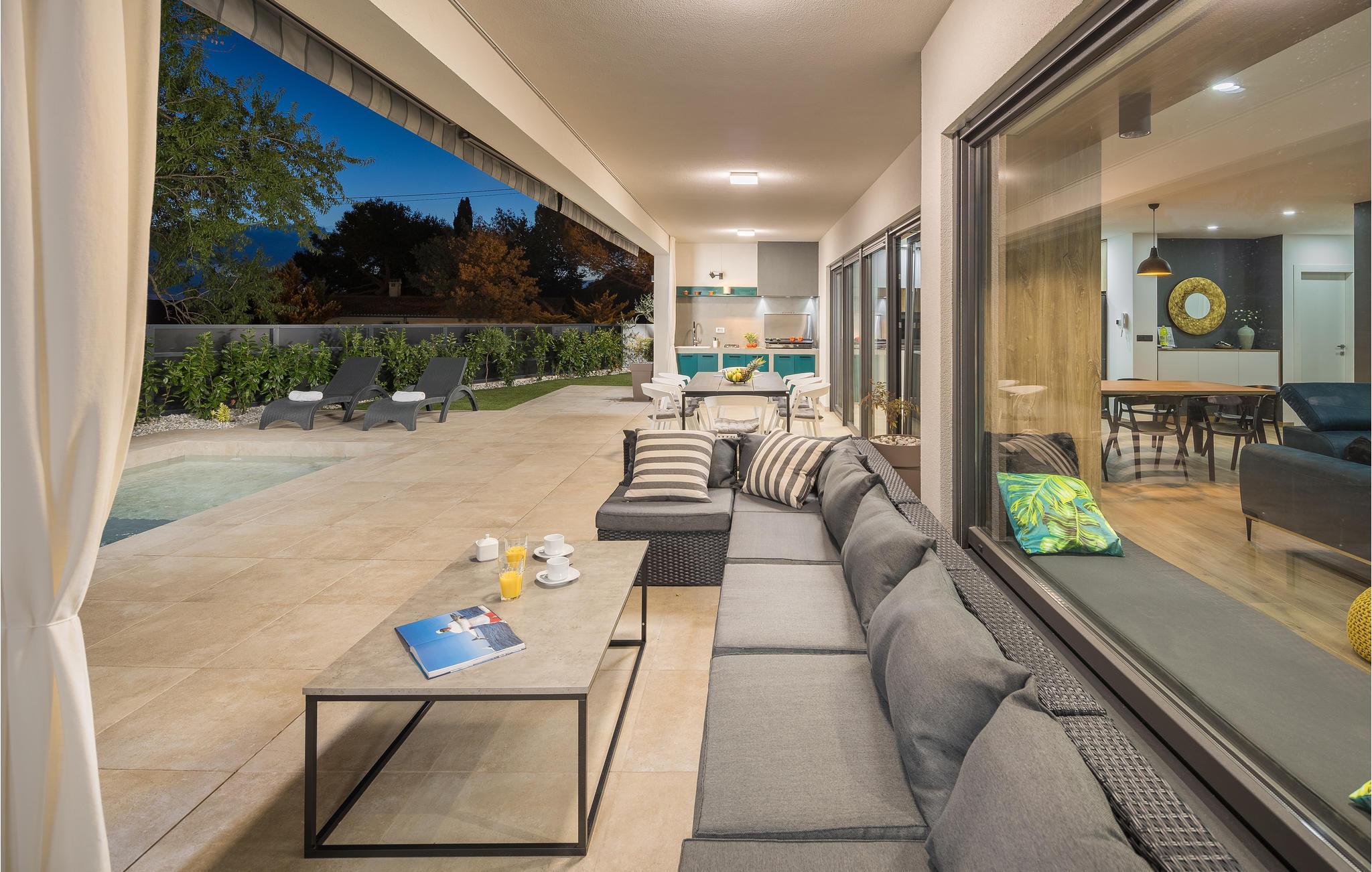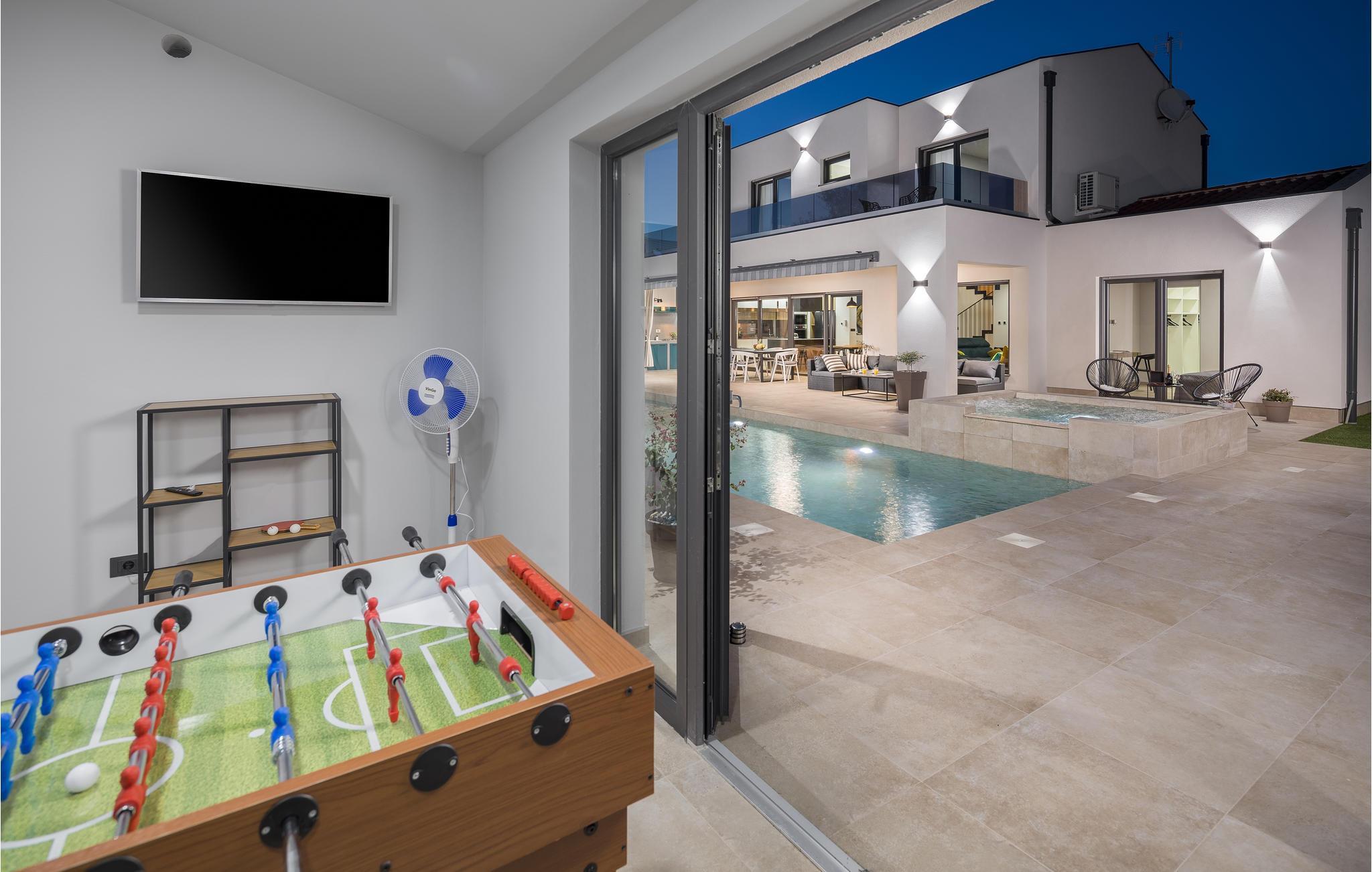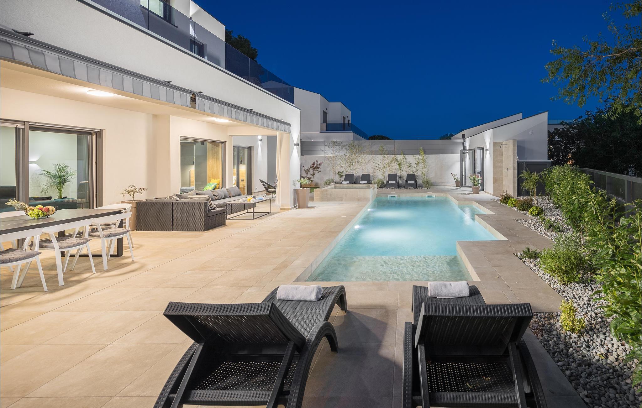 Huset ligger kun 450 m fra den børnevenlige stenstrand og er derfor et ideelt sted til en ferie med sol, strand og hav. Efter et par kilometer når I også den spændende by Pula, der byder på en lang række aktiviteter og seværdigheder.