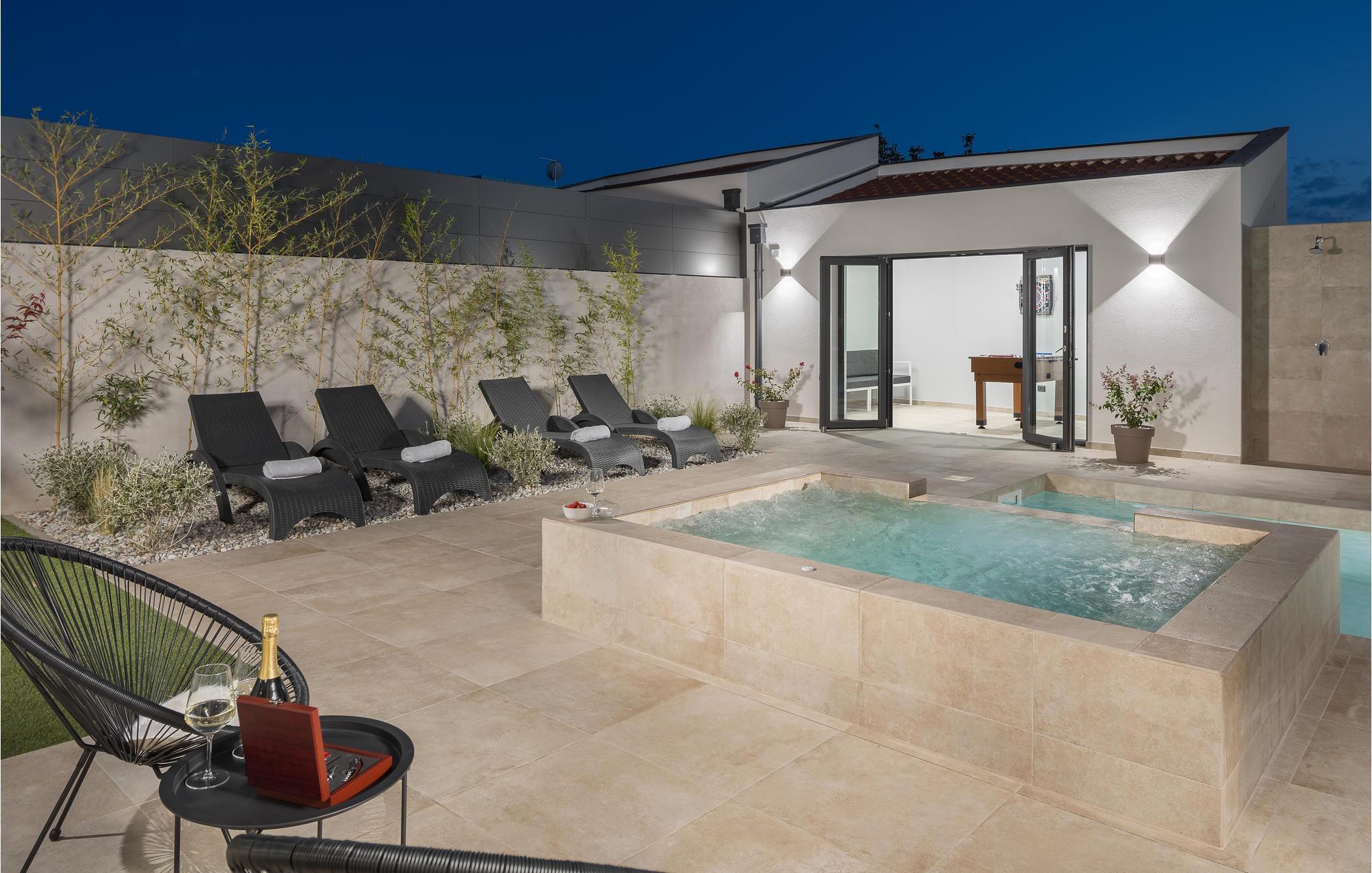 Et af husets højdepunkter er det smukke poolområde med boblebad, hvor I kan køle ned på varme dage eller slappe af i liggestolene og den balinesiske seng.