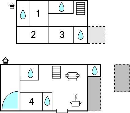 Badeværelse 5m2 (nr. 1) - WC. Varmt og koldt vand. Bruser