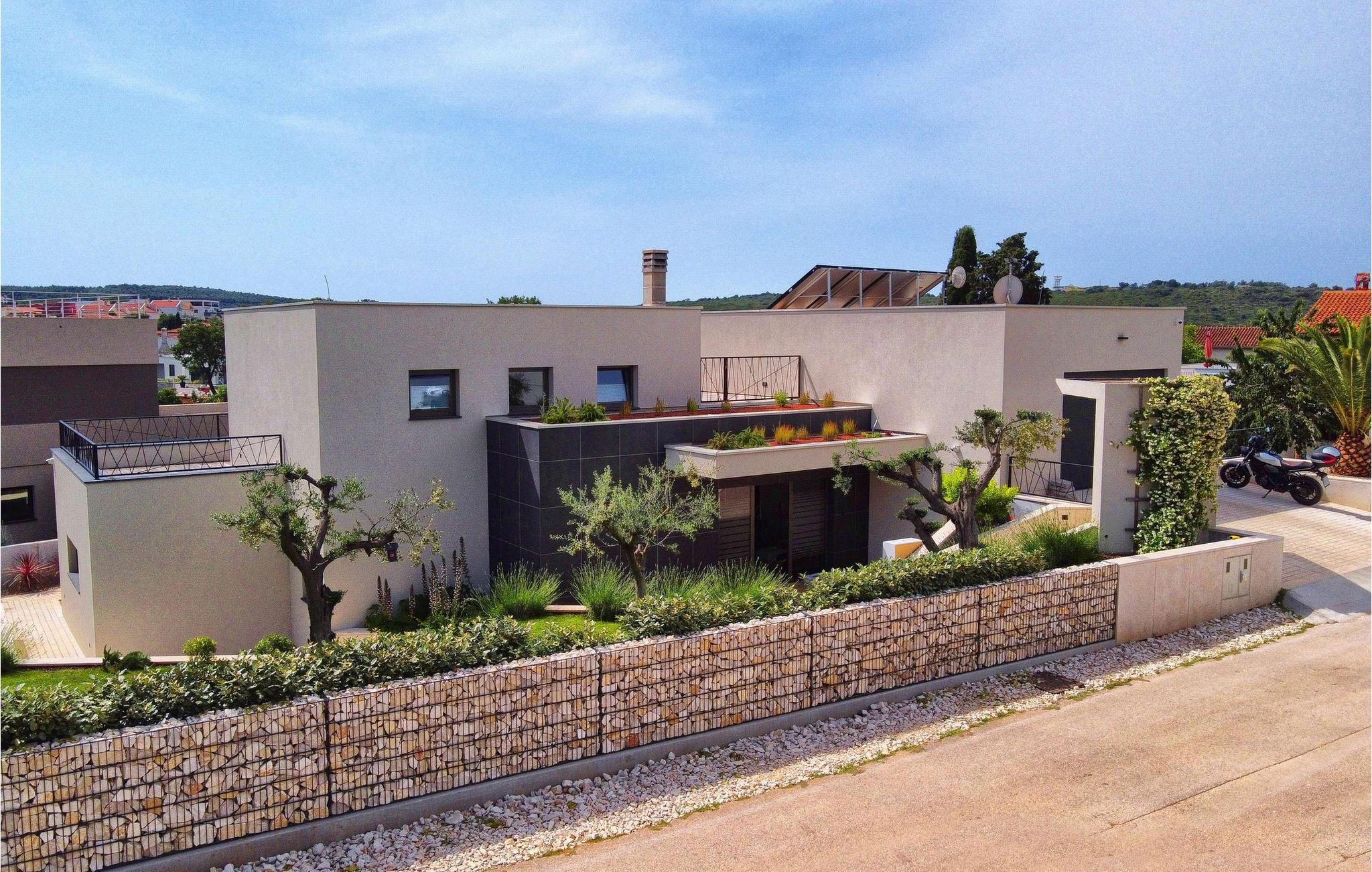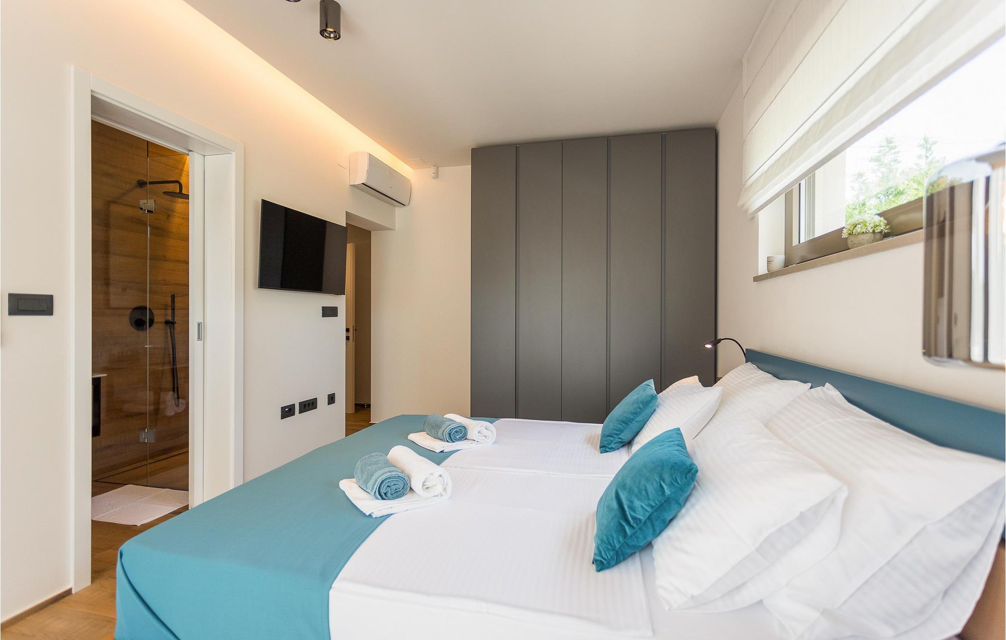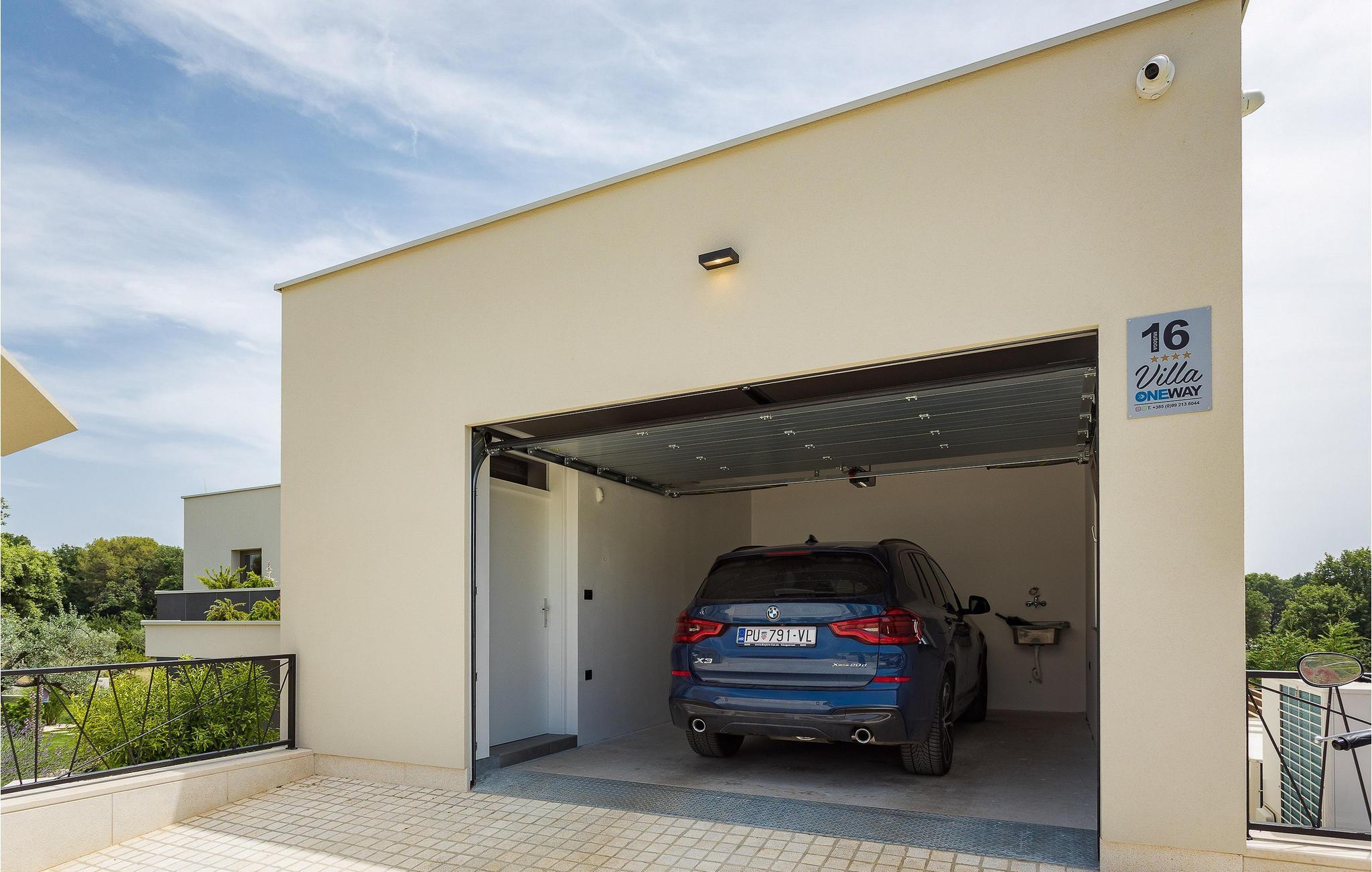 Villa One Way ligger i Istrien i Banjole, kun 6 km fra byen Pula. Banjole er en lille fiskerby på en halvø, ideel for alle elskere af sejlsport, hav eller fiskeri. Derudover er dette sted rig på adskillige bugter og naturlige strande, der vil glæde alle, der ønsker at tilbringe en fredelig og afslappende ferie. Villa One Way blev bygget i 2021 i en moderne stil og har 292 m2 boligareal. Det ligger 300 m fra det nærmeste hav og ca. 500 m fra sten- og stenstranden. Villaen har aircondition, sover op til 8 personer og har havudsigt fra et soveværelse og en terrasse ovenpå. Stueetagen af villaen er indrettet i moderne stil: stue med sofa, lænestol, bord og TV. Den romantiske pejs er placeret nær stuen i spisestuen, hvor der er spisebord til 8 personer. Køkkenet er udstyret med alt hvad du behøver for at tilberede lækre måltider til din familie eller venner. I stueetagen er der også et soveværelse med eget badeværelse med bruser. Ovenpå er der 3 yderligere soveværelser med dobbeltsenge, herunder 3 en-suite badeværelser med bruser. På den udendørs terrasse kan du komfortabelt forfriske dig i den opvarmede pool på 31 m2 og en dybde på 1,5 m. Dens yderligere funktioner er hydromassage, hydro-luftbænk og belysning, der skaber en særlig atmosfære om aftenen. Du kan solbade og slappe af på de 6 liggestole og på terrassen er der en udendørs grill på kul eller træ. One Way Villa har også en vaskemaskine, en tørretumbler og et strygejern samt to separate toiletter. Hvis børn kommer med, er en foderautomat tilgængelig. Det er muligt at nyde massage efter forudgående aftale. Der er to parkeringspladser i gården og samme antal udenfor. Villaen har elbiloplader og fast fortøjning til både op til 15 m, som ligger 3 km fra bygningen. Villaen er fuldt indhegnet og har en smukt anlagt grøn gård og en gård fyldt med forskellige typer planter og træer. Børn vil nyde masser af plads til at lege og blive underholdt. Andre underholdningsmuligheder for børn og voksne omfatter dart, bordtennis, rutsjebane, trampolin, PlayStation, gynger, badminton, digital-tv og SUP. Strandene i Banjole er småsten og stenede, og da fyrreskoven når ned til havet, kan du altid finde et skyggefuldt sted. Dette sted er ideelt for ældre og yngre generationer, alle vil altid finde noget for sig selv. I umiddelbar nærhed ligger byer som Medulin og Pula, som tilbyder en række interessante lokale aktiviteter og underholdning. Atleter og rekreative atleter har en græsfodboldbane og op til fire tennisbaner i Banjole. Forkæl dig selv med en pause fra hektisk hverdag, forkæl dig selv med en stille og behagelig drømmeferie! Velkommen til Villa One Way!