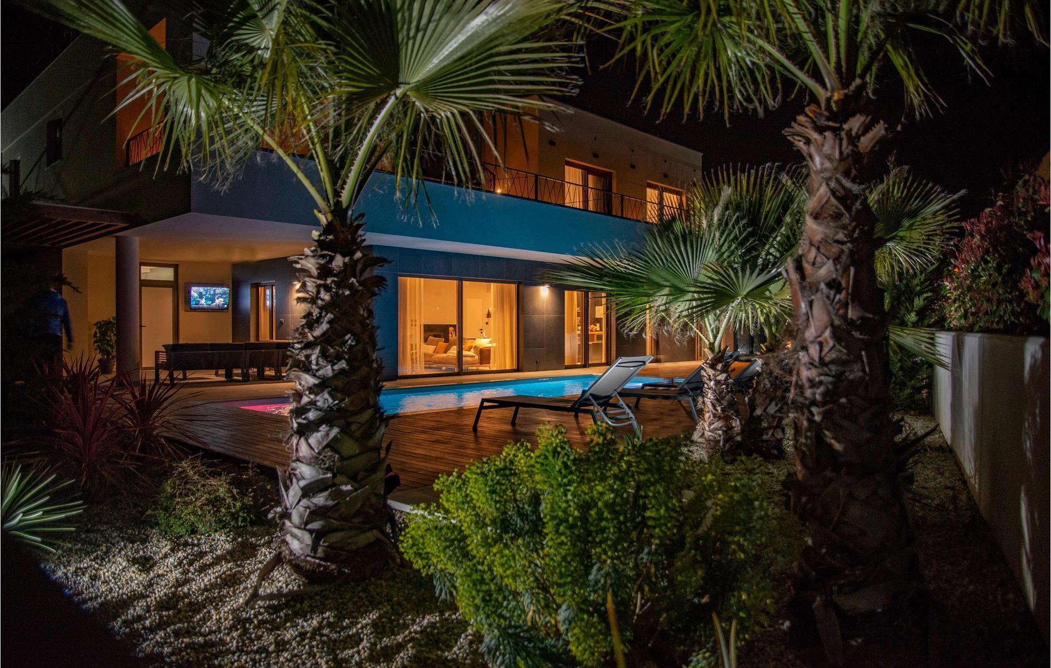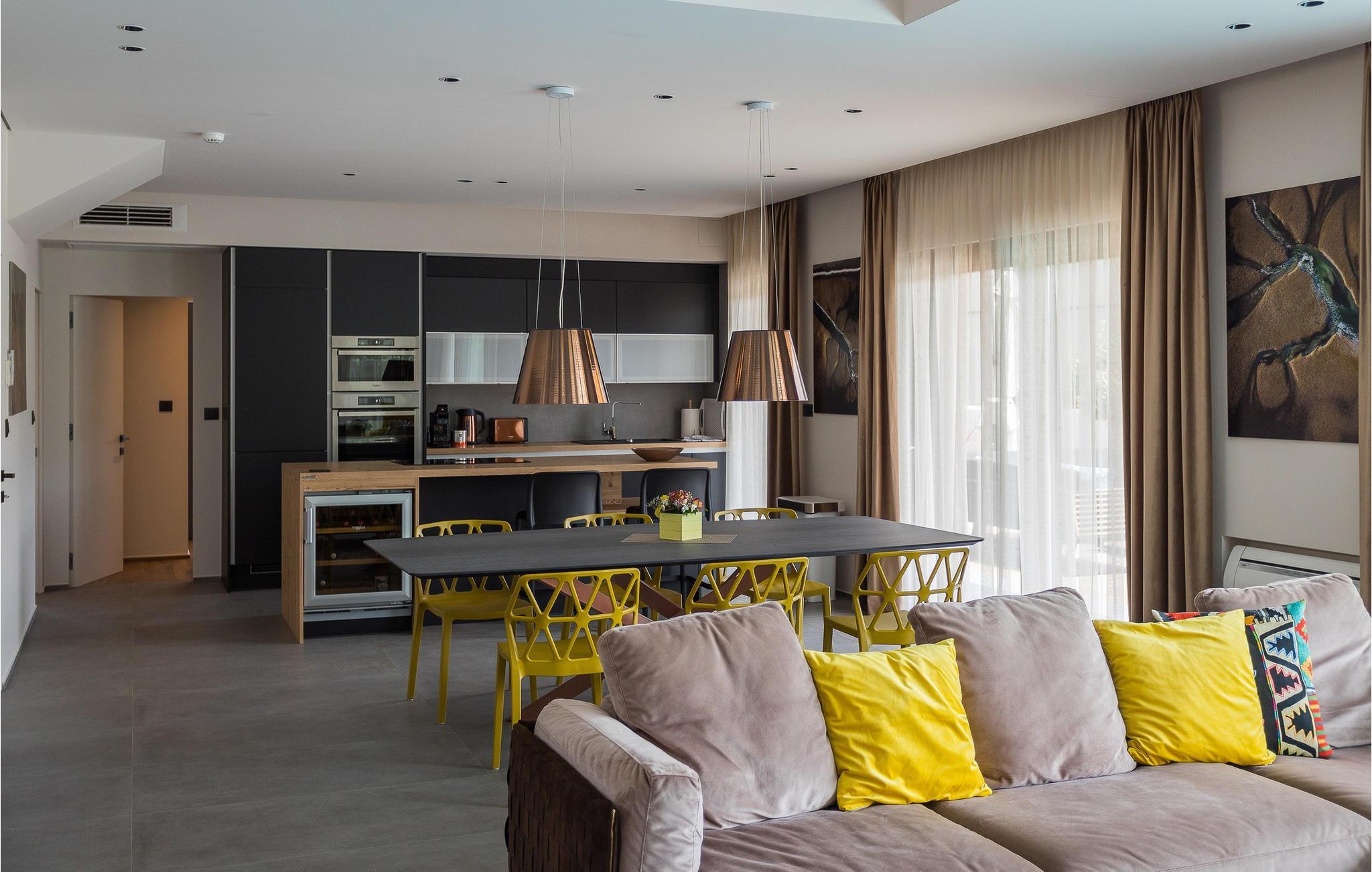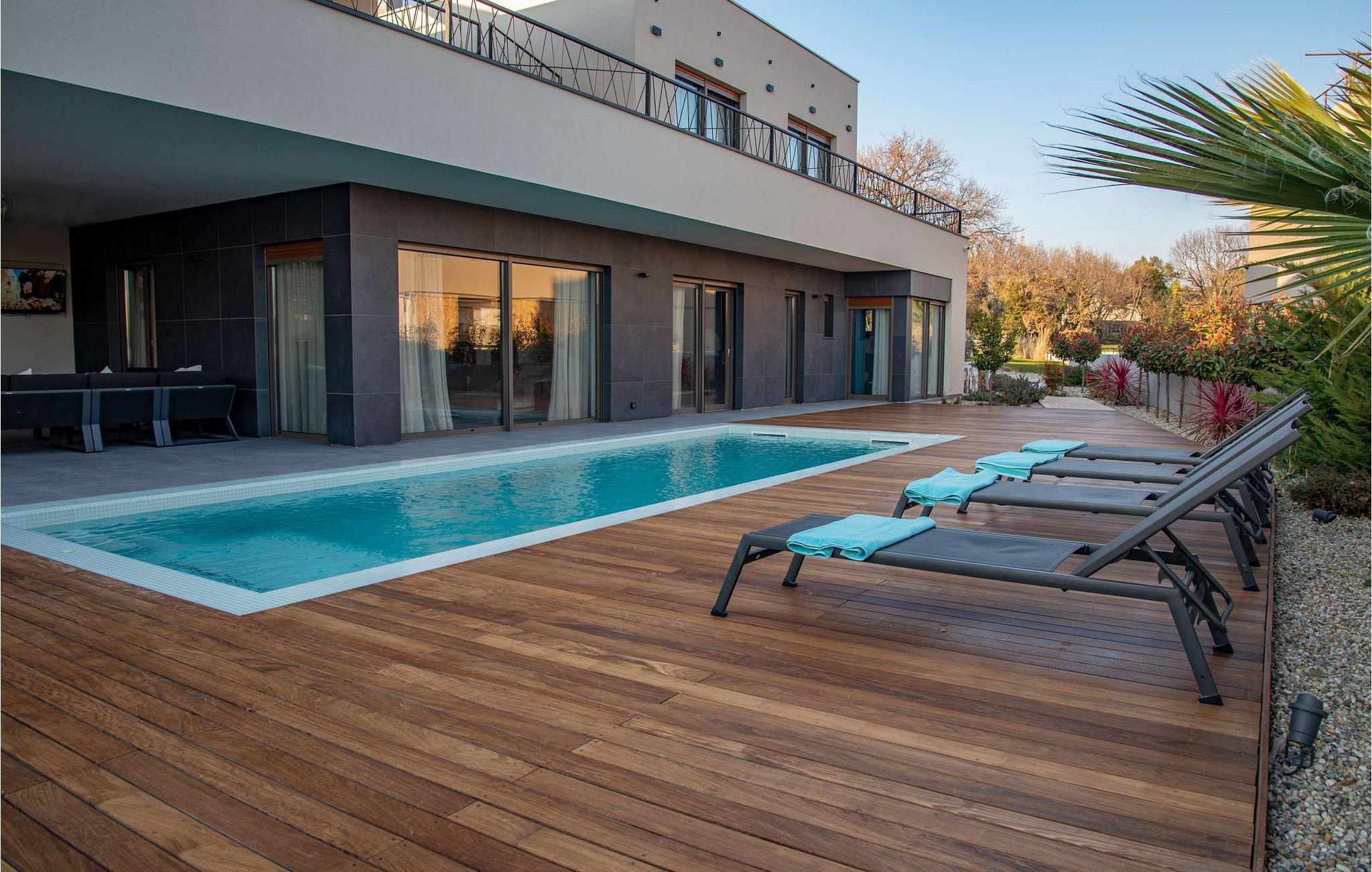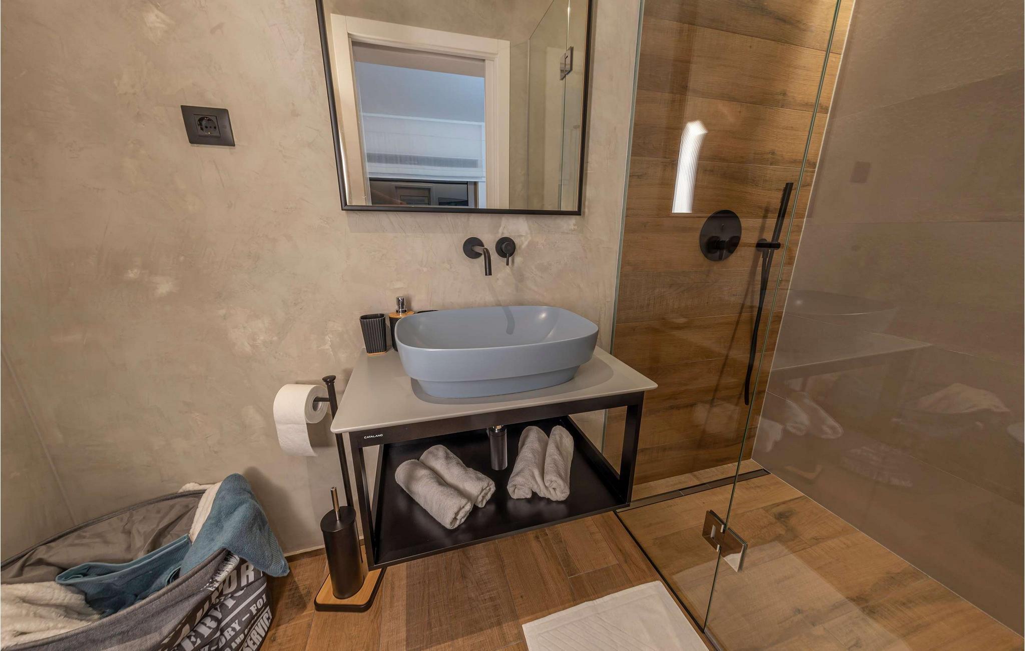 Villa One Way ligger i Istrien i Banjole, kun 6 km fra byen Pula. Banjole er en lille fiskerby på en halvø, ideel for alle elskere af sejlsport, hav eller fiskeri. Derudover er dette sted rig på adskillige bugter og naturlige strande, der vil glæde alle, der ønsker at tilbringe en fredelig og afslappende ferie. Villa One Way blev bygget i 2021 i en moderne stil og har 292 m2 boligareal. Det ligger 300 m fra det nærmeste hav og ca. 500 m fra sten- og stenstranden. Villaen har aircondition, sover op til 8 personer og har havudsigt fra et soveværelse og en terrasse ovenpå. Stueetagen af villaen er indrettet i moderne stil: stue med sofa, lænestol, bord og TV. Den romantiske pejs er placeret nær stuen i spisestuen, hvor der er spisebord til 8 personer. Køkkenet er udstyret med alt hvad du behøver for at tilberede lækre måltider til din familie eller venner. I stueetagen er der også et soveværelse med eget badeværelse med bruser. Ovenpå er der 3 yderligere soveværelser med dobbeltsenge, herunder 3 en-suite badeværelser med bruser. På den udendørs terrasse kan du komfortabelt forfriske dig i den opvarmede pool på 31 m2 og en dybde på 1,5 m. Dens yderligere funktioner er hydromassage, hydro-luftbænk og belysning, der skaber en særlig atmosfære om aftenen. Du kan solbade og slappe af på de 6 liggestole og på terrassen er der en udendørs grill på kul eller træ. One Way Villa har også en vaskemaskine, en tørretumbler og et strygejern samt to separate toiletter. Hvis børn kommer med, er en foderautomat tilgængelig. Det er muligt at nyde massage efter forudgående aftale. Der er to parkeringspladser i gården og samme antal udenfor. Villaen har elbiloplader og fast fortøjning til både op til 15 m, som ligger 3 km fra bygningen. Villaen er fuldt indhegnet og har en smukt anlagt grøn gård og en gård fyldt med forskellige typer planter og træer. Børn vil nyde masser af plads til at lege og blive underholdt. Andre underholdningsmuligheder for børn og voksne omfatter dart, bordtennis, rutsjebane, trampolin, PlayStation, gynger, badminton, digital-tv og SUP. Strandene i Banjole er småsten og stenede, og da fyrreskoven når ned til havet, kan du altid finde et skyggefuldt sted. Dette sted er ideelt for ældre og yngre generationer, alle vil altid finde noget for sig selv. I umiddelbar nærhed ligger byer som Medulin og Pula, som tilbyder en række interessante lokale aktiviteter og underholdning. Atleter og rekreative atleter har en græsfodboldbane og op til fire tennisbaner i Banjole. Forkæl dig selv med en pause fra hektisk hverdag, forkæl dig selv med en stille og behagelig drømmeferie! Velkommen til Villa One Way!