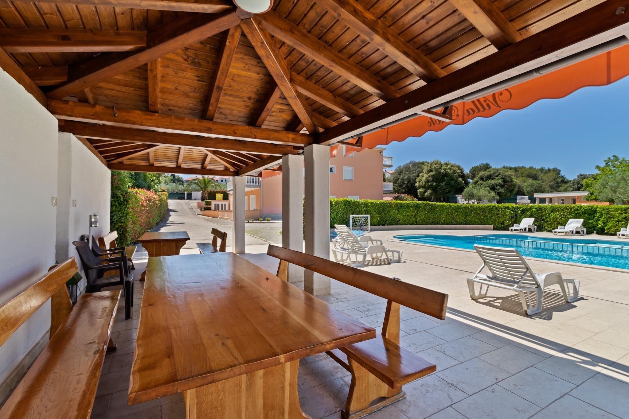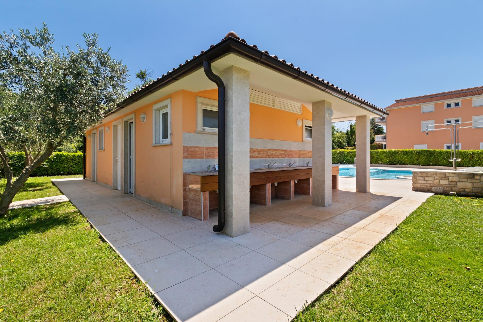 Beliggende i den rolige by Banjole inviterer dette kæledyrsvenlige mobilehome til seks gæster til at slappe af, kun 1 km fra stranden og 2 km fra Pulas travle centrum. Med gratis WiFi, en fælles swimmingpool og en række fritidsfaciliteter er det et fremragende valg for familier eller grupper, der søger både afslapning og eventyr. Indenfor finder du en hyggelig stue/soveværelse med en dobbelt sovesofa, tv og aircondition, samt et praktisk tekøkken udstyret med elkedel, kogende vandhane, kaffemaskine, mikrobølgeovn, opvaskemaskine og køleskab. Indkvarteringen omfatter et soveværelse med køjesenge eller to enkeltsenge og et soveværelse med en kingsize-seng og et privat badeværelse. Et andet badeværelse giver ekstra komfort. Gå udenfor til en møbleret terrasse med liggestole, en grill og adgang til familievenlige faciliteter som en trampolin, tennisbane og legeplads. Oplev romerske skatte som Augustus-templet og Sergii-buen i nærheden, eller tag en dagstur til de naturskønne Brijuni-øer. Til måltider kan du nyde pizza på Nina Pizzeria eller frisk fisk og skaldyr på Konoba Sidro. Denne kystparadis blander historie, natur og fritid for en uforglemmelig ferie.