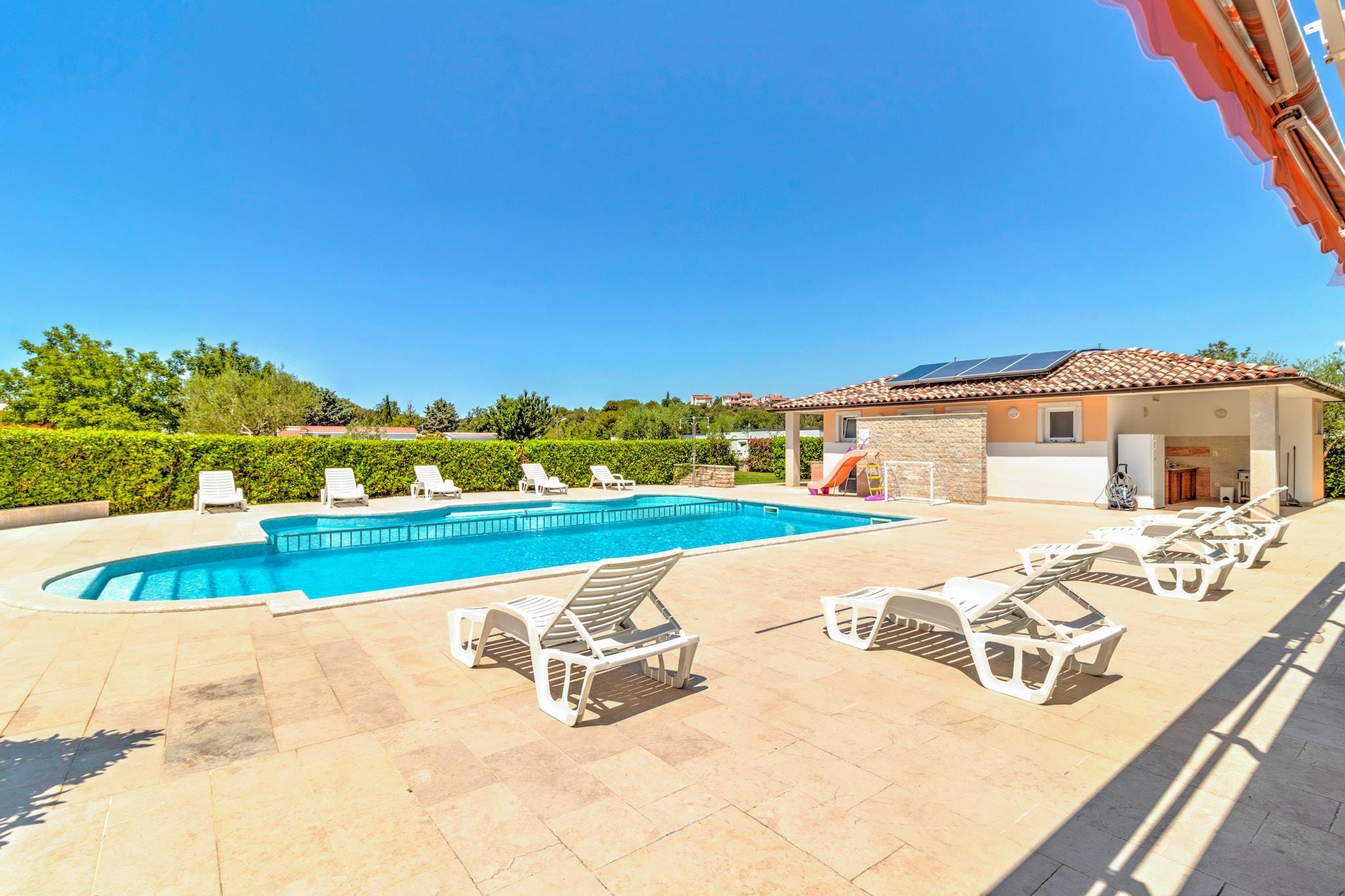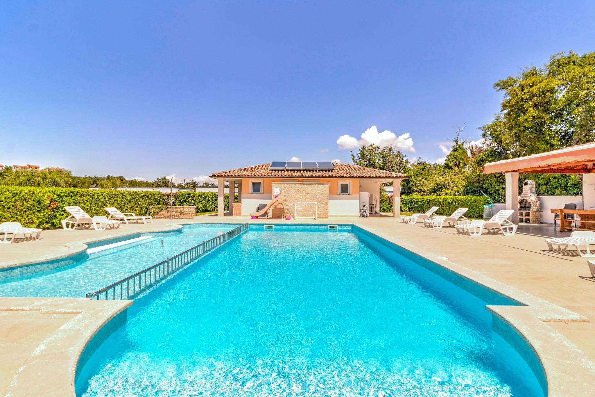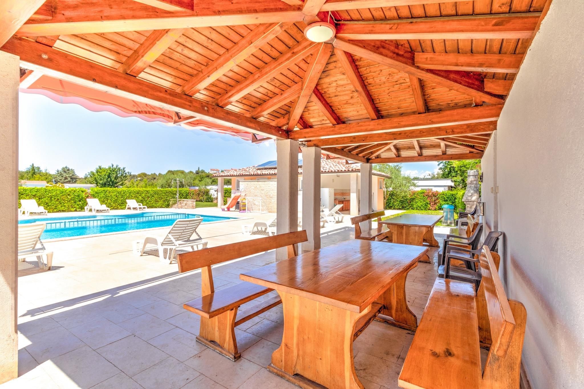 Flygt til Banjoles fredfyldte kyster, hvor dette kæledyrsvenlige mobilhome til seks gæster tilbyder en perfekt blanding af afslapning og eventyr. Kun 1 km fra stranden og 2 km fra Pula er dette tilflugtssted ideelt for dem, der søger komfort, natur og kulturel udforskning. Uanset om du slapper af på den solbeskinnede terrasse, nyder udendørsaktiviteter eller udforsker historiske vartegn, lover denne kystparadis et uforglemmeligt ophold. Indenfor har huset en rummelig stue og soveværelse med en dobbelt sovesofa, tv og aircondition, et veludstyret køkken med elkedel, kogende vandhane, kaffemaskine, mikrobølgeovn, opvaskemaskine og køleskab samt et soveværelse med køjesenge eller to enkeltsenge. Soveværelset har en kingsize-seng og et eget badeværelse med badekar eller bruser og toilet, suppleret af et ekstra badeværelse for nemheds skyld. Udendørs kan gæsterne slappe af på terrassen med havemøbler, liggestole og grill, eller nyde trampolinen, tennisbanen, fodboldmålet og legeredskaberne. I nærheden ligger Augustus-templet med udsøgt romersk arkitektur, mens Brijuni-øerne byder på betagende natur og historiske skatte. Gå en tur gennem Sergii-buen, en storslået triumfbue fra oldtiden. For at spise kan du forkæle dig selv på Konoba Batelina, kendt for frisk fisk og skaldyr, eller nyde lokale delikatesser på Barka Bistro.