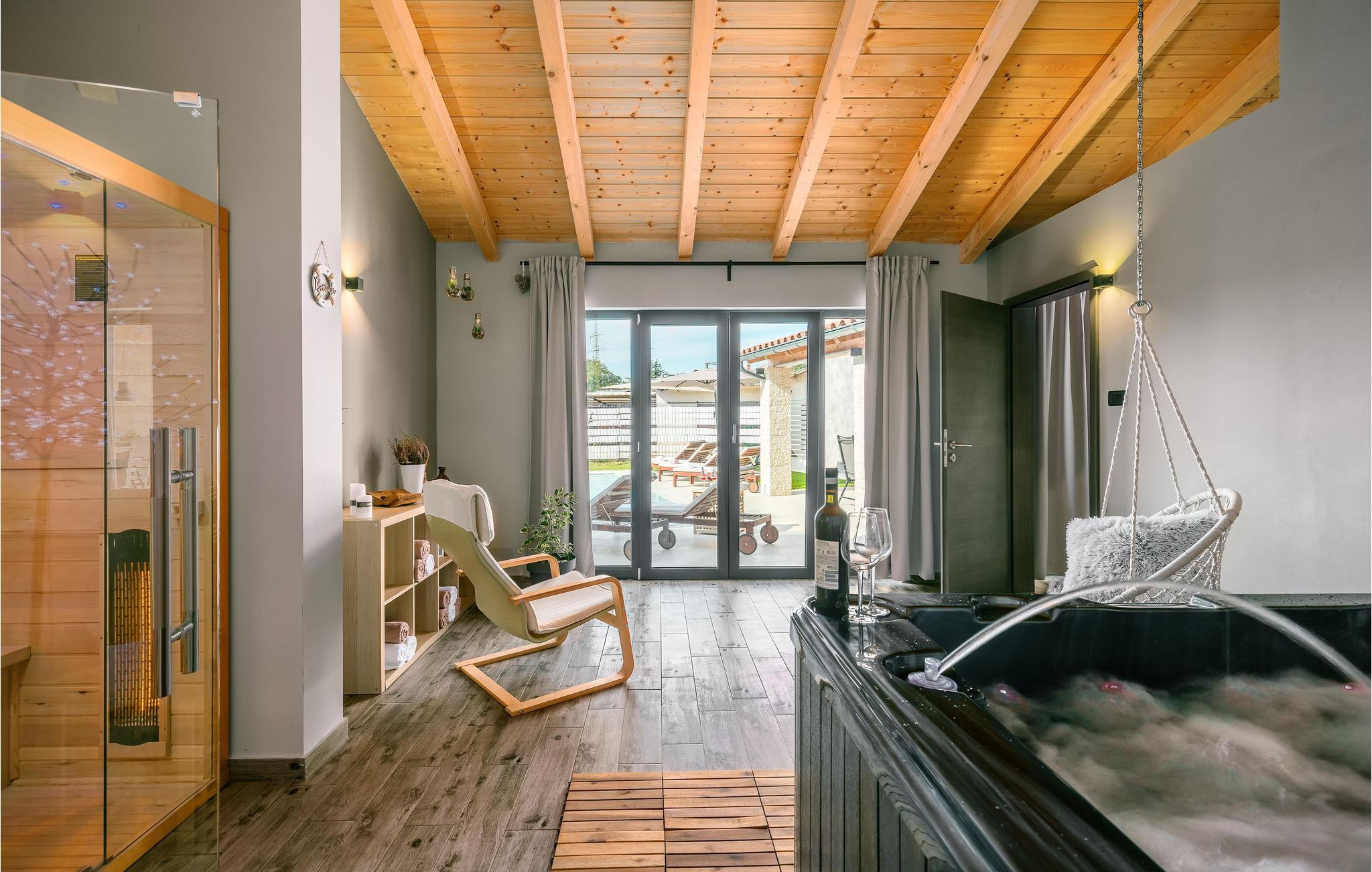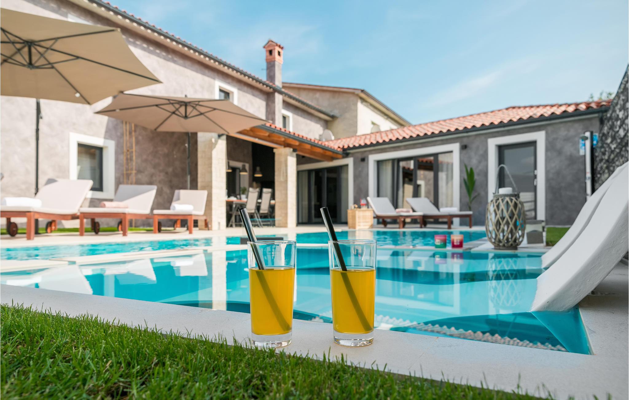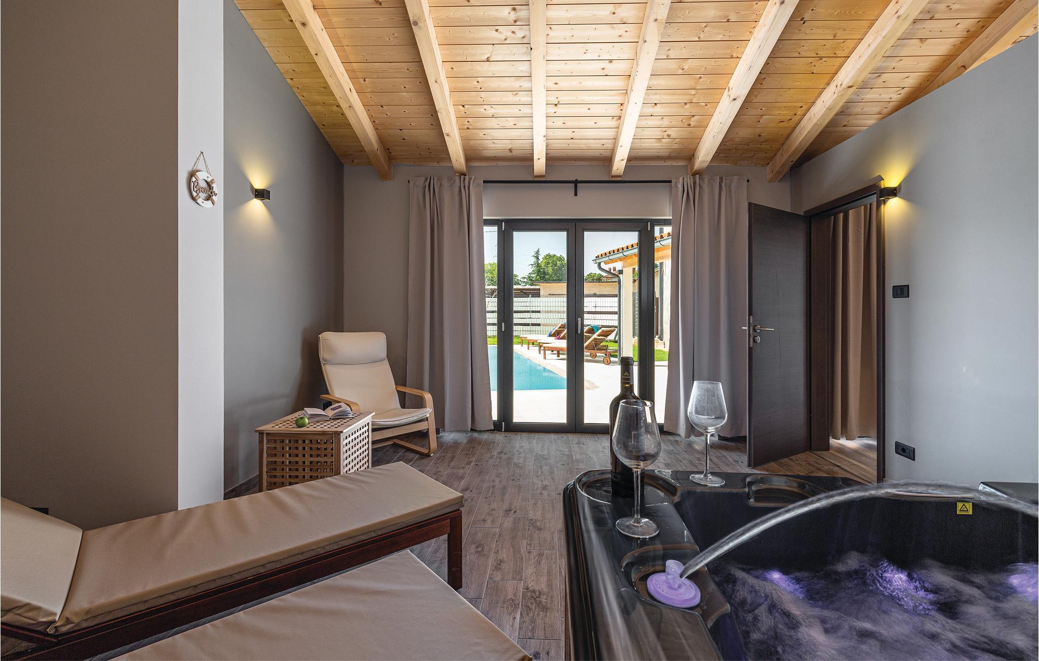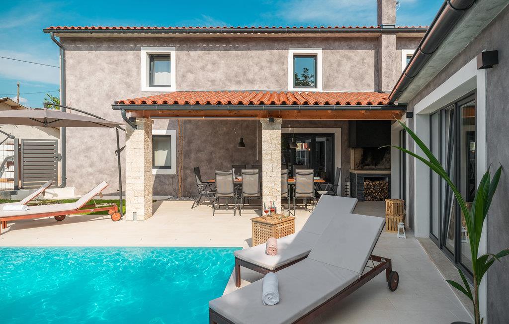 Dette skønne og moderne feriehus ligger i udkanten af landsbyen Frkeci, i det Istriske bagland. Huset er indrettet omhyggeligt med hensyntagen til jeres komfortable ferie. Husets rum er lyse og dejligt møbleret. Huset er fordelt på stueplan og første sal der er forbundet med indre trapper. Der er badeværelse til hvert soveværelse. Afslapningsrum med whirlpool, til dejlig selvforkælelse. I den lille fine gård er der en pool med afdeling til børnene. På den overdækkede terrasse med grill og havemøbler er det dejligt at slappe af.