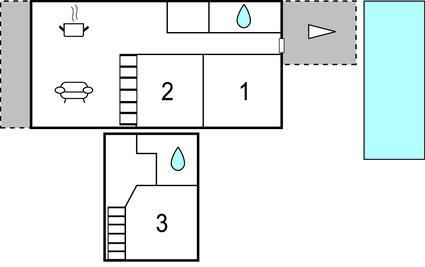 I gården ligger poolen, hvor I kan få en frisk dukkert på varme dage, og så er der desuden et lille legeområde til jeres børn. I finder også et sommerkøkken med grill, hvilket giver jer mulighed for at gøre noget ekstra ud af middagen på de lune aftener. Boligen er i to etager, og loftshøjden er visse steder lidt lav.