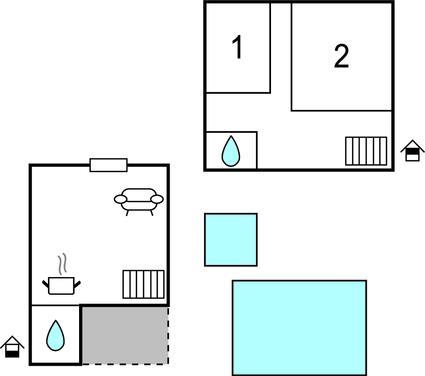 Opholdsstue/køkken - 1 Soveplads. (Sofa, madras eller lignende).