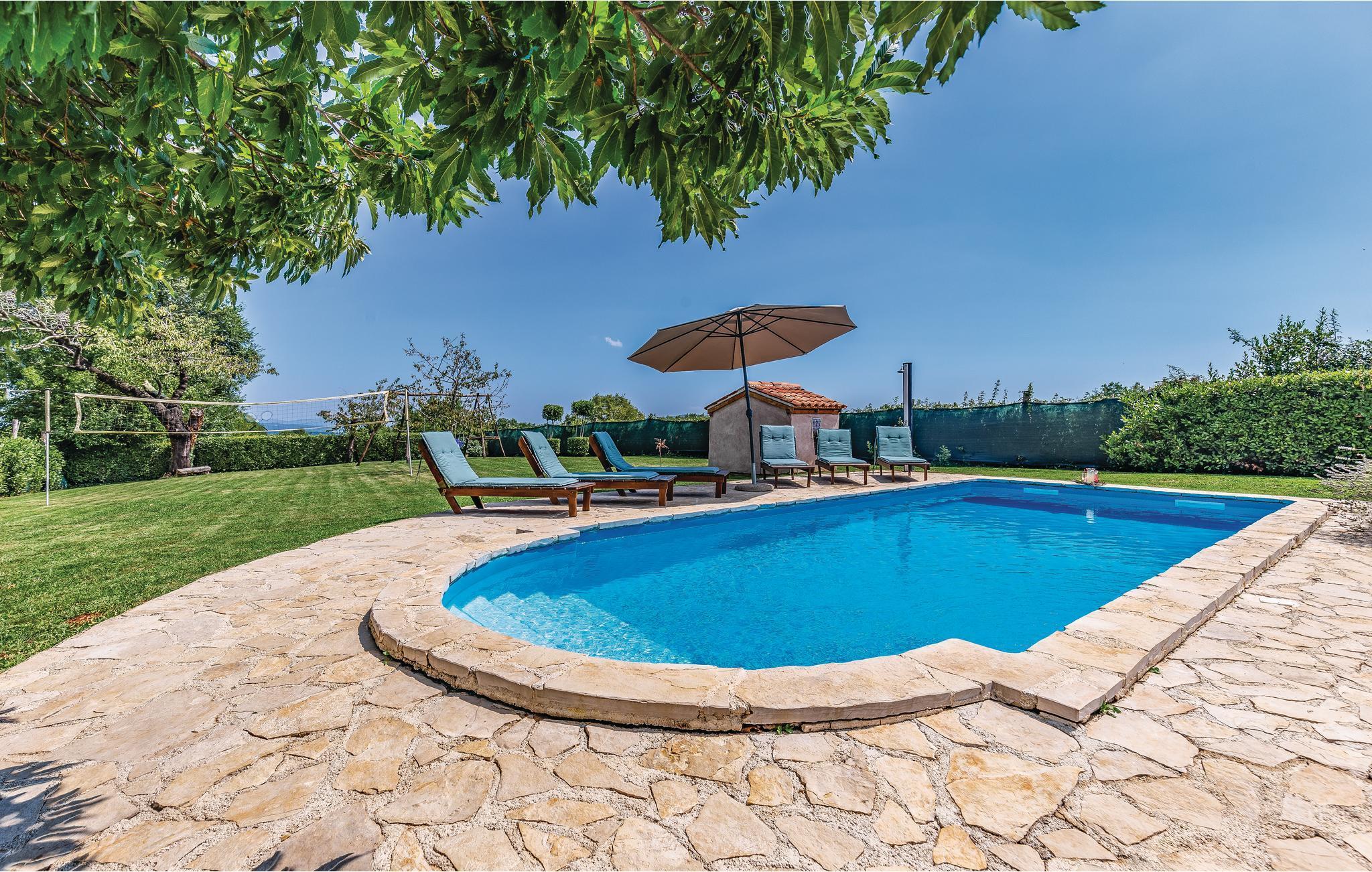 Dette typisk istriske feriehus, ligger nær den maleriske middelalderby Barban. Det er indrettet rustikt med møbler af god kvalitet, har smukke stenvægge og flotte trælofter med frilagte bjælker. Huset rummer fire soveværelser, hvert bekvemt med eget badeværelse og klimaanlæg. I stueplan er der et stort værelse med kamin, et fuldt udstyret køkken med alle hjælpemidler, hvor det er nemt at tilberede lækker feriemad, og med spisehjørne og på terrassen står grillen hvis I ikke har lyst til at lave mad indendørs. Tag en forfriskende svømmetur i poolen i den smukke have og nyd de fredelige landlige omgivelser. Her er både en overdækket terrasse med bord og bænke, samt en altan der ligeledes er møbleret, hvor I kan nyde udsigten over landskaberne. Her er trådløst netværk så I kan følge med og holde kontakt med dem derhjemme. Grunden er helt indhegnet, så her kan I trygt lade børnene lege mens I slapper af. Nær huset er det muligt at købe ind i en lille butik. Et unikt hus til en unik dejlig ferie.