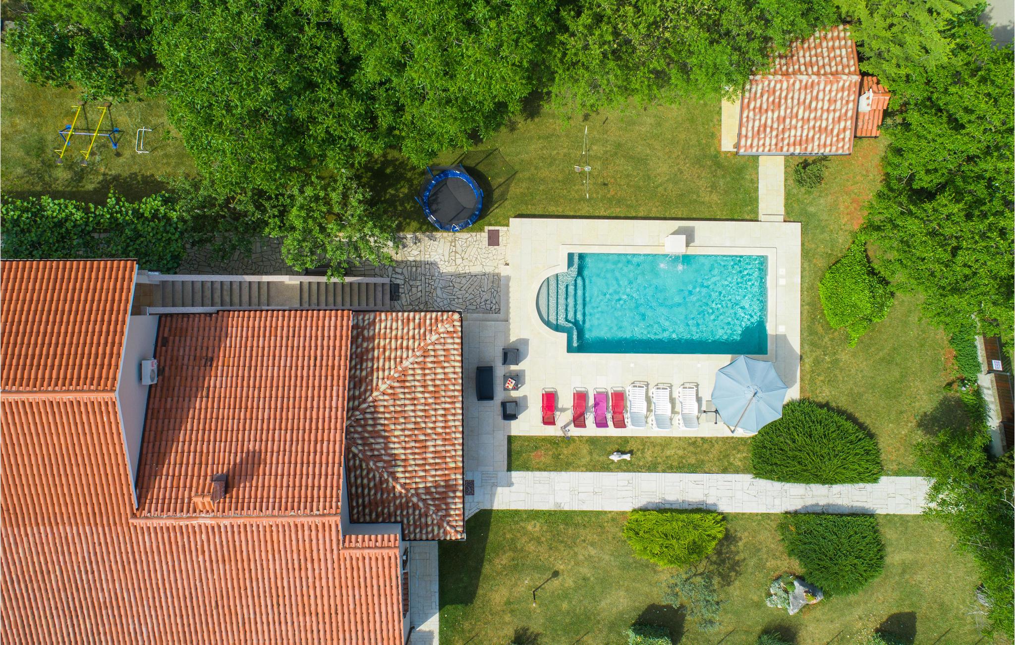 I den lille by Orihi ligger dette dejlige feriehus med to lejligheder, forbundet med udendørs trapper. Lejligheden i stueplan er den største, med stor spisestue til hyggeligt samvær, mens den mindste lejlighed ligger på første sal. Huset er udstyret med alt, omgivet af en skøn have, hvor børnene kan lege og spille bold, samt med grill, hvor I kan lave let og lækker feriemad. Når det er rigtigt varmt, så hop i husets egen pool, der indbyder til vandsjov for alle aldre. De nærmeste strande er i bugten Blaz, i Krnica, Rakalj og Duga Uvala. Efter aftale kan I smage vine og snaps hos husets ejer, ligesom I kan købe frugt og grønt helt friskt plukket og opgravet.