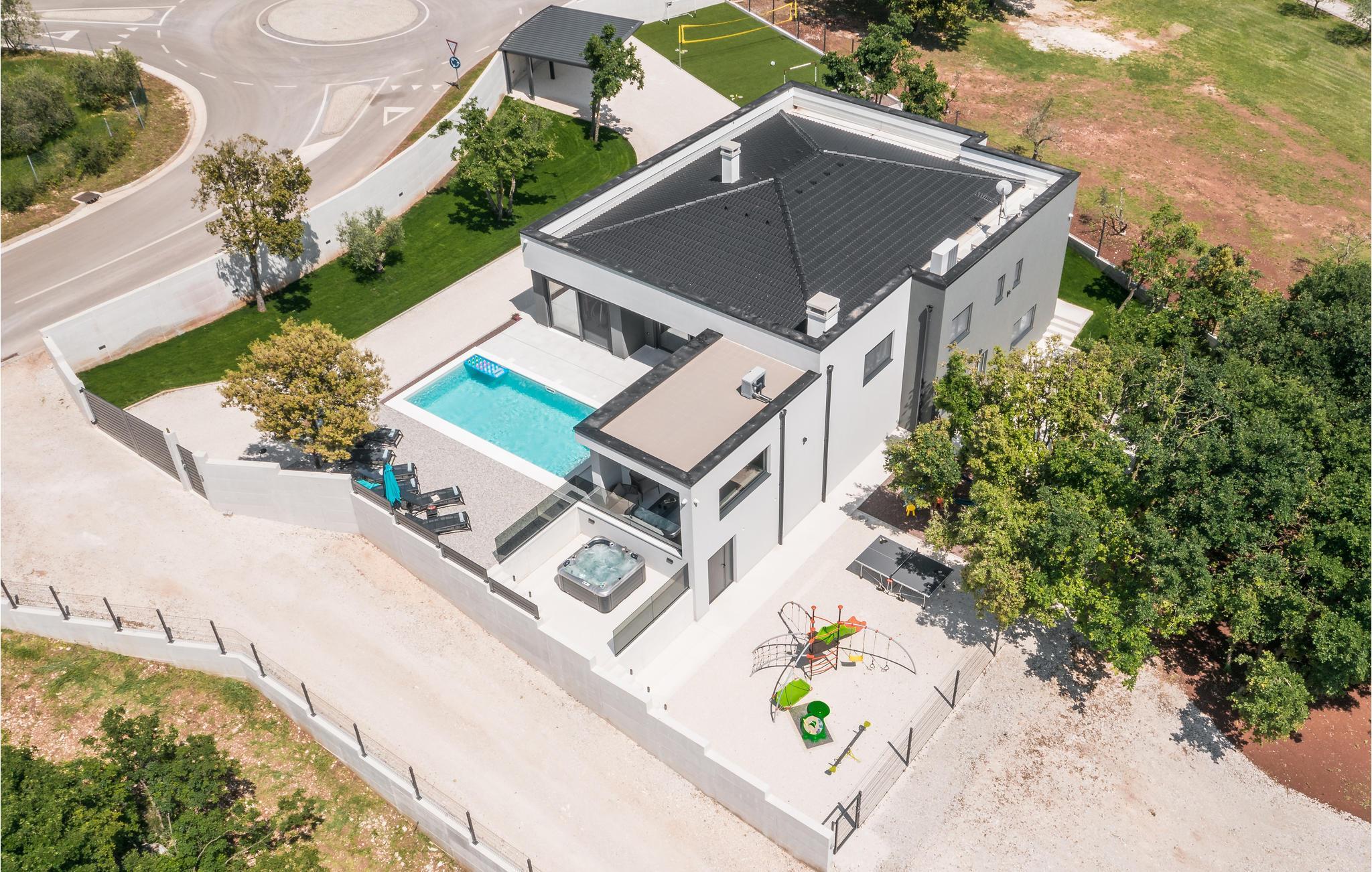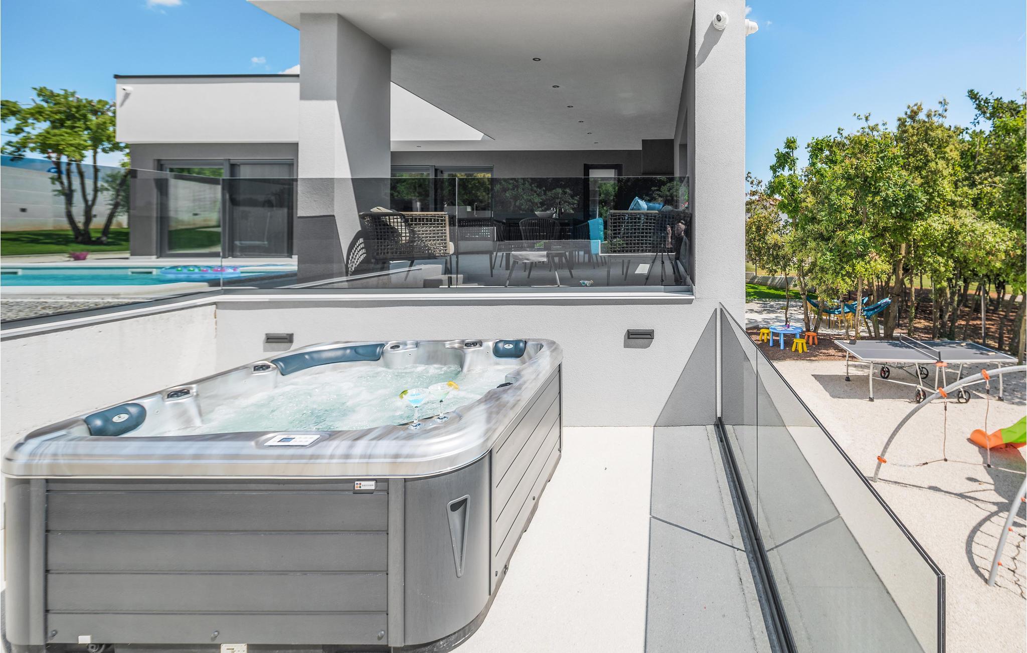 Der er også en opvarmet pool med hydromassagestråler, et udendørs spabad, en legeplads og overdækket parkering. Du kan tilbringe dejlige timer udendørs på den store overdækkede terrasse med sommerkøkken.