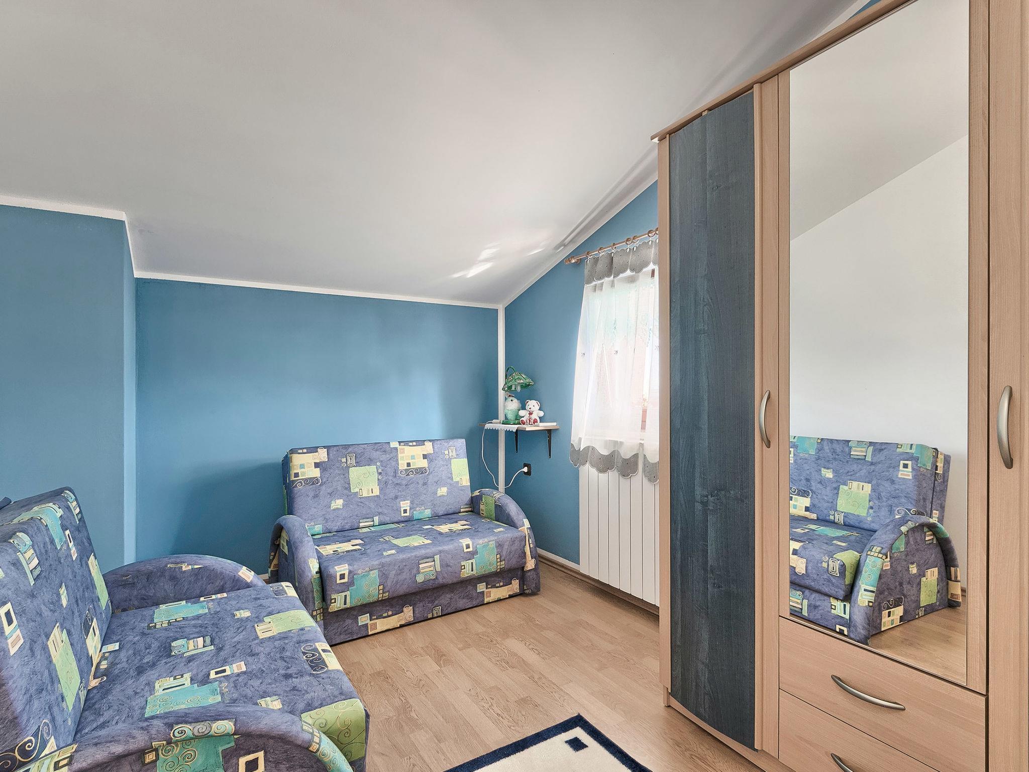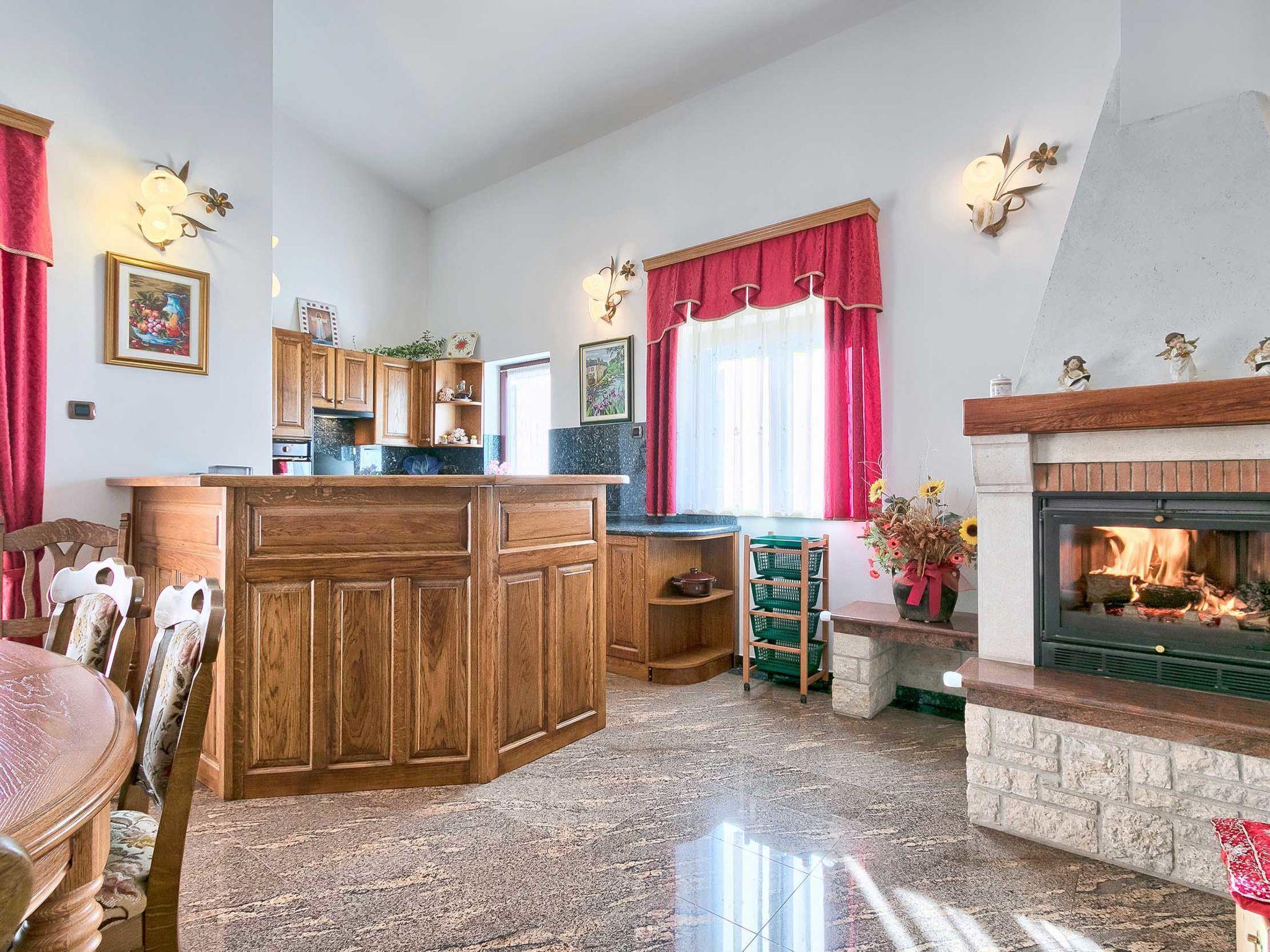 Beautiful single-family house "Mirjana", 2 storeys. In the hamlet Frkeci 2 km from the centre of Barban, 20 km from the centre of Rabac, in a quiet, sunny position, 10 km from the sea. Private: property 1'500 m2 (fenced), beautiful garden with lawn and wildlife garden, swimming pool angular (10 x 4 m, depth 150 cm, seasonal availability: 27.Apr. - 28.Sep.) with internal staircase. Outdoor shower, pool house with fridge and cooking stove, terrace (30 m2), garden furniture, barbecue, children's playground (slide, swing). In the house: internet access, sauna, trampoline, washing machine. Parking (for 3 cars) at the house on the premises. Shop 2 km, supermarket 12 km, restaurant 2 km, bus stop 2.2 km, pebble beach 12 km, rocky beach 10 km. Riding stable 9 km, walking paths from the house 500 m, cycle lane 550 m. Nearby attractions: adrenalin park 8 km. Groups of teenagers on request only.