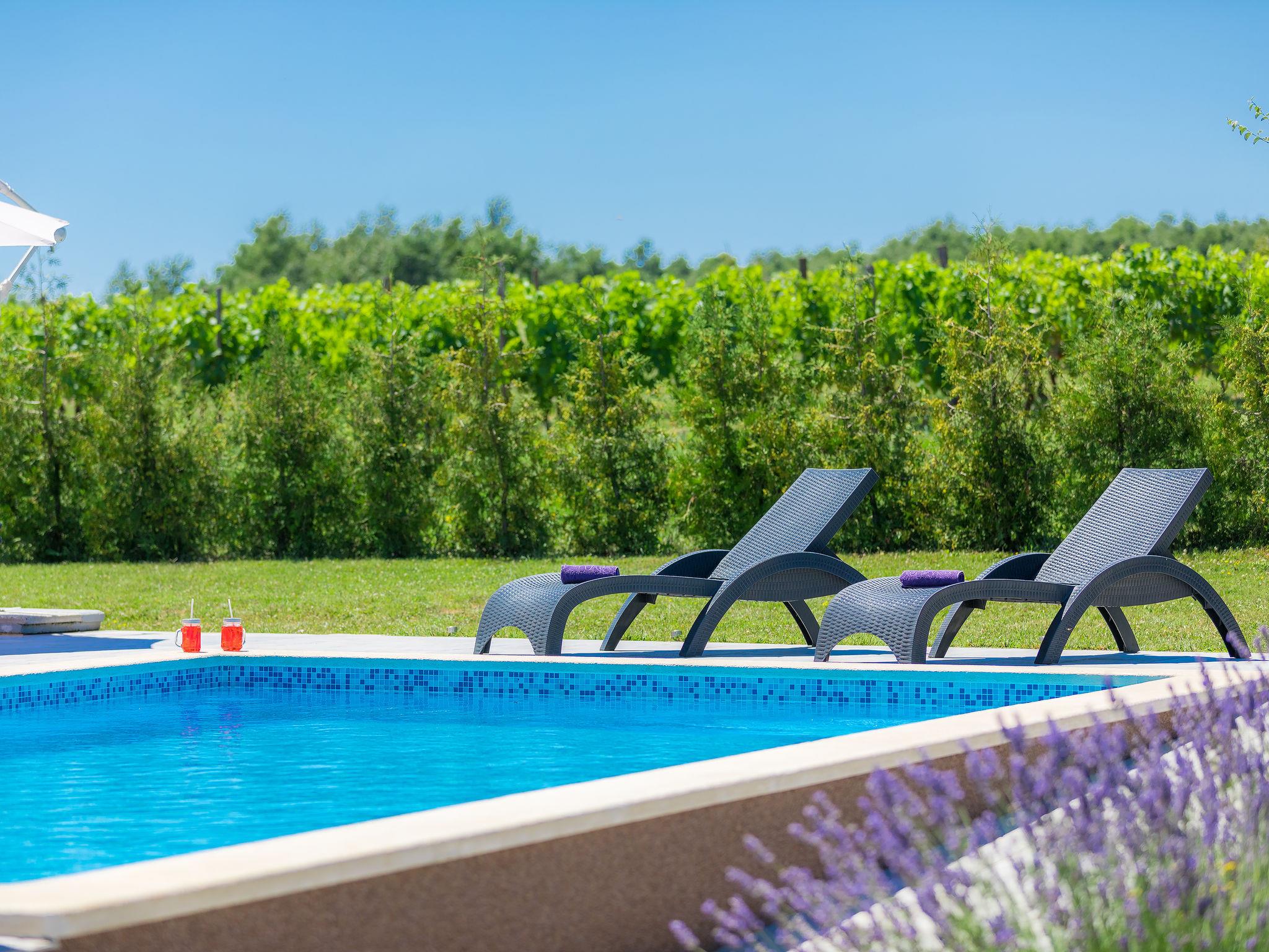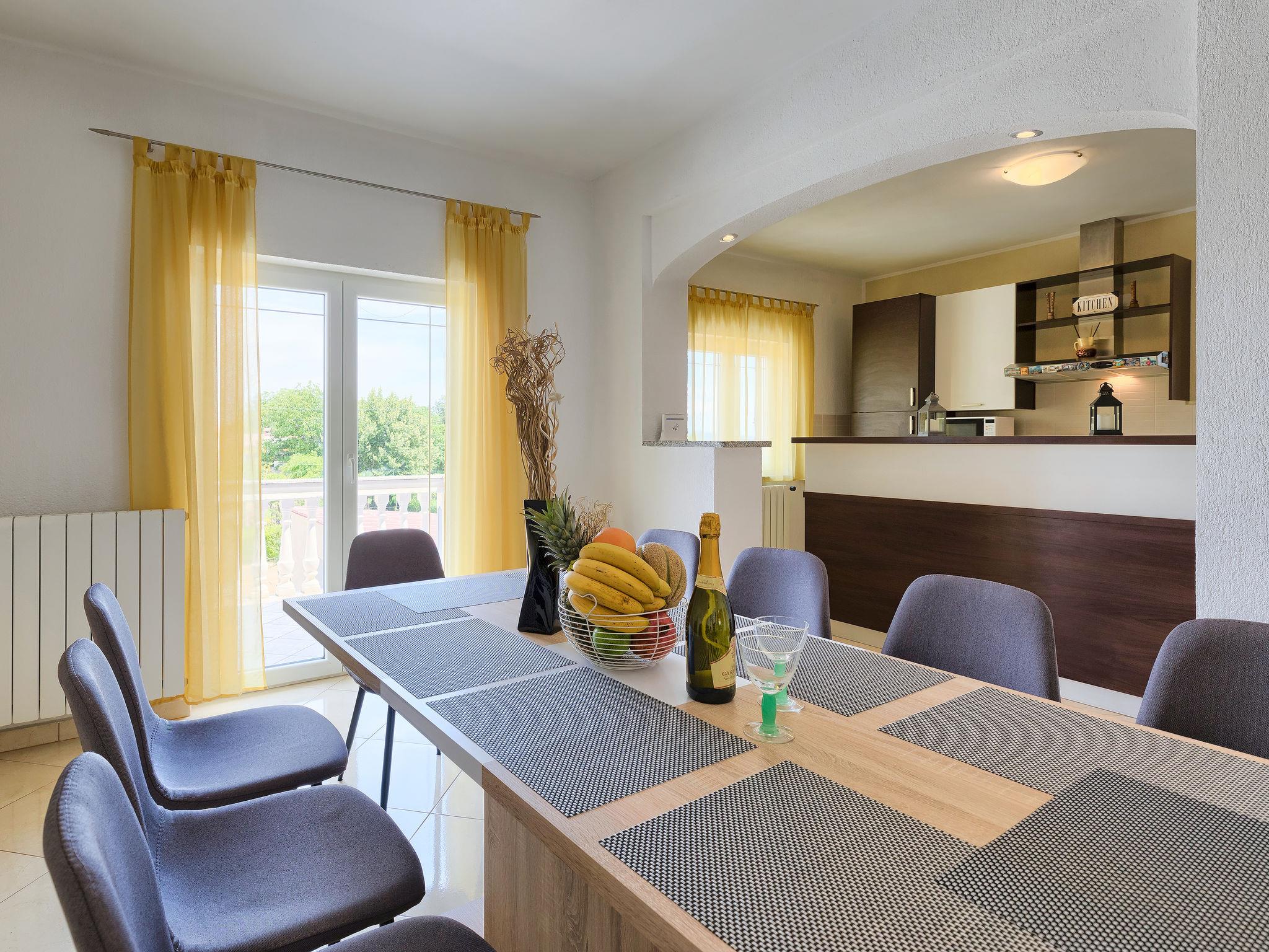 Single-family house "Melian", 2 storeys. In the hamlet Juricev Kal 5 km from the centre of Barban, in a sunny position, 14 km from the sea, in the countryside. Private: property 2'500 m2, beautiful garden with lawn and wildlife garden, swimming pool angular (8 x 4 m, depth 140 cm, seasonal availability: 15.May. - 01.Oct.) with internal staircase. Outdoor shower, volleyball, badminton, barbecue house, children's playground (swing). In the house: internet access, billiard table, table football, storage room for bicycles, washing machine. Roofed, parking (for 2 cars) at the house on the premises. Shop 5 km, supermarket 14 km, restaurant 5 km, café 5 km, bus stop 5.2 km, pebble beach 14 km. Tennis 25 km, riding stable 13 km, walking paths from the house 100 m, cycle lane 150 m. The house consists of 2 apartments rented as one unit.